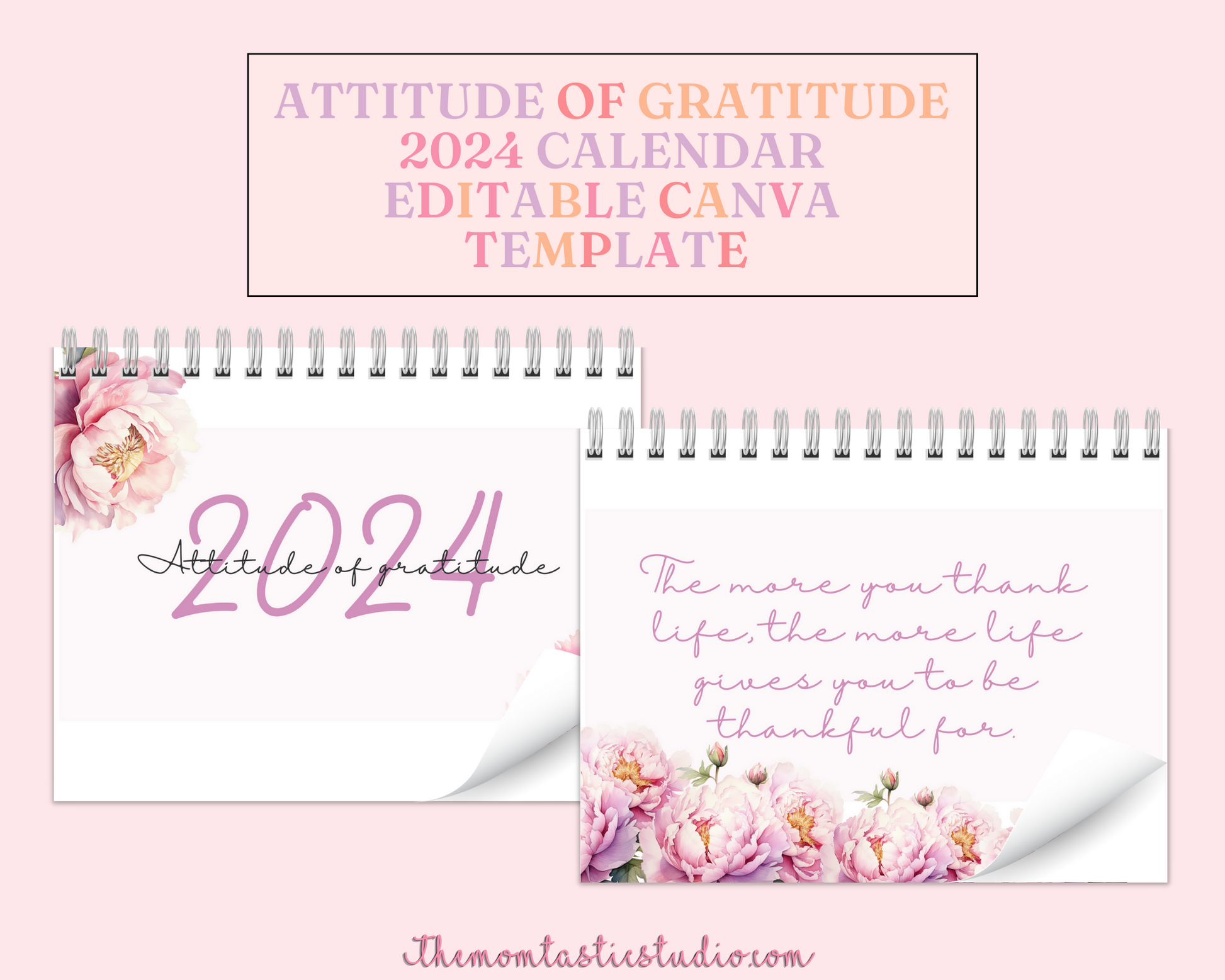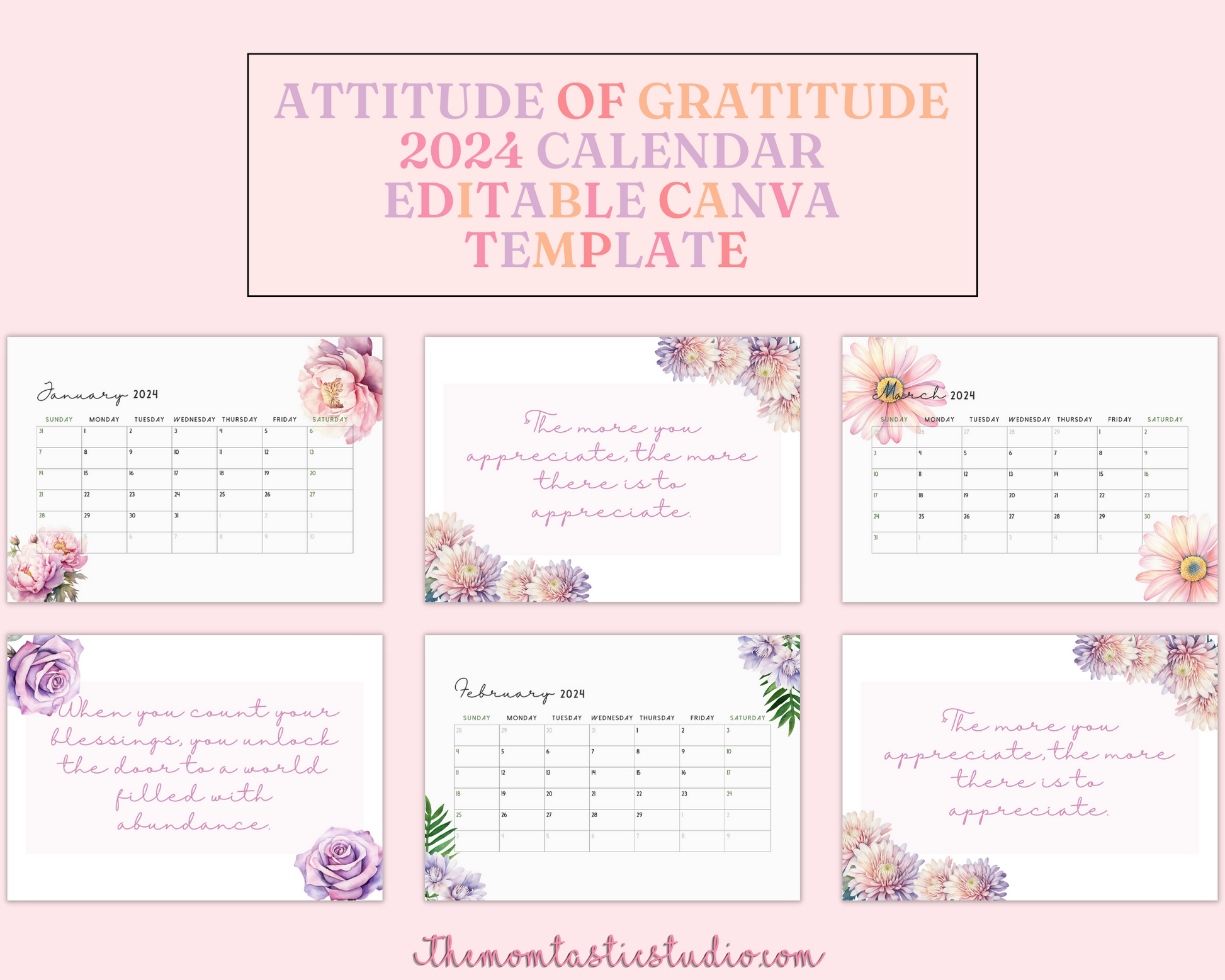 2024 Template | Attitude of Gratitude Calendar Printable | Canva Editable | Commercial Use