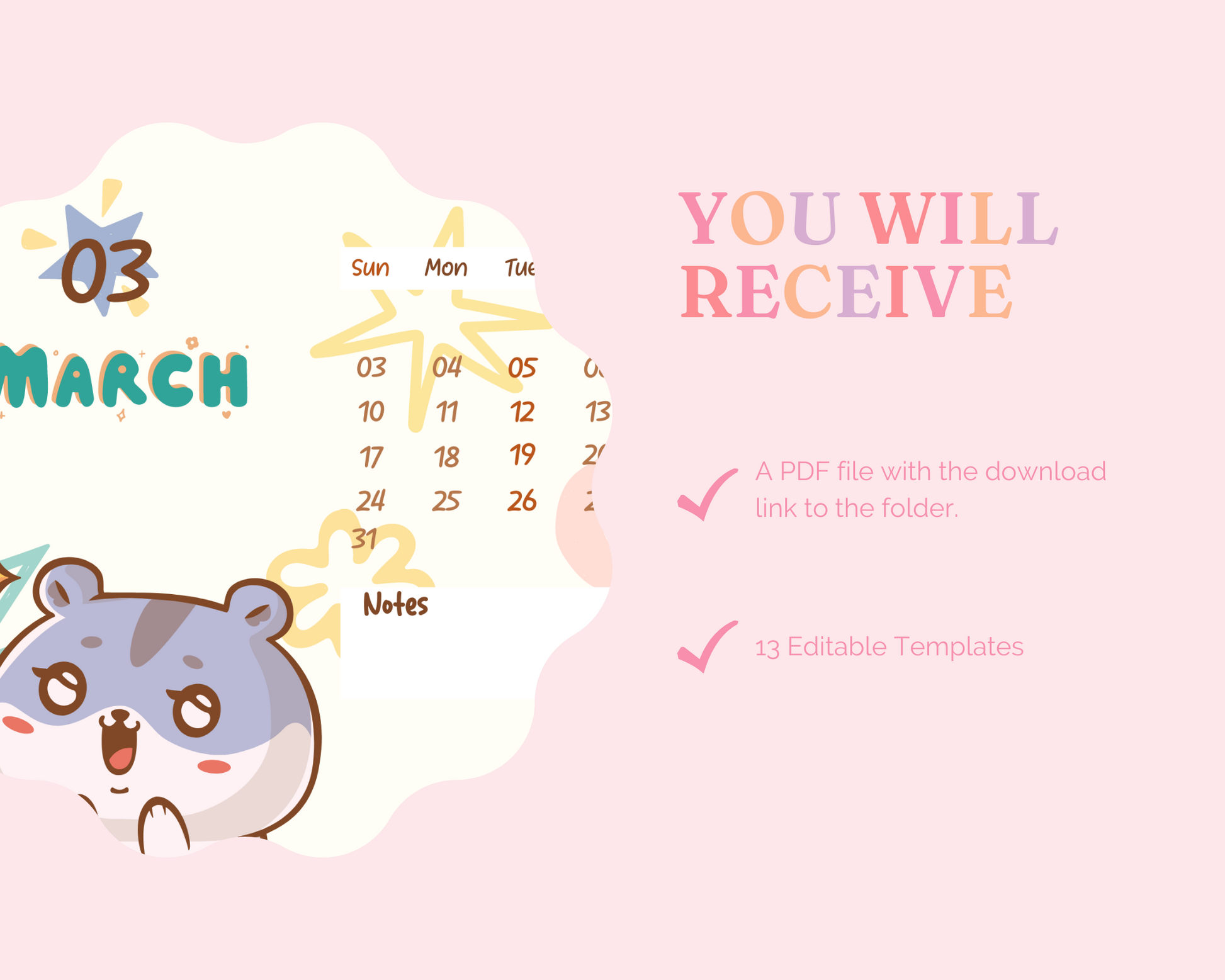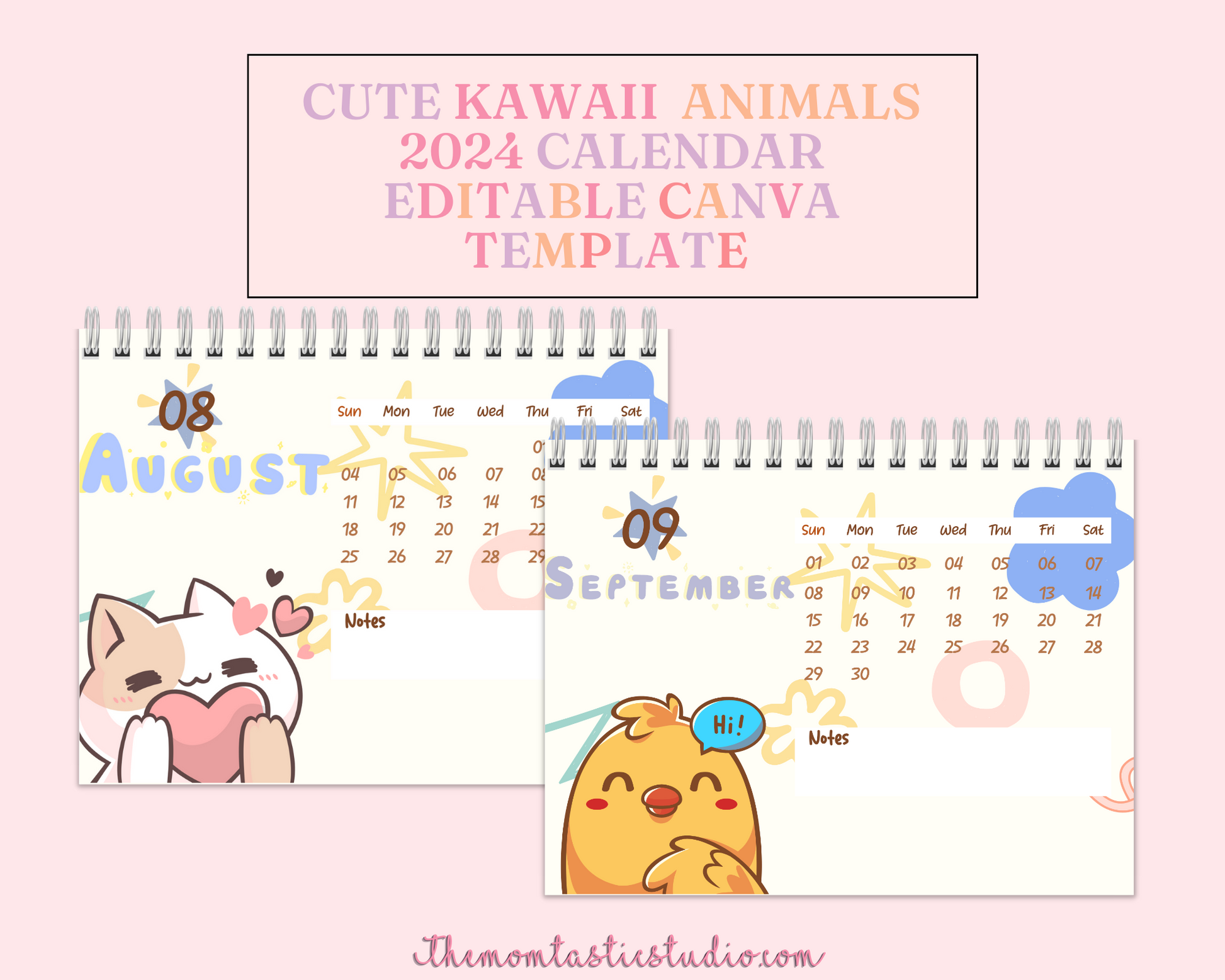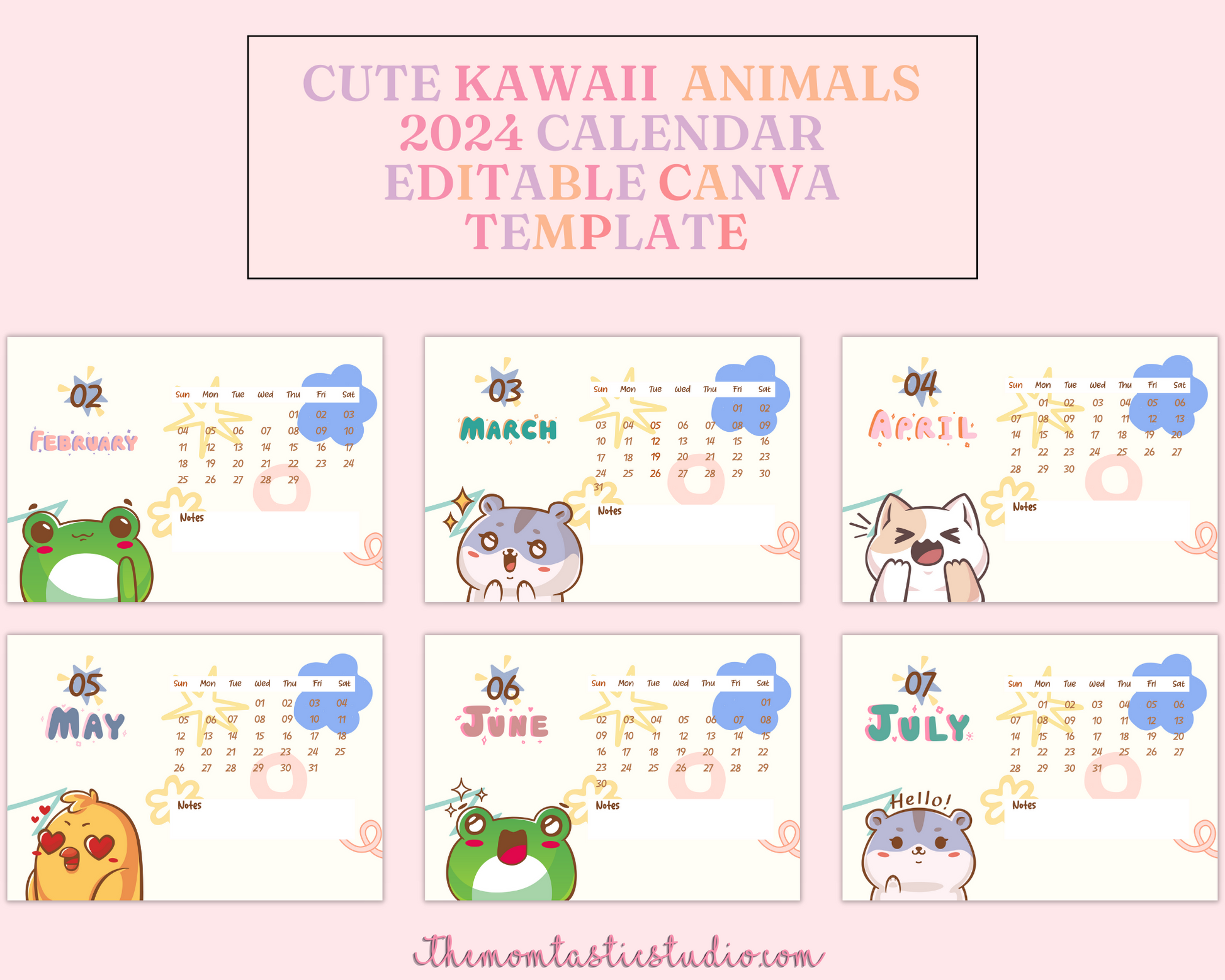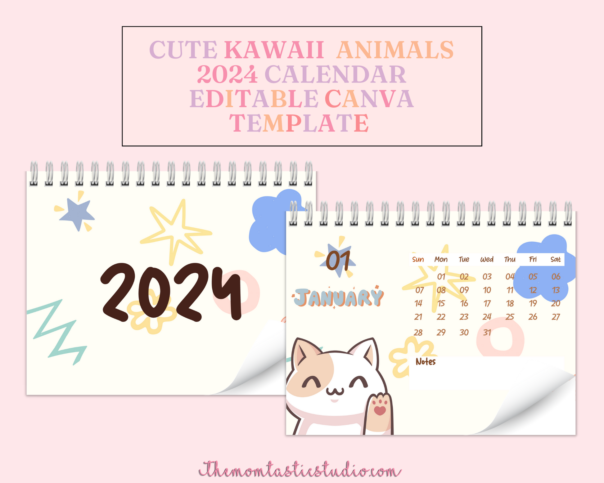 2024 Template | Kawaii Calendar Printable | Canva Editable | Commercial Use