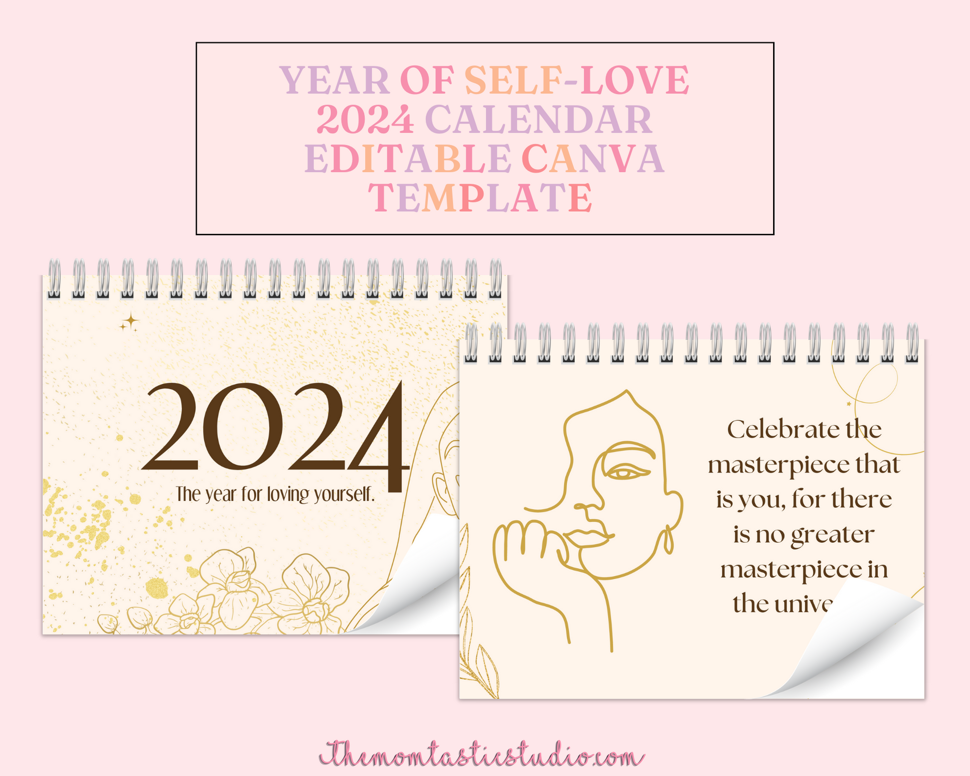 2024 Template | Year of Self-Love Calendar Printable | Canva Editable | Commercial Use