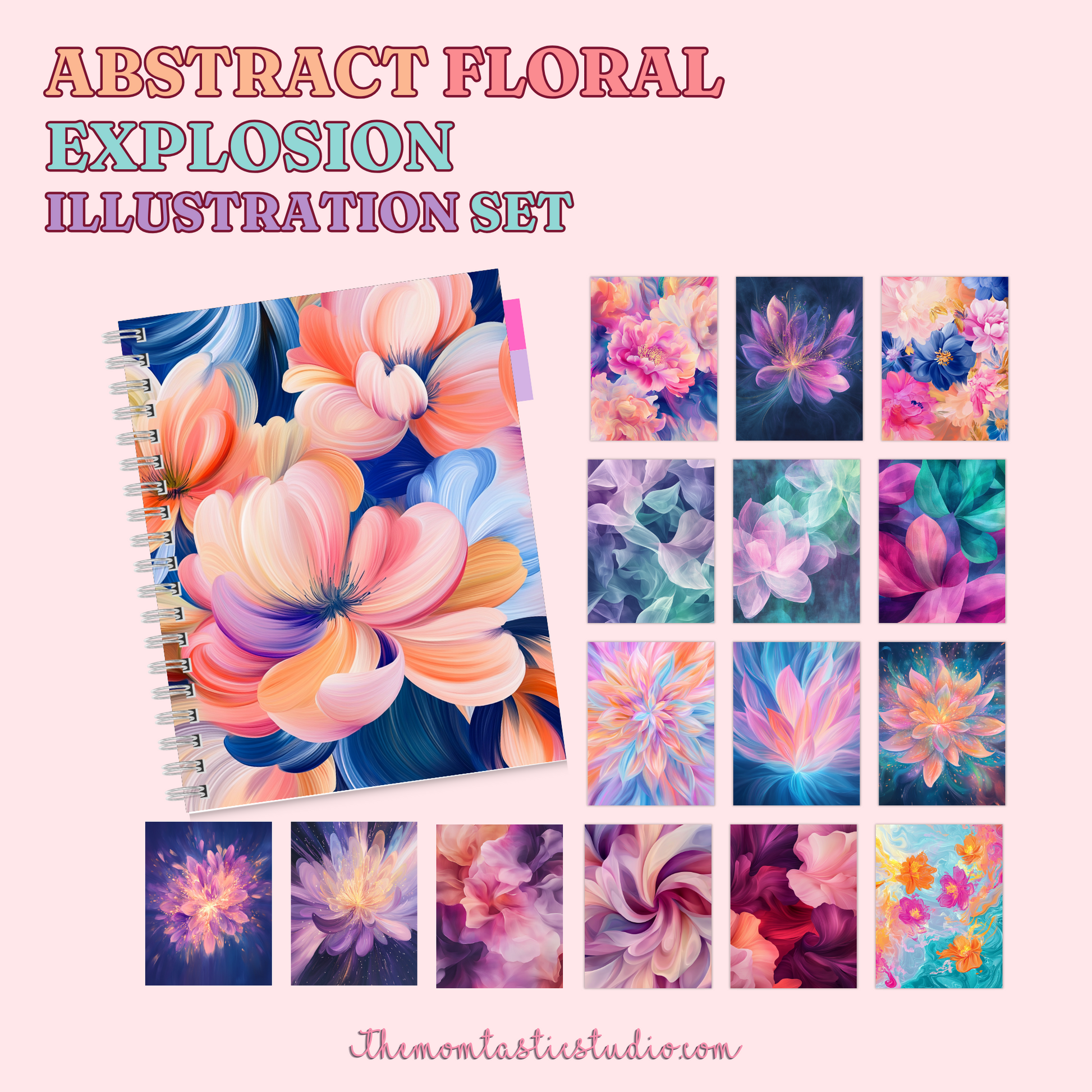 Abstract Floral Explosion Illustration Set - 300 DPI – Instant Download – Commercial Use