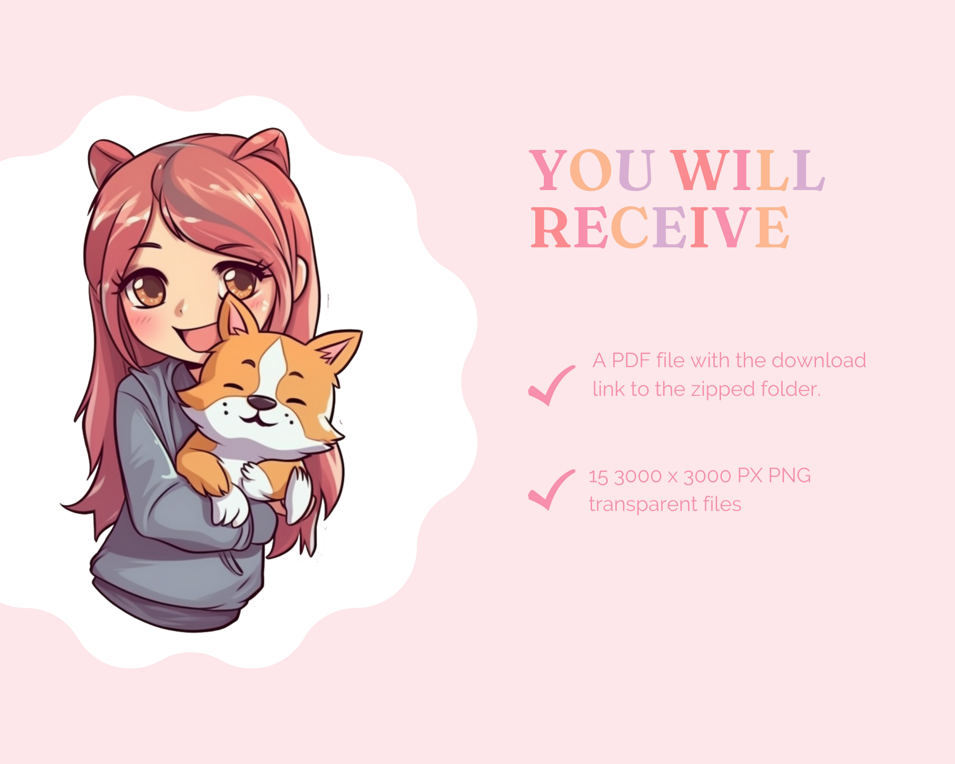 Upon purchase, you will receive an email with a download link to access your Playful Chibi Girl Stickers digital collection. Please note that this is a digital product, no physical item will be shipped.