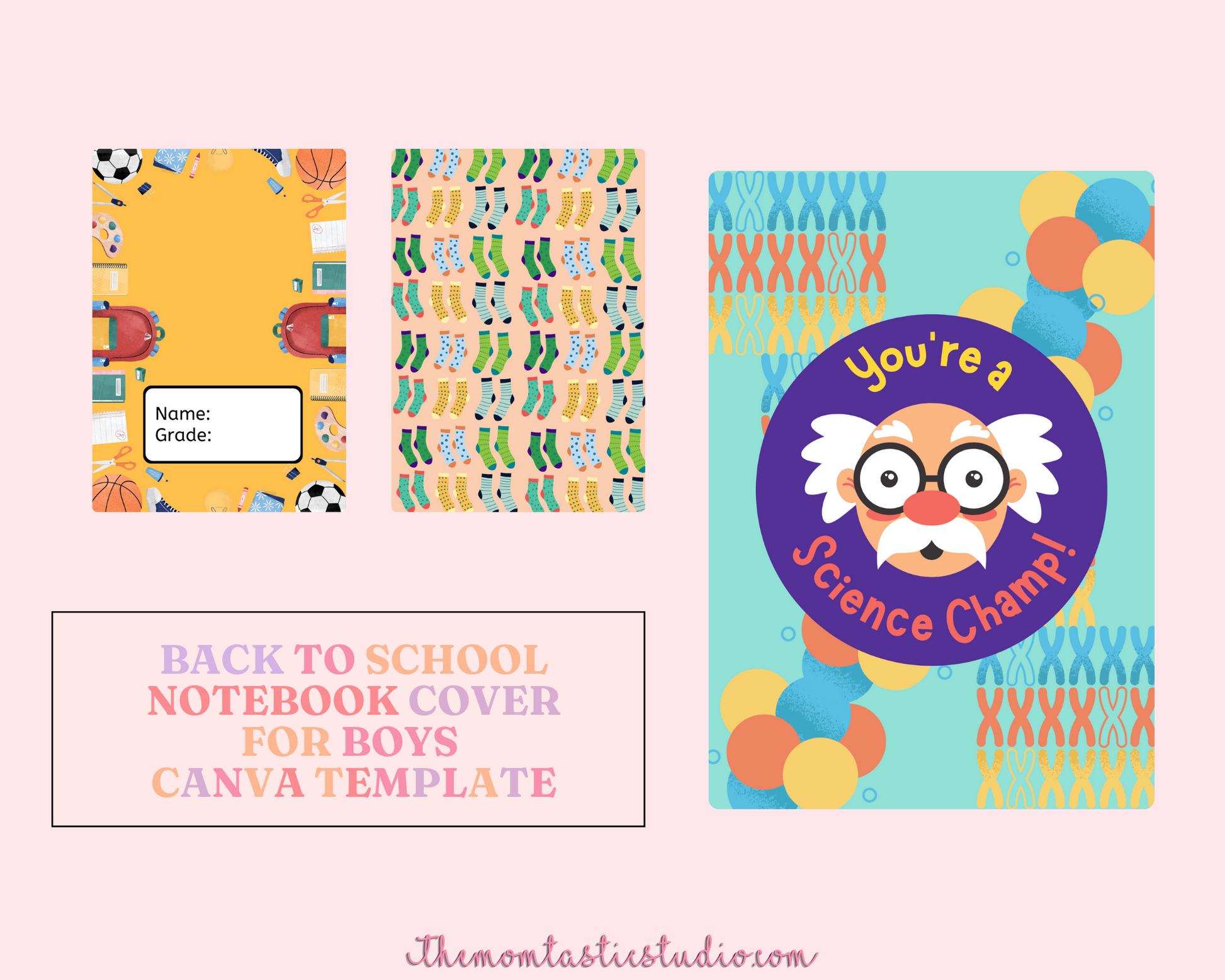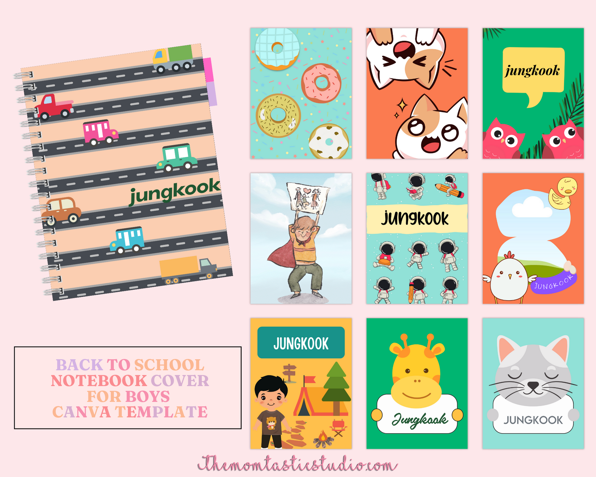 Back to School Notebook Cover Canva Template for Boys - 20 Pages - Commercial Use