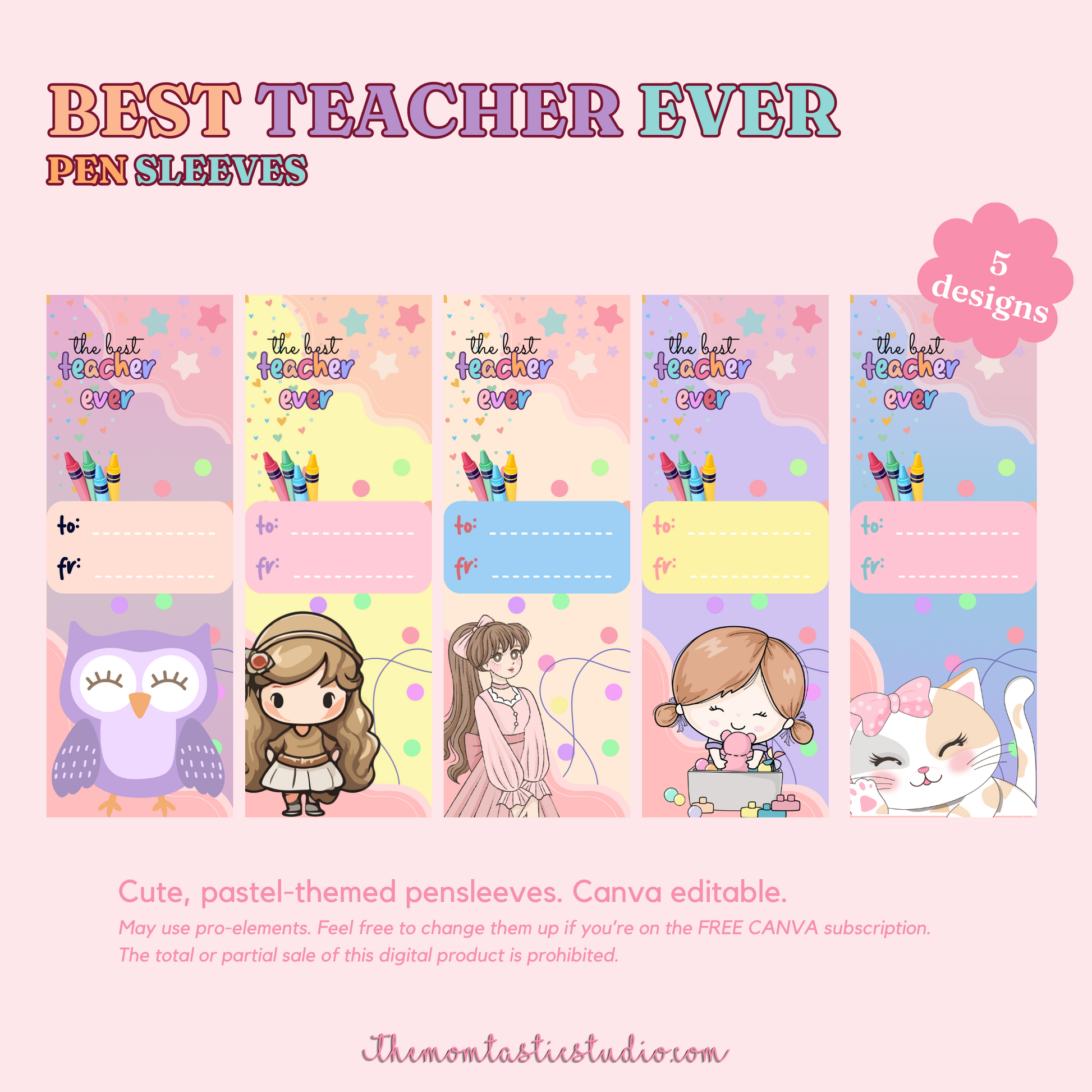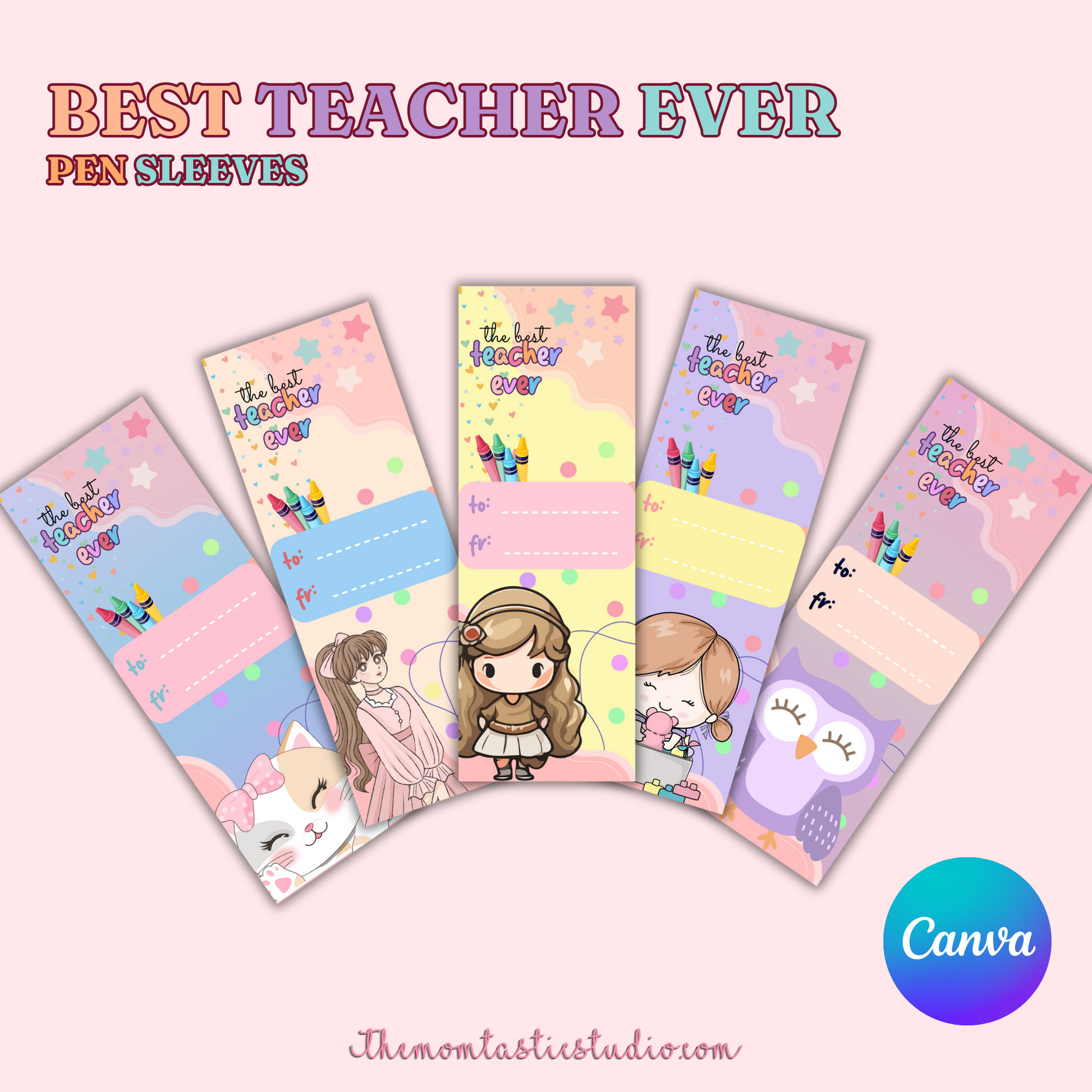 Best Teacher Ever Pen Sleeves - Canva Editable Template - Commercial Use