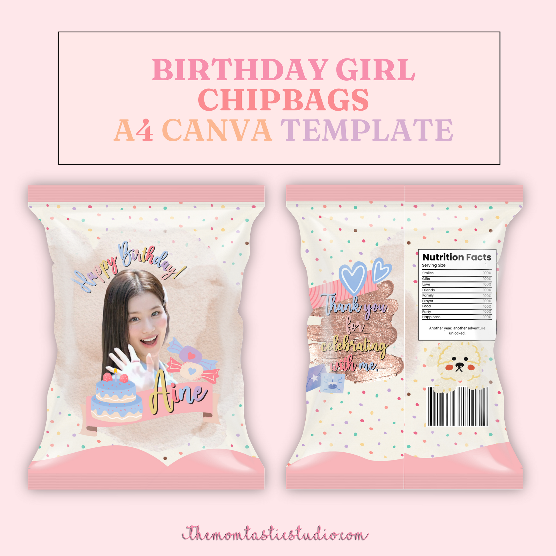 Birthday Girl Chip Bag Template – A4 Size – PDF - Canva Template