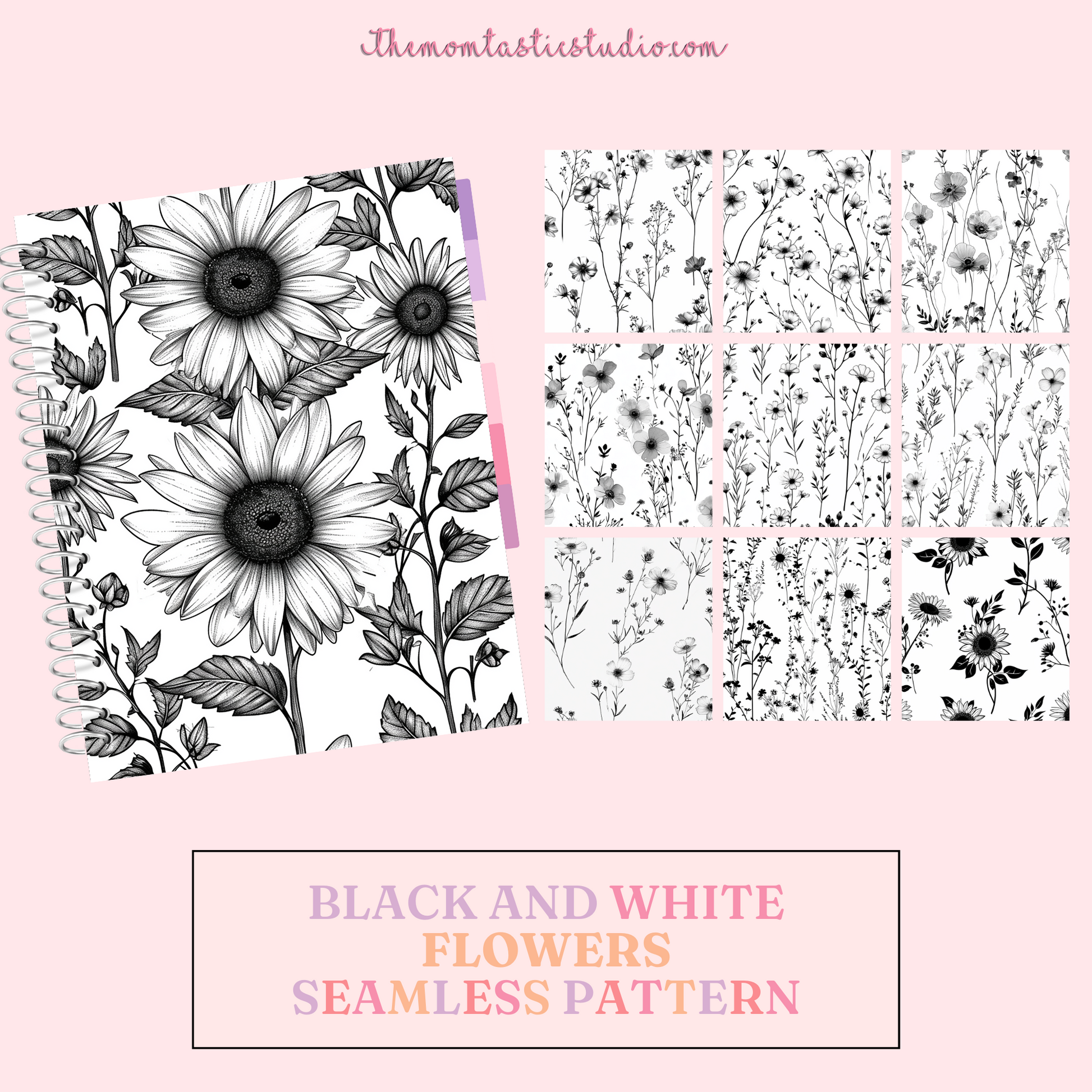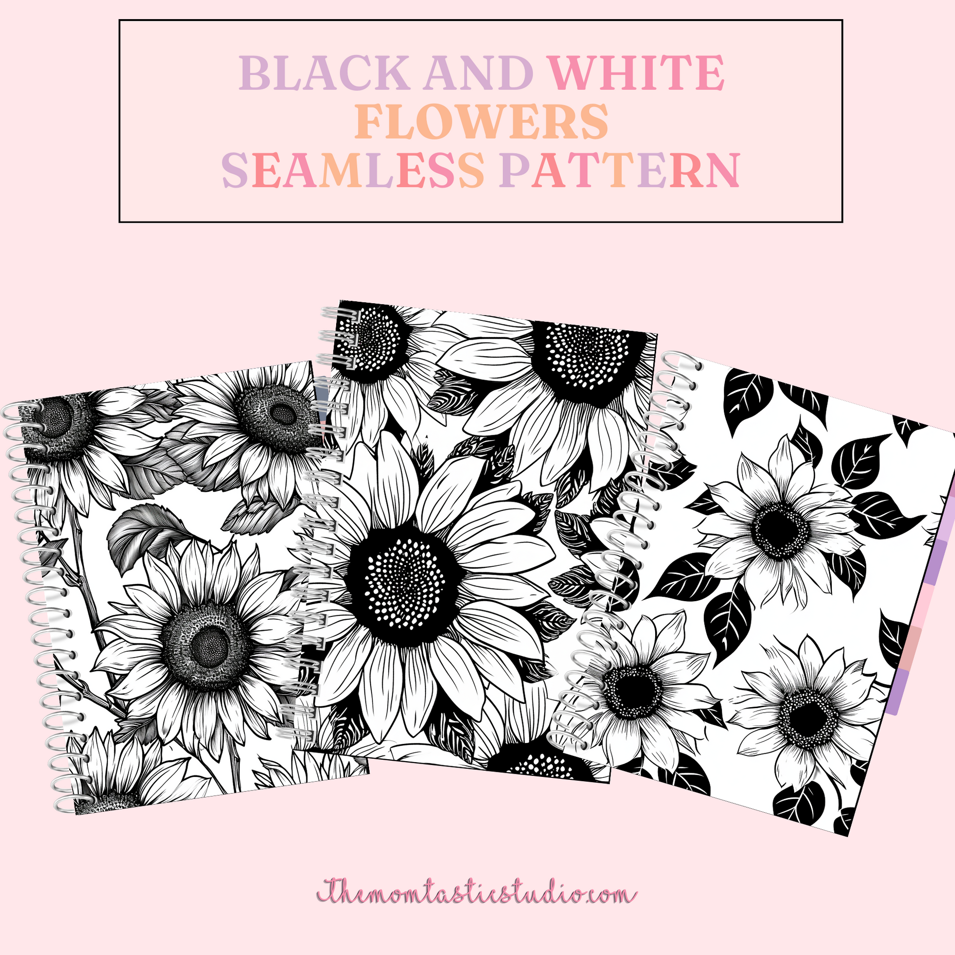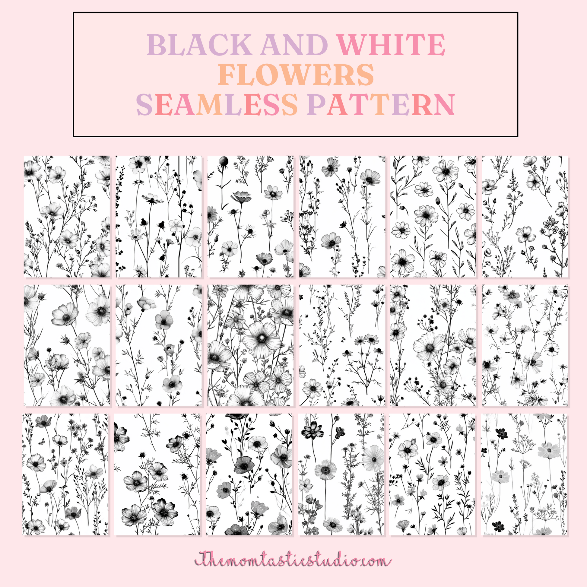 Black and White Flowers Seamless Pattern | Gift Wrappers | Digital Paper | Commercial Use