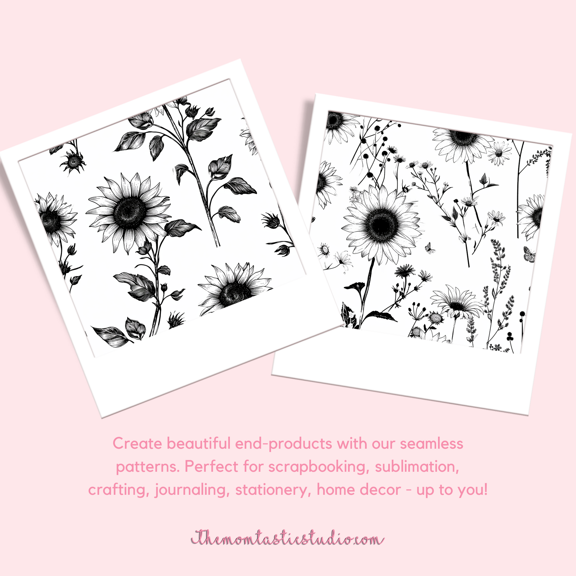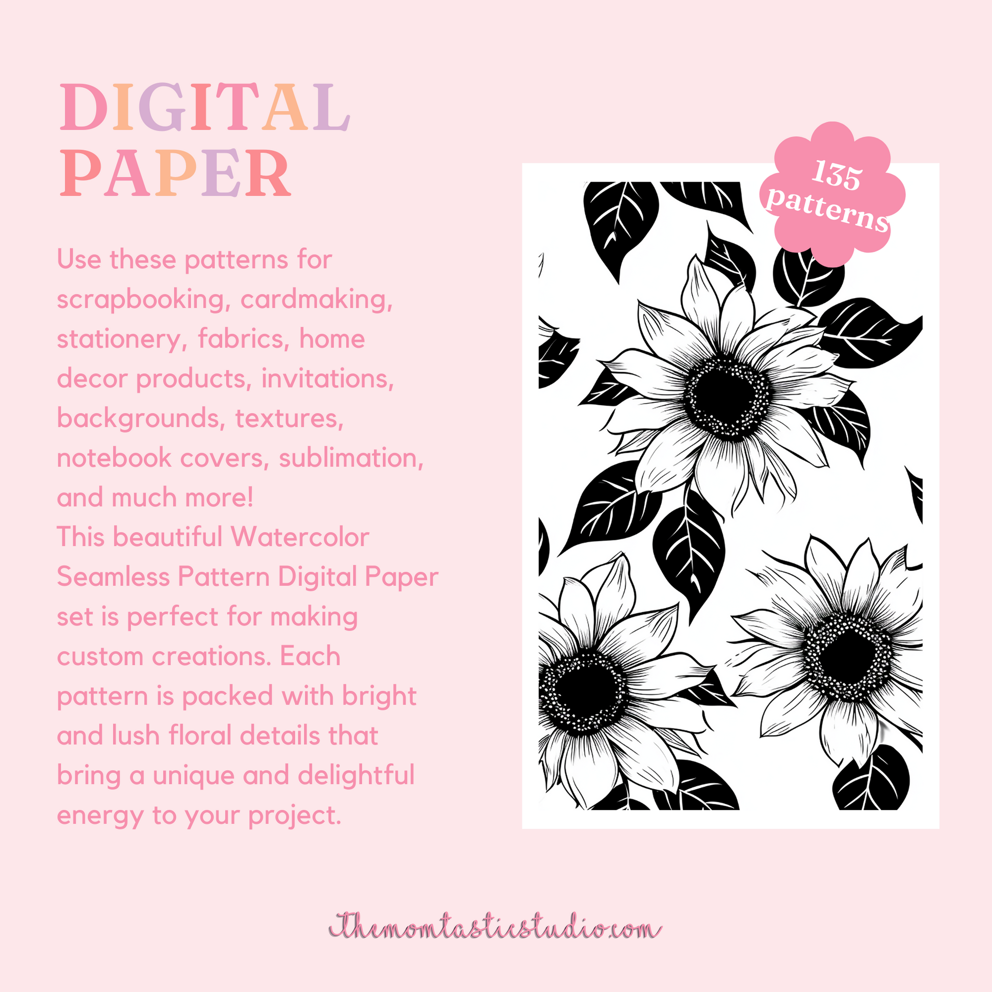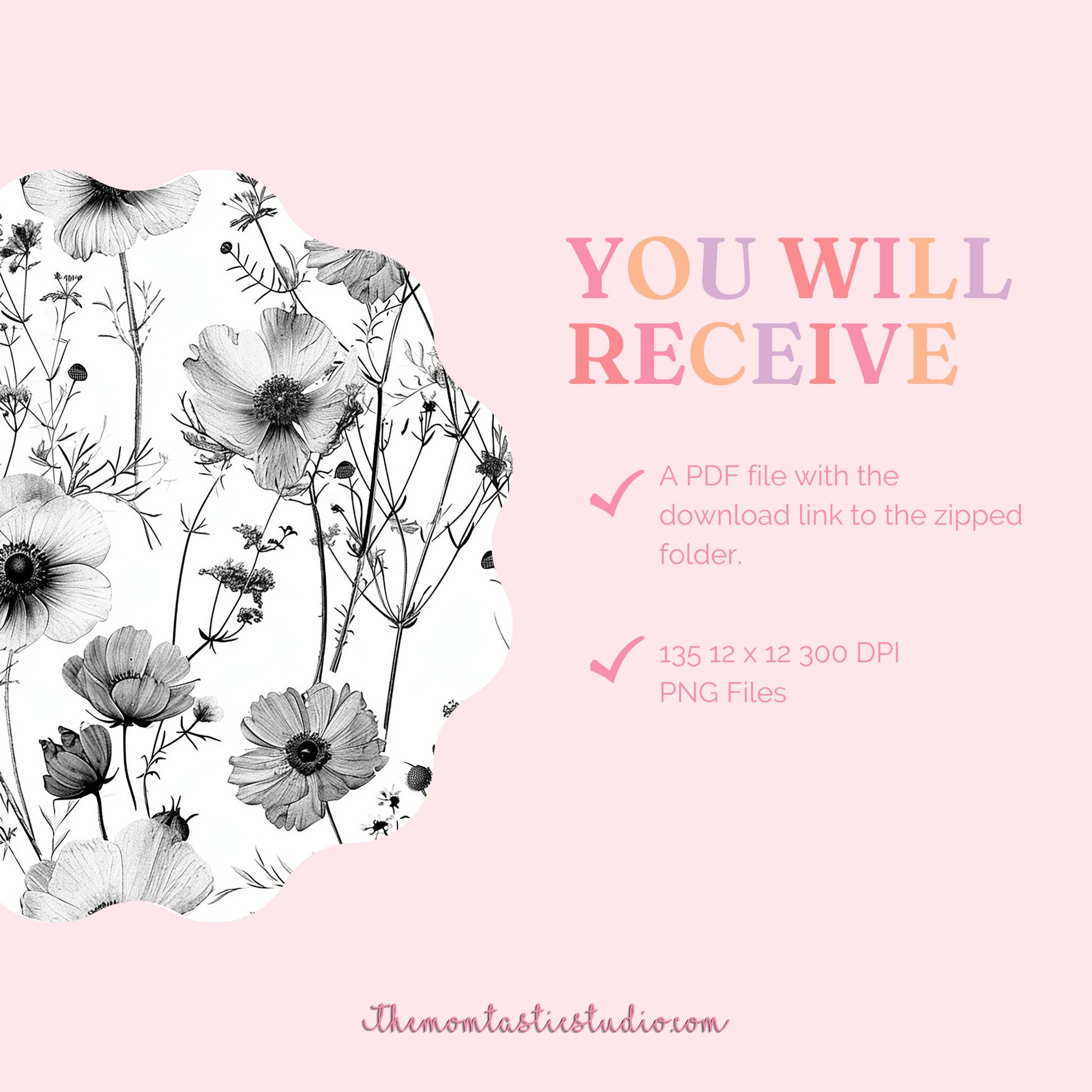 Black and White Flowers Seamless Pattern | Gift Wrappers | Digital Paper | Commercial Use