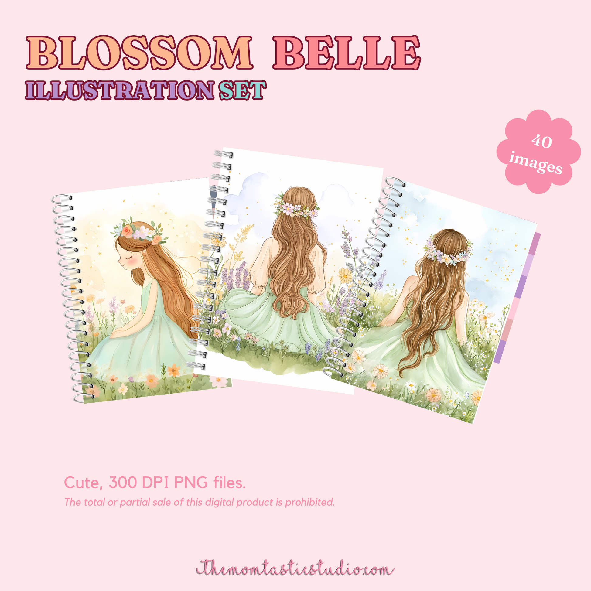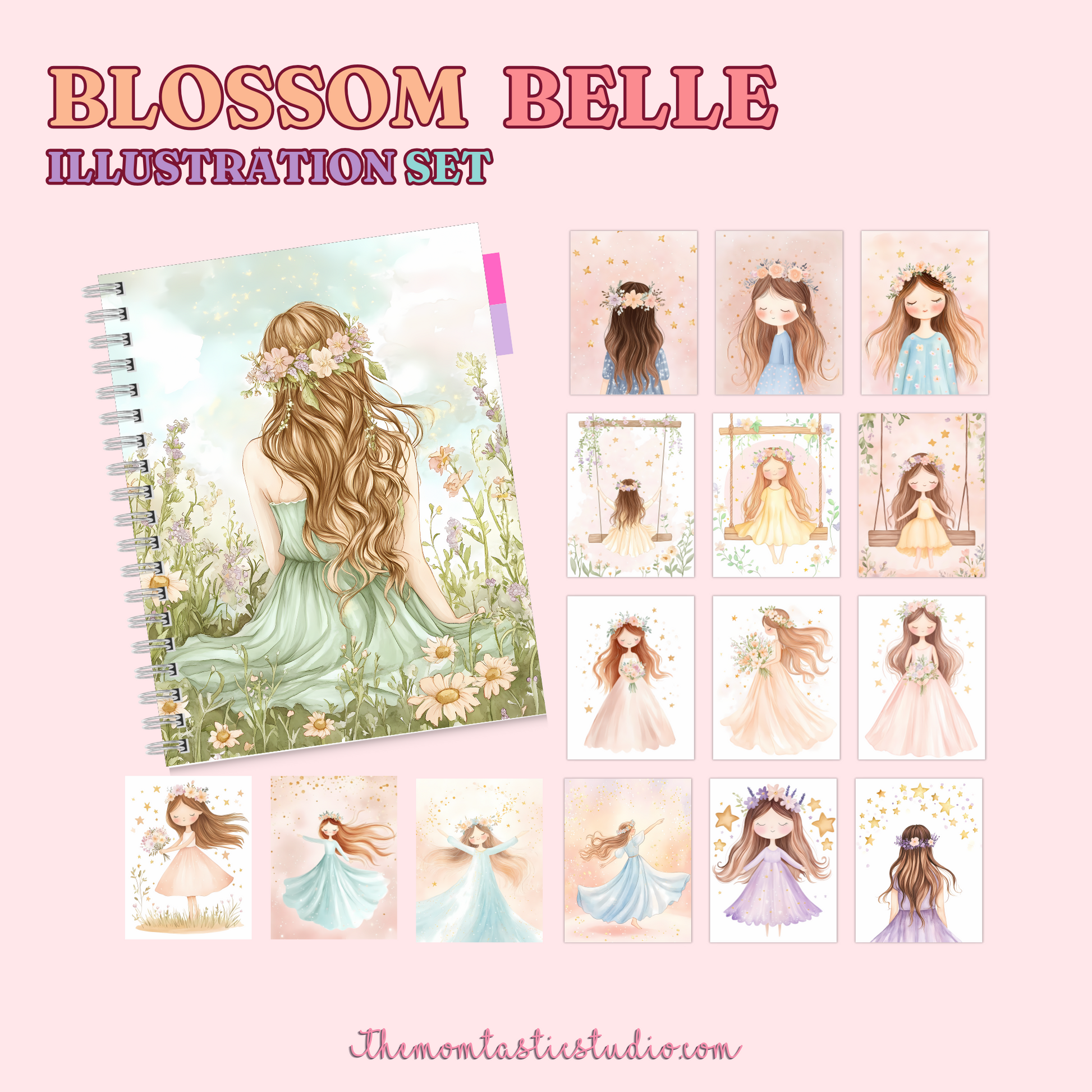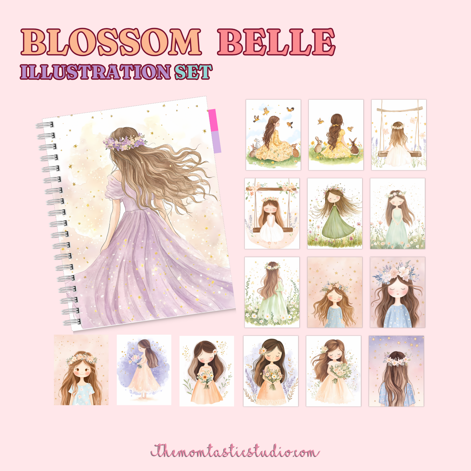 Blossom Belle Illustration Set - 300 DPI – Instant Download – Commercial Use