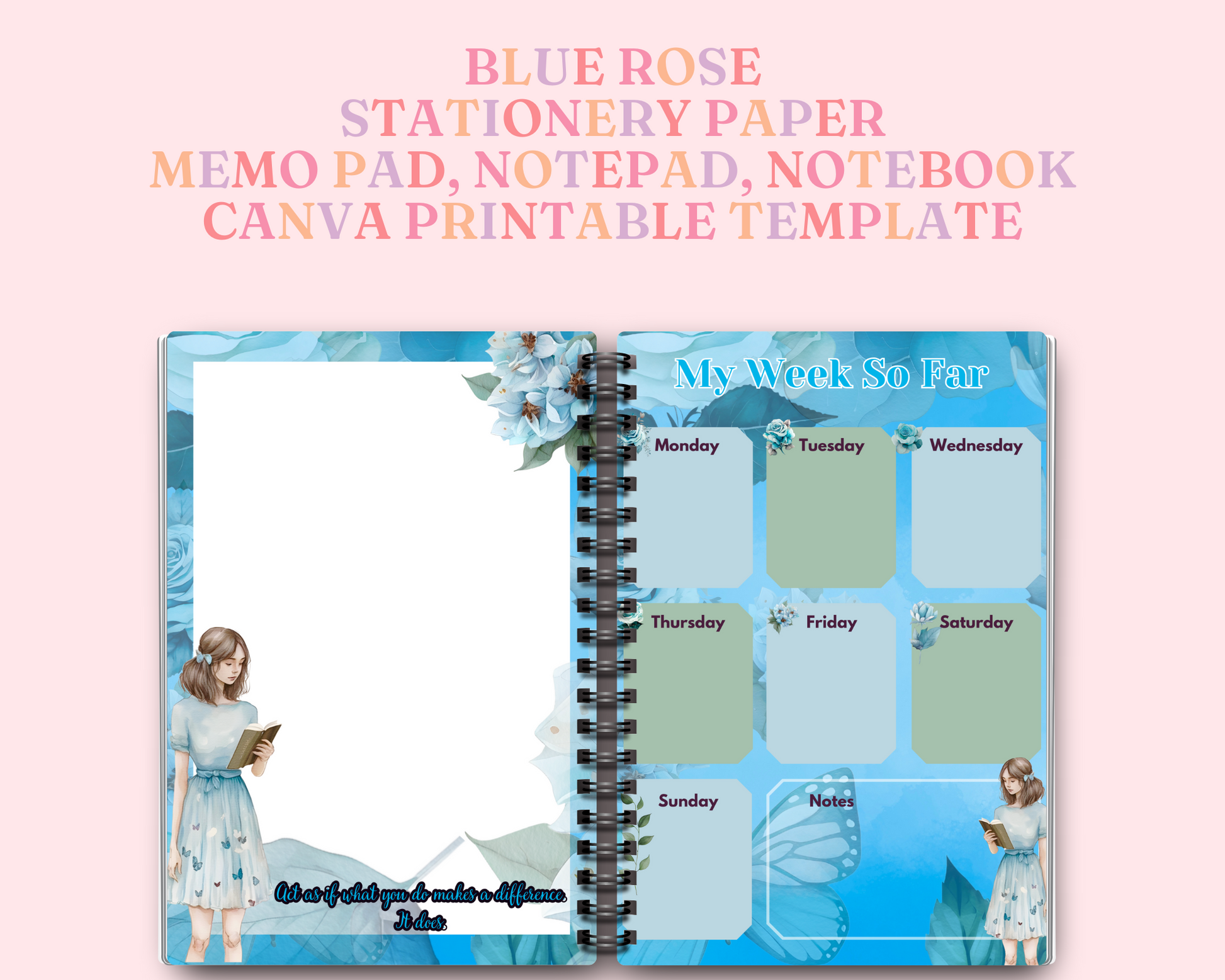 Blue Rose Stationery Paper – Memopad, Notepad & Notebook – Commercial Use – Digital Canva Template