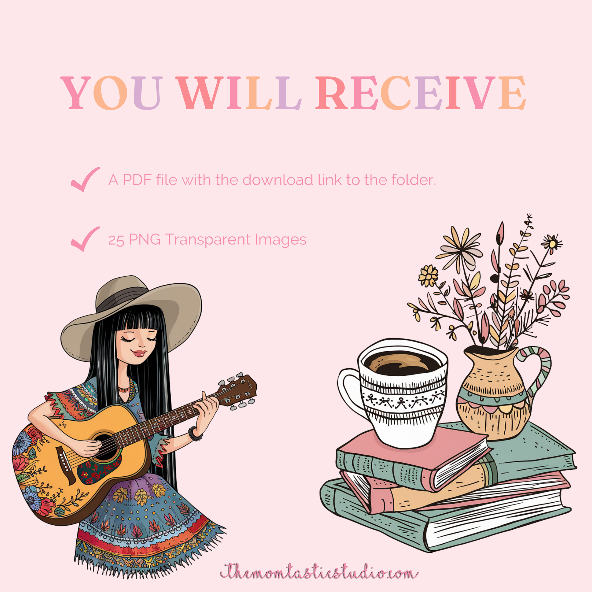 Boho Chic – Clipart Set - Planner Sticker - High-Quality PNG - Transparent Background - Commercial Use