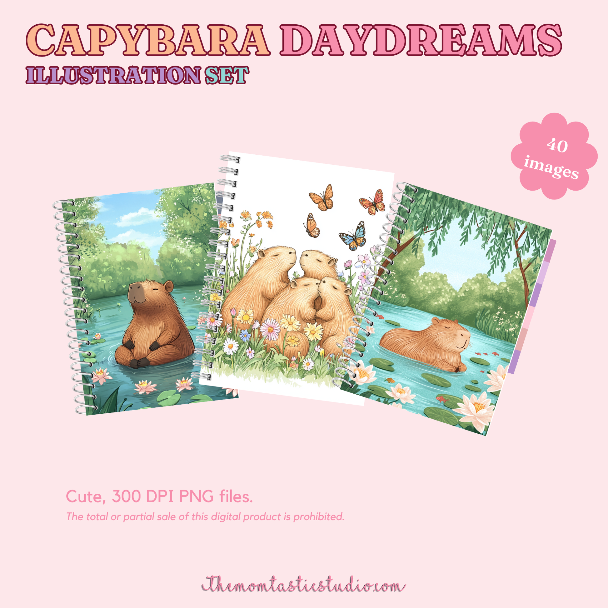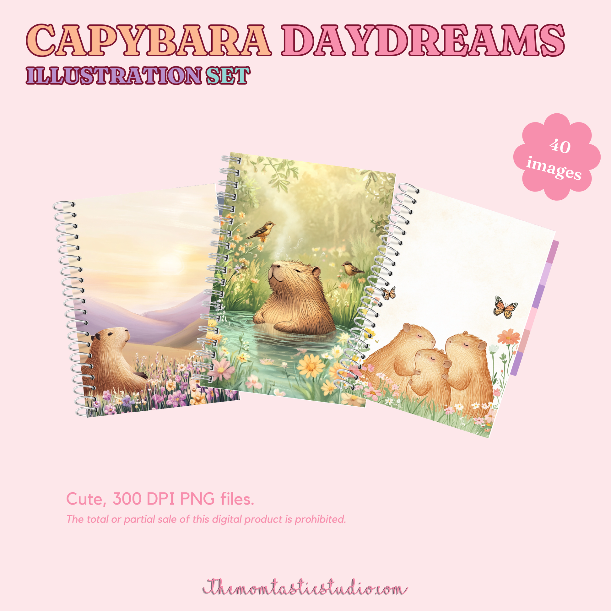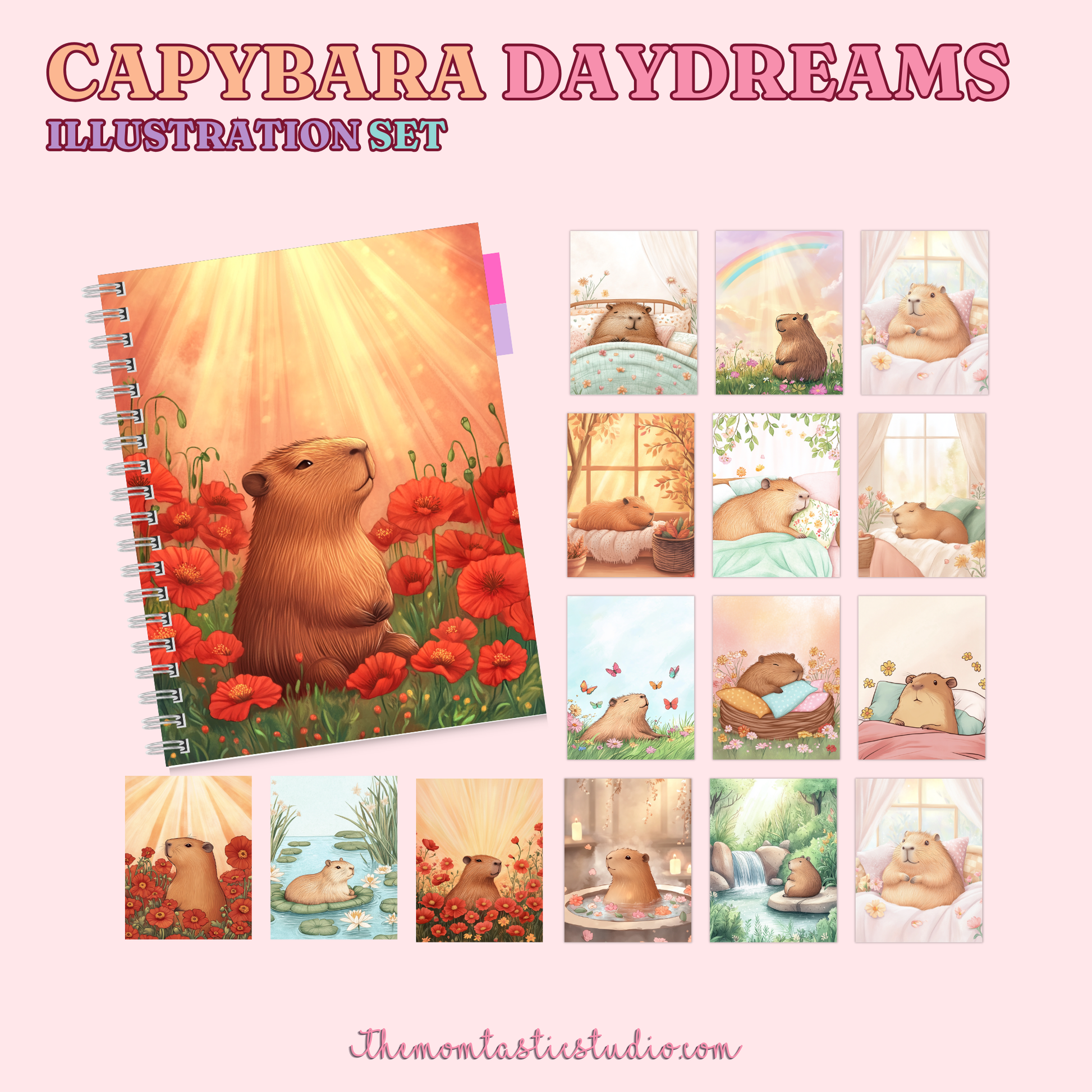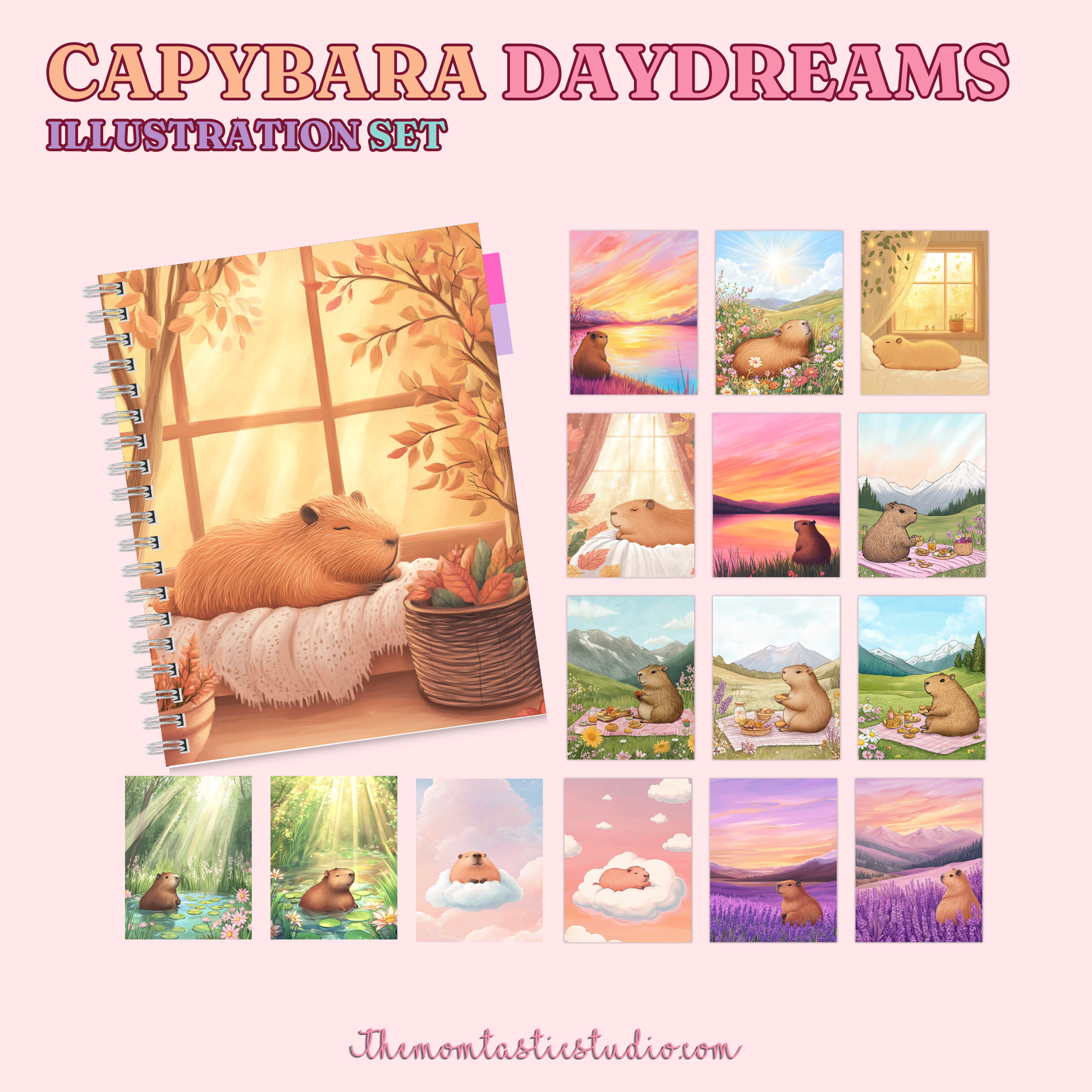 Capybara Daydreams Illustration Set - 300 DPI – Instant Download – Commercial Use