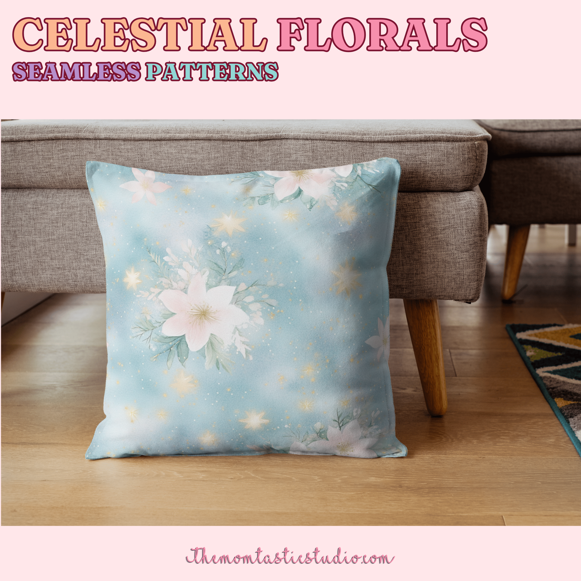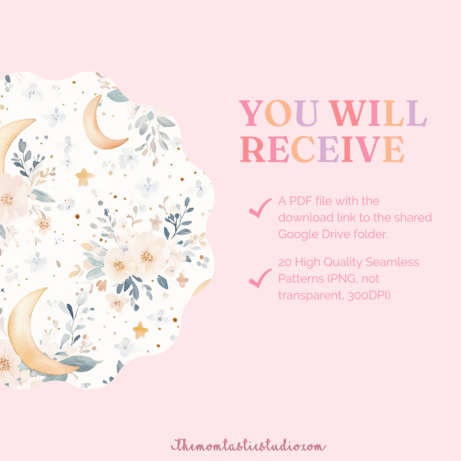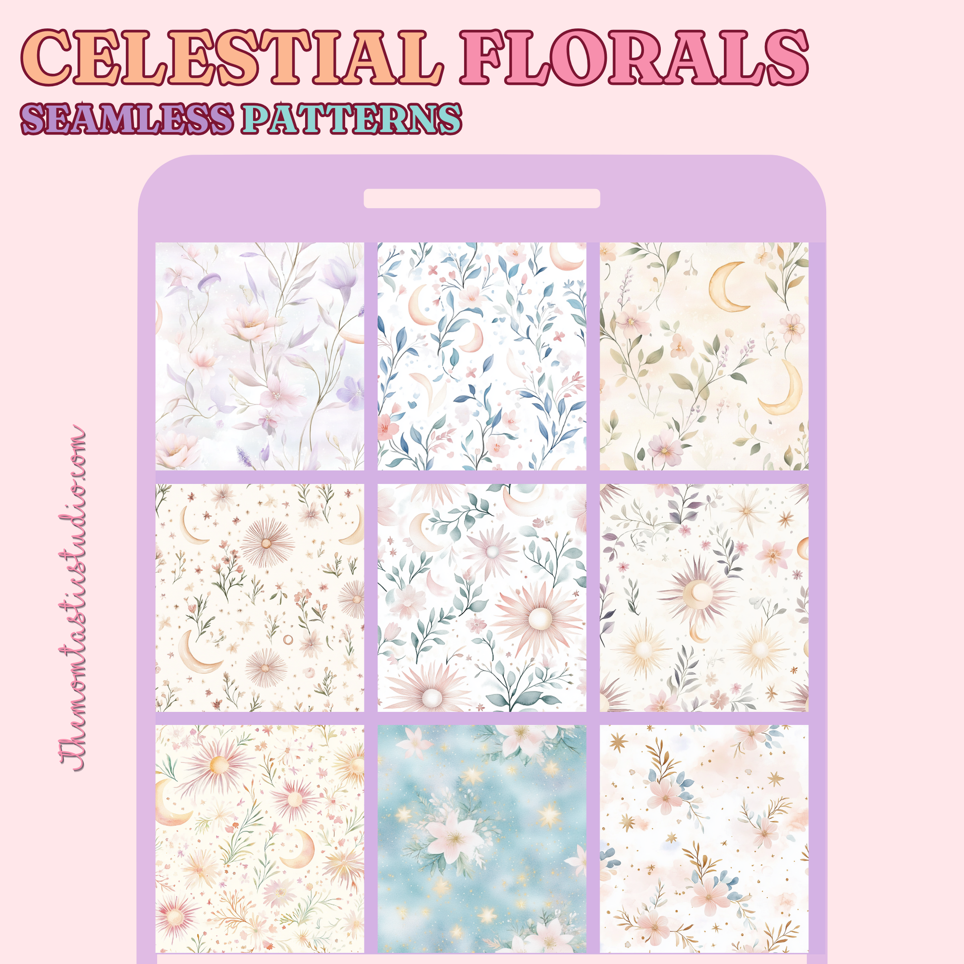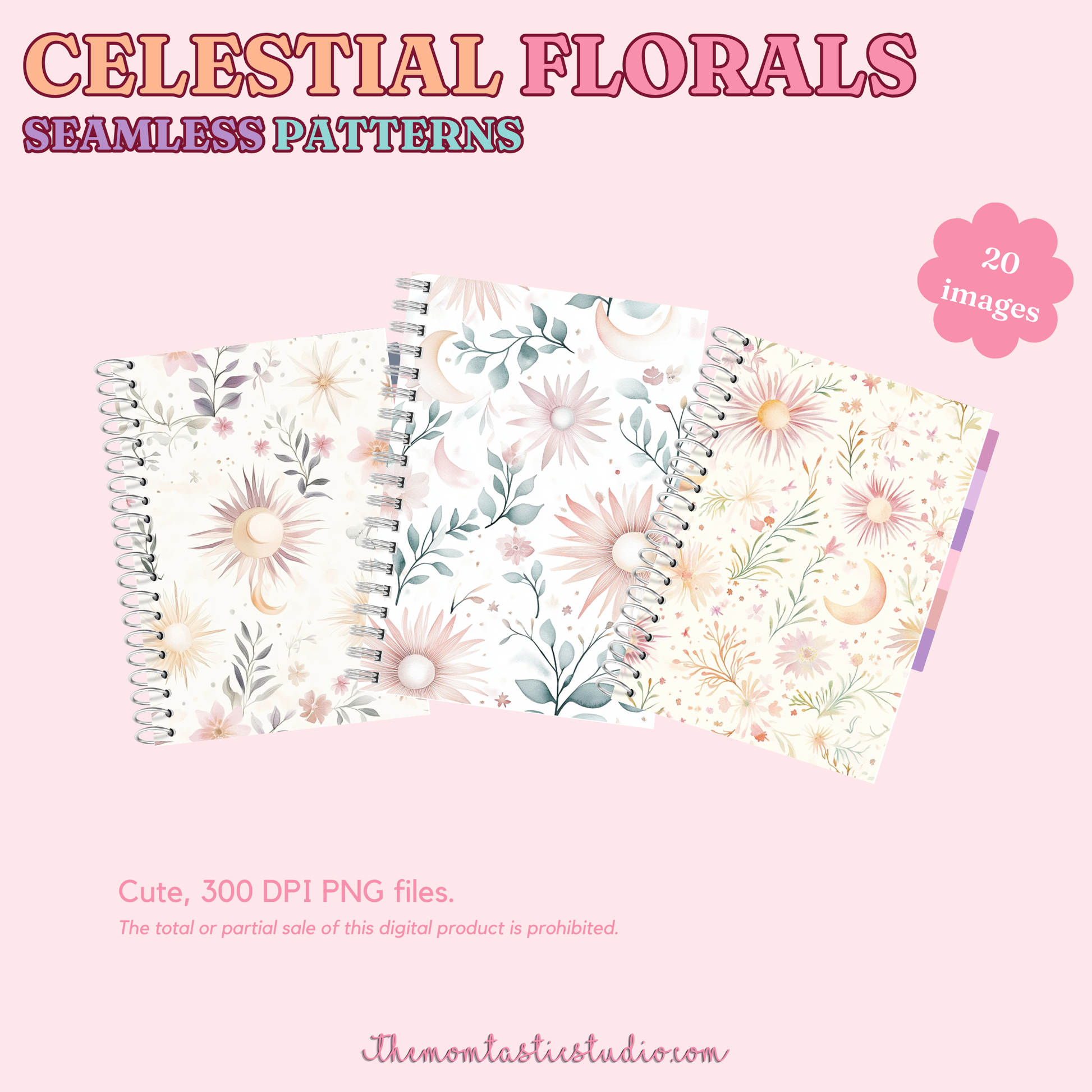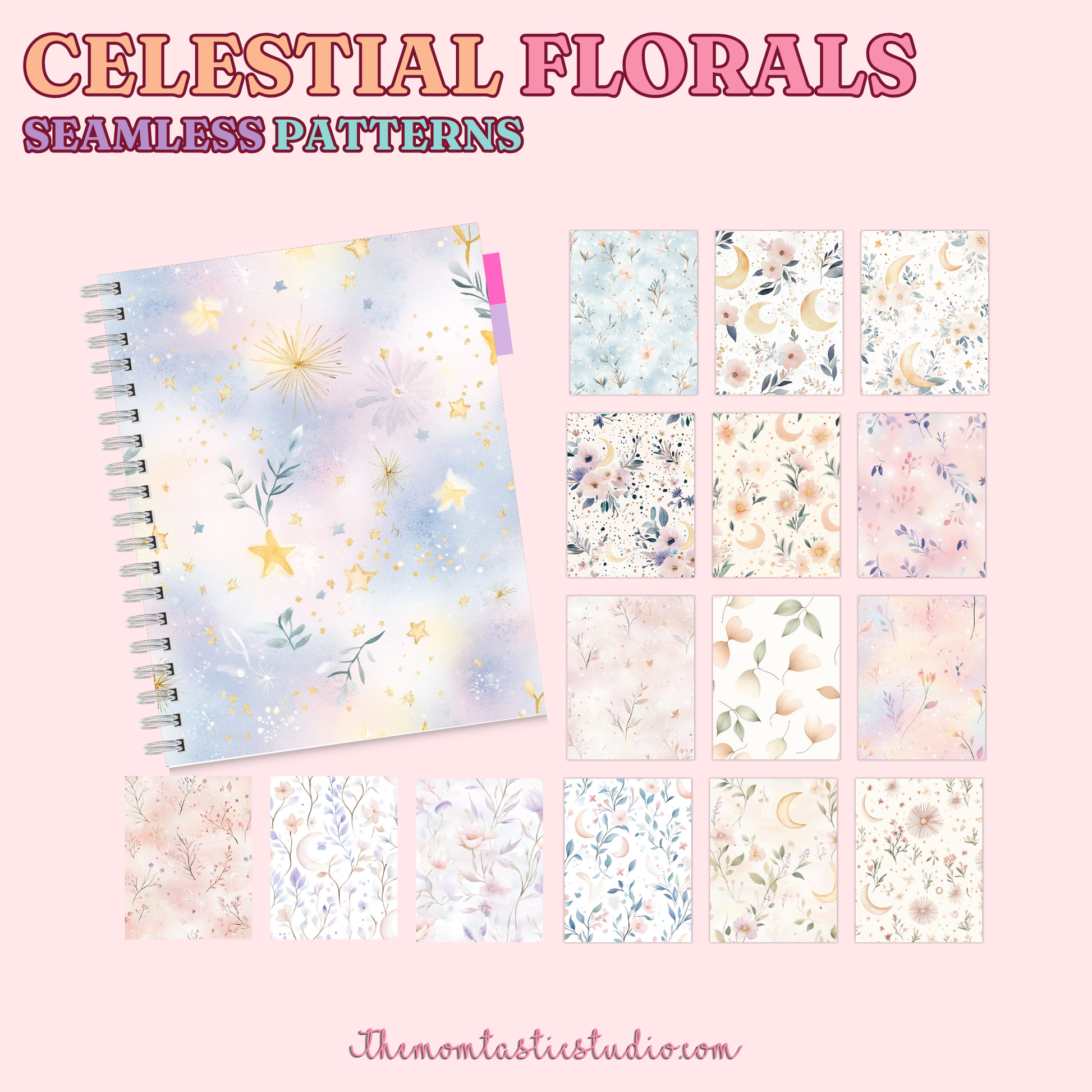 Celestial Florals Seamless Patterns for Commercial Use, Digital Paper - 300 DPI