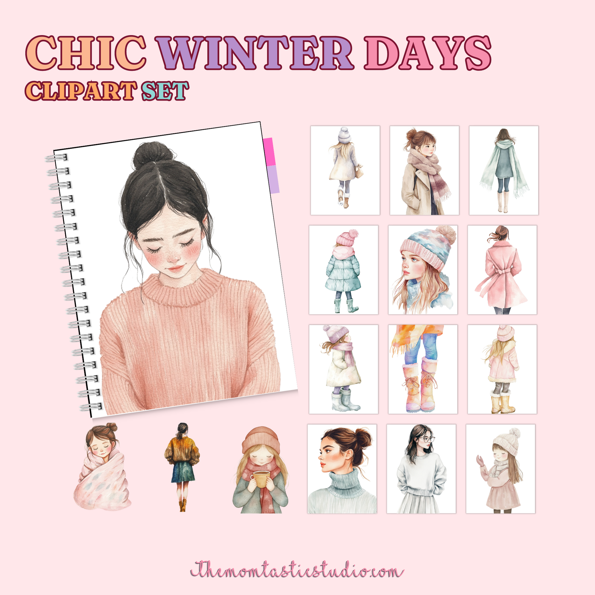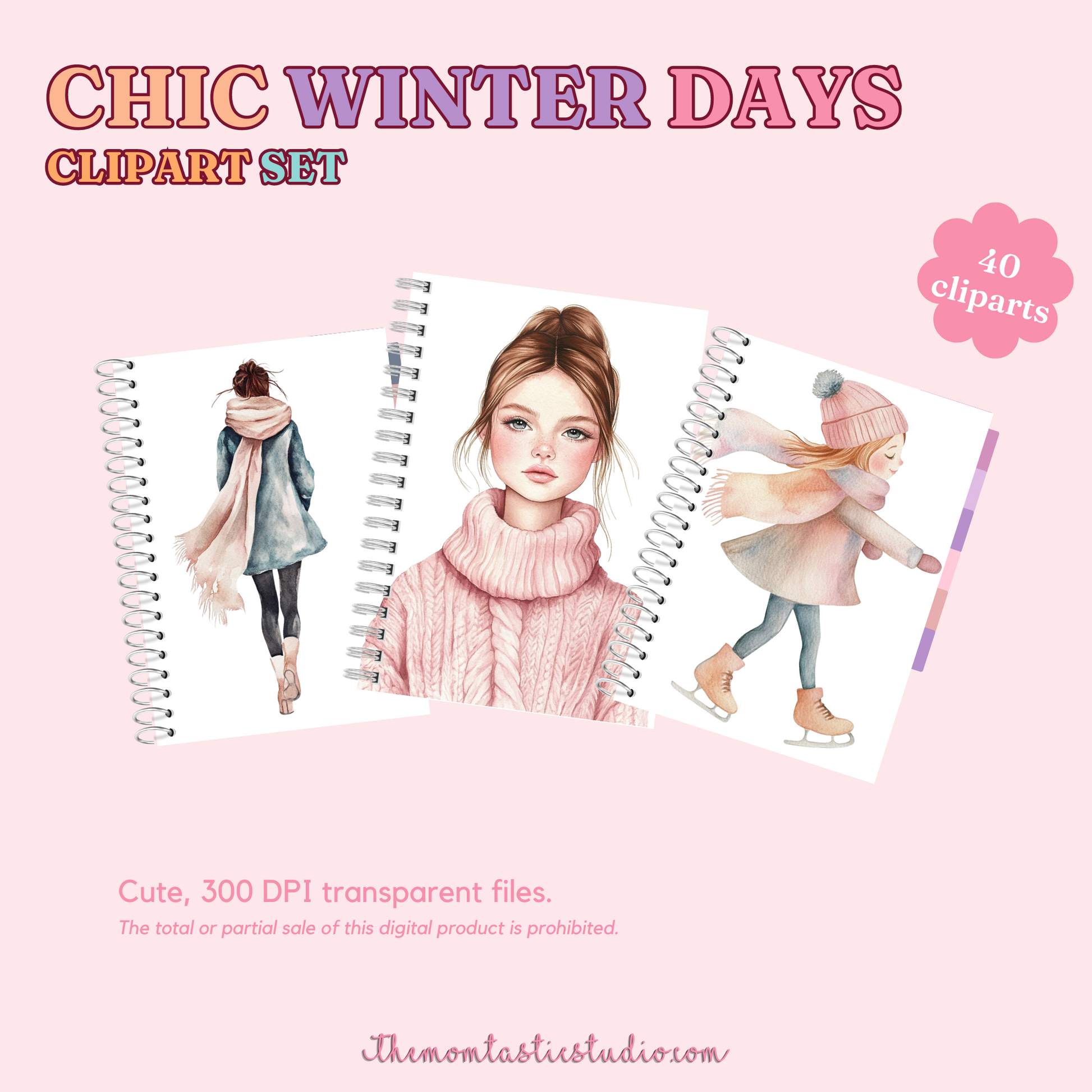 Chic Winter Days Clipart Set - 300 DPI – Instant Download – Commercial Use (Transparent Files)
