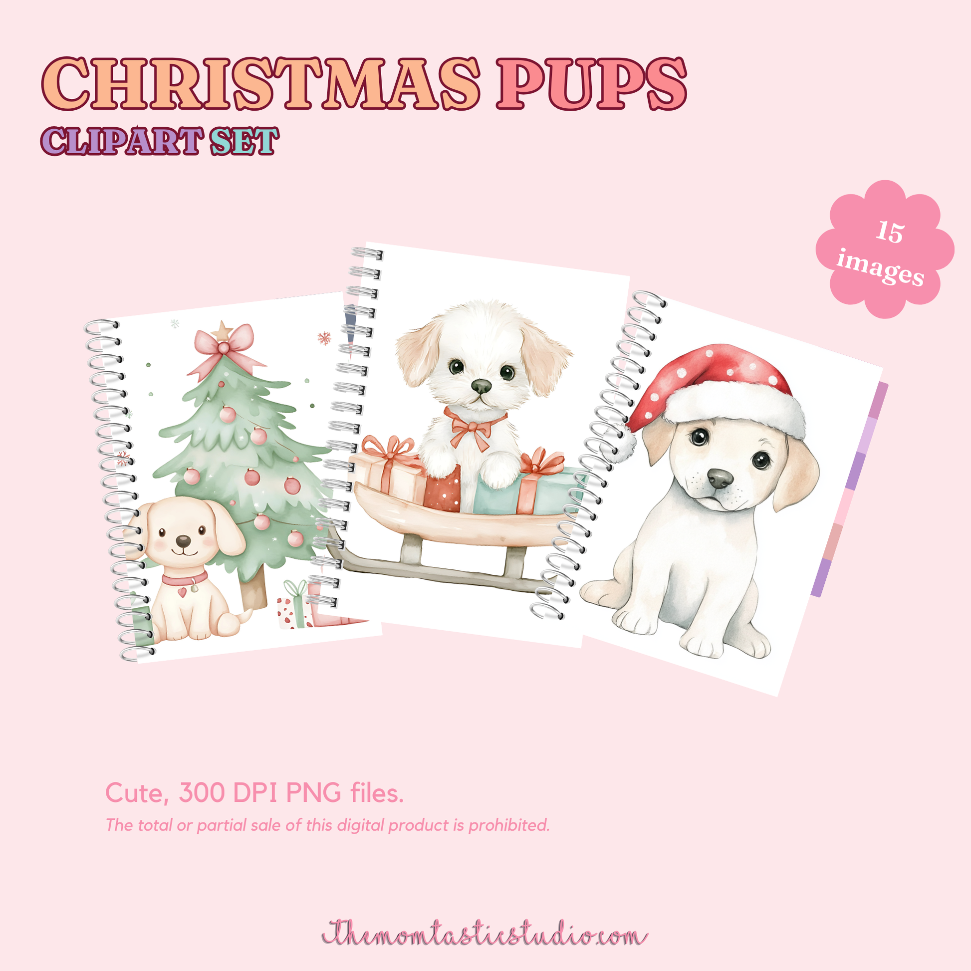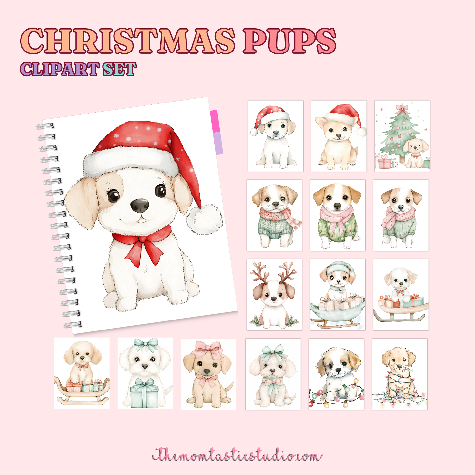 Christmas Pups Clipart Set - 300 DPI – Instant Download – Commercial Use (Transparent Files)