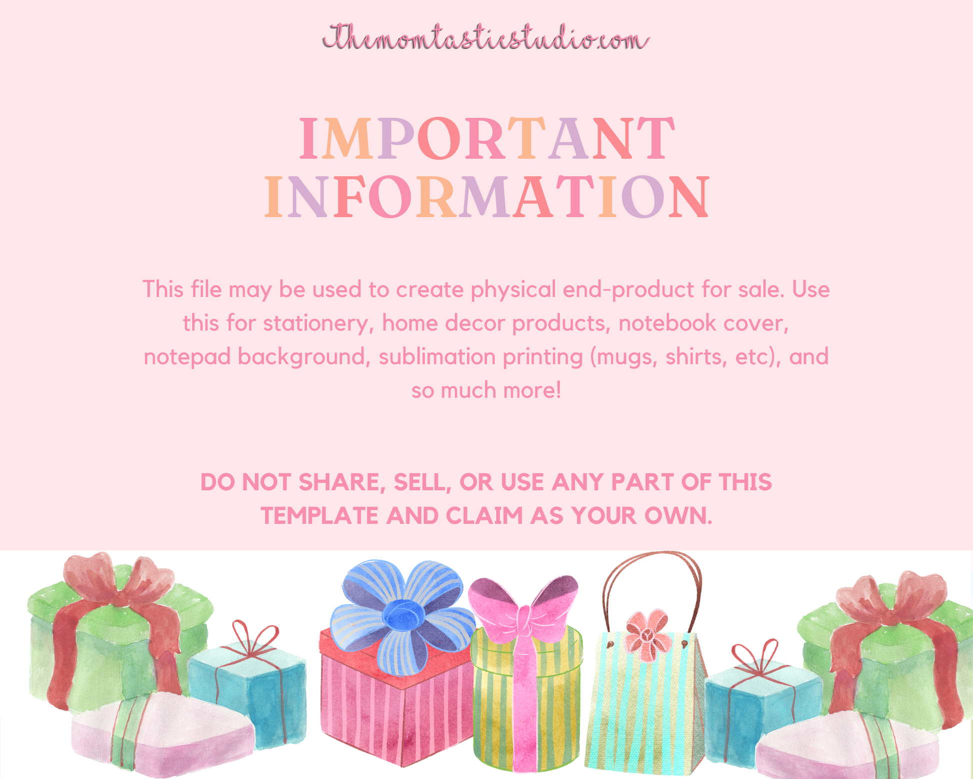 This file may be used to create physical end-product for sale. Use this for stationery, home decor products, notebook cover, notepad background, sublimation printing (mugs, shirts, etc), and so much more! Art must not be claimed as own or the digital file be shared, resold, or altered in any way.