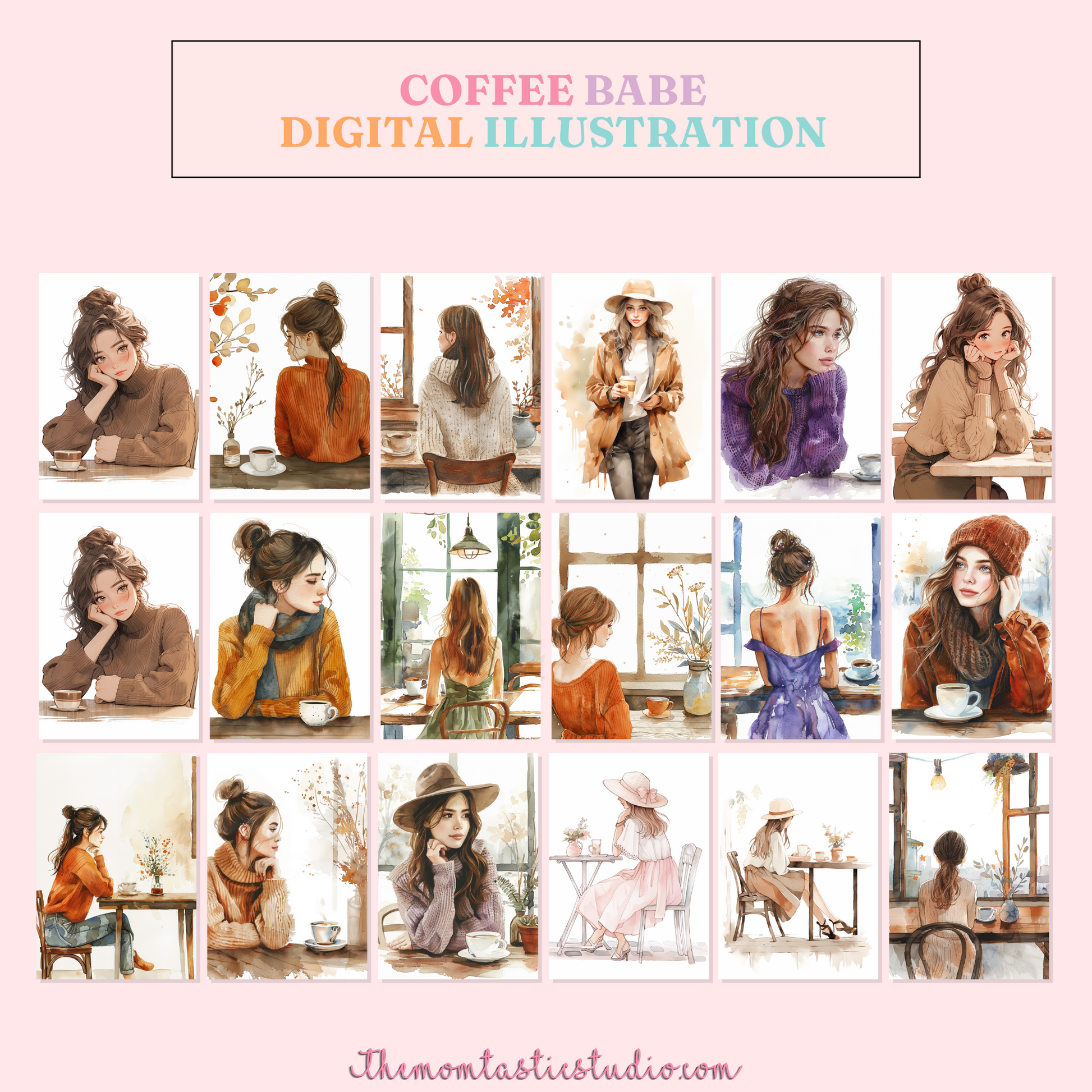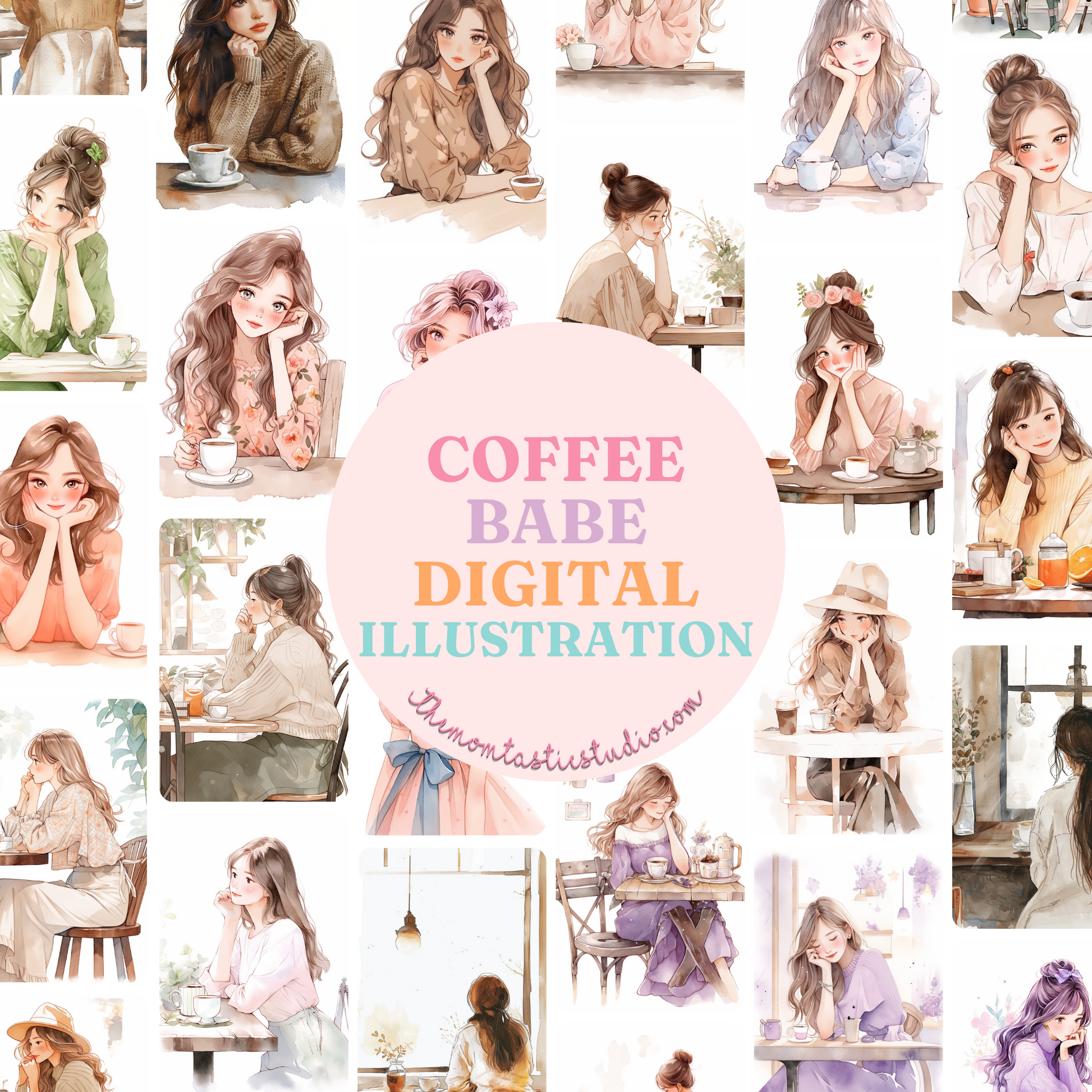 Coffee Babe Digital Illustration – Instant Download – Commercial Use (Copy)