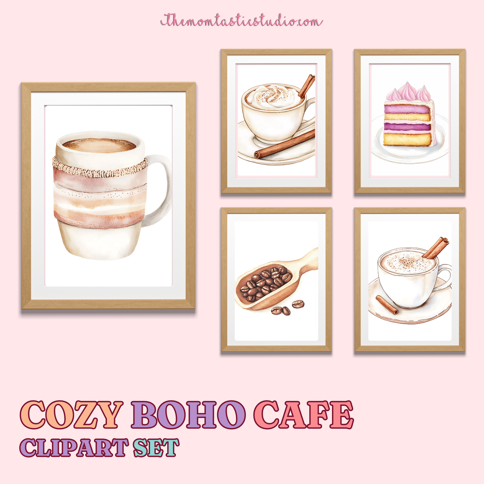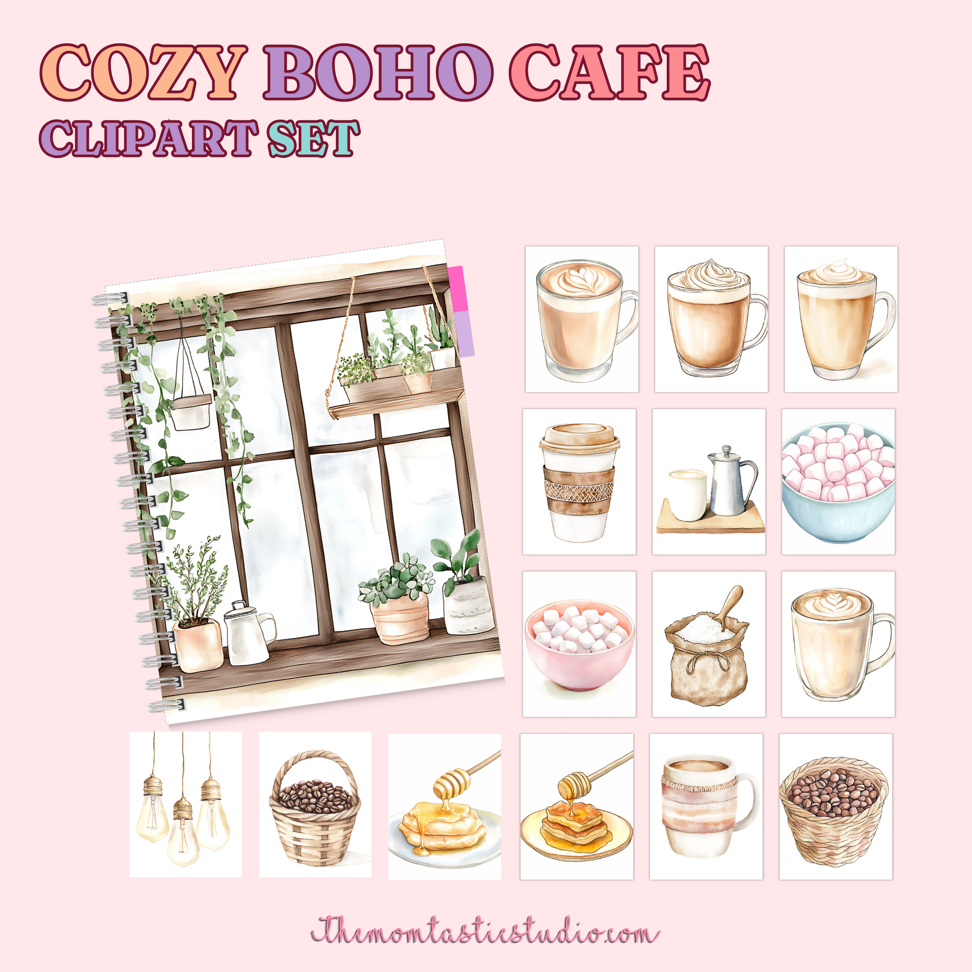 Cozy Boho Cafe Clipart Set – Instant Download – 300 DPI - Commercial Use (Copy)