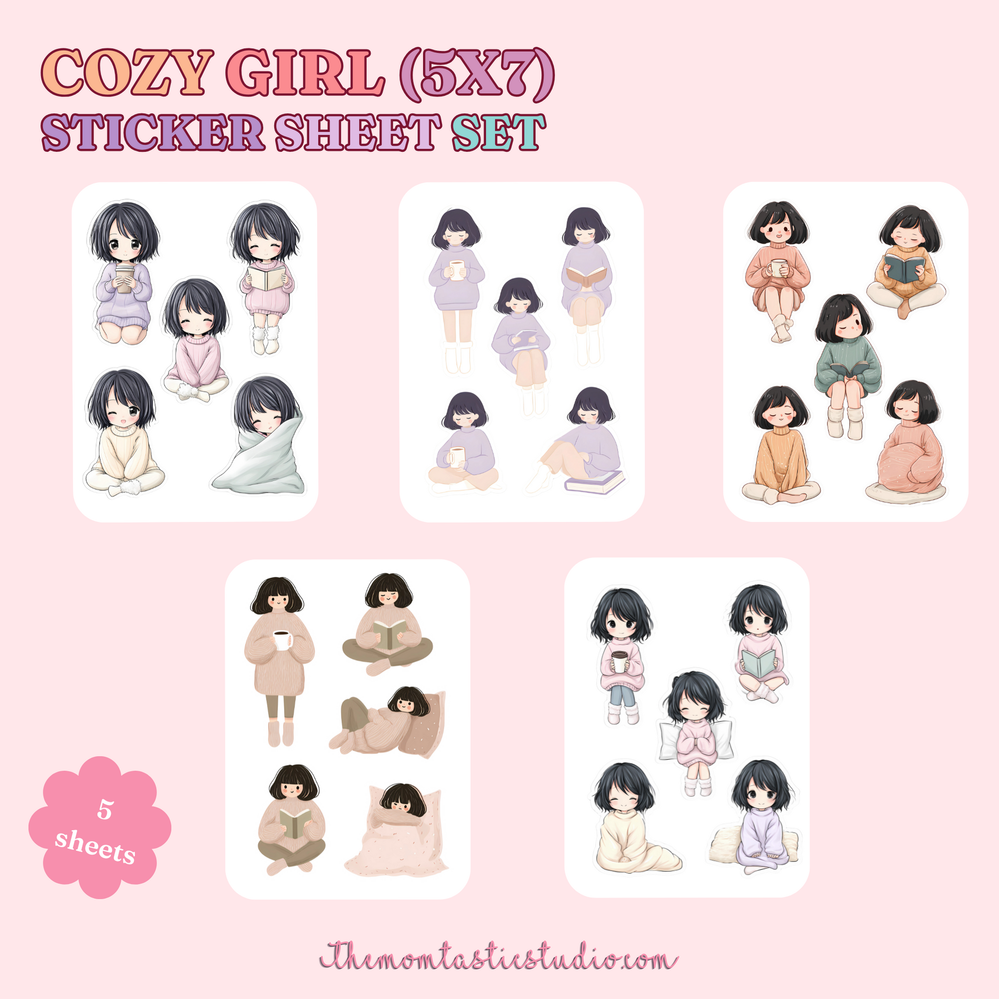 Cozy Girl Sticker Sheet Bundle Printable – Instant Download – 300 DPI - Commercial Use (Transparent PNG)