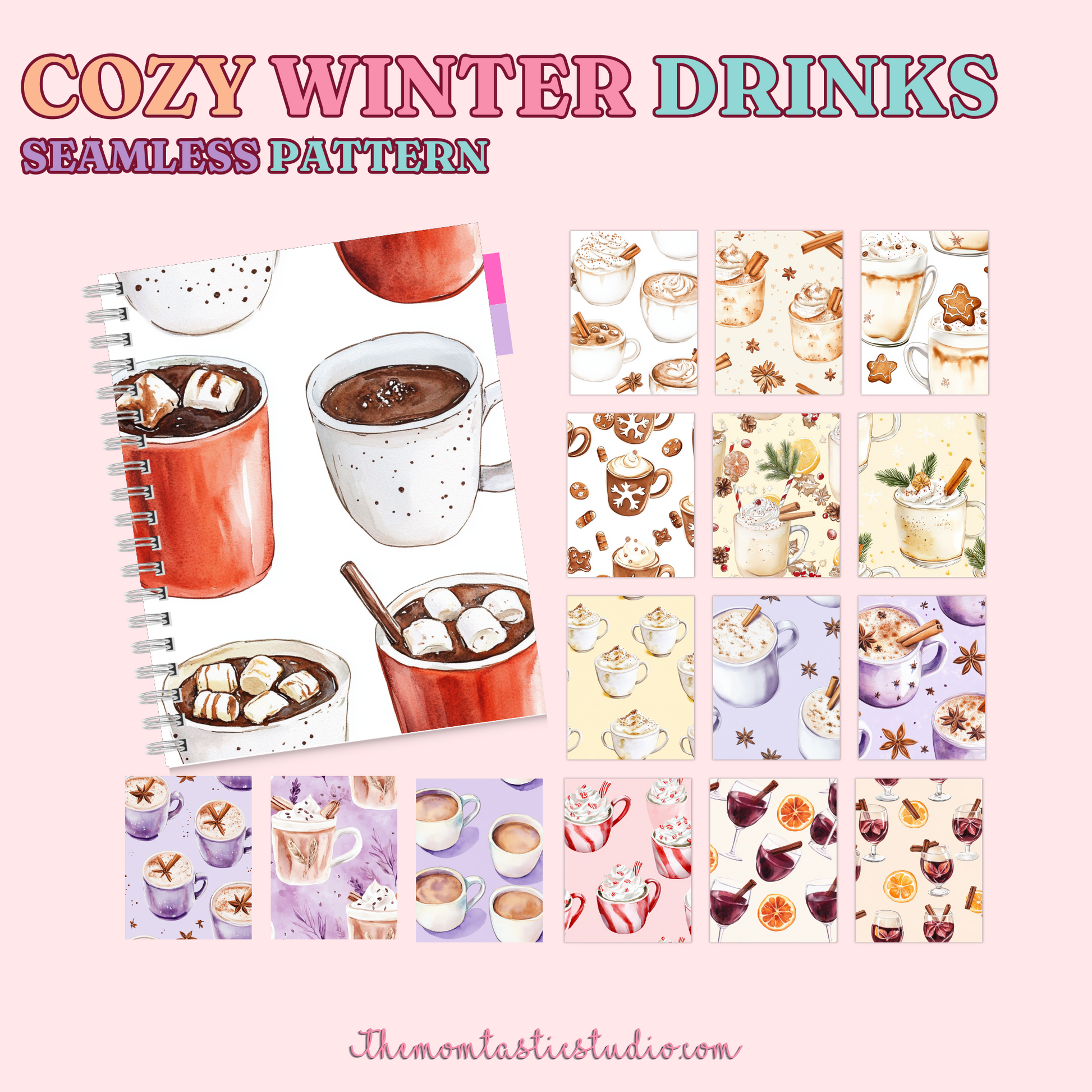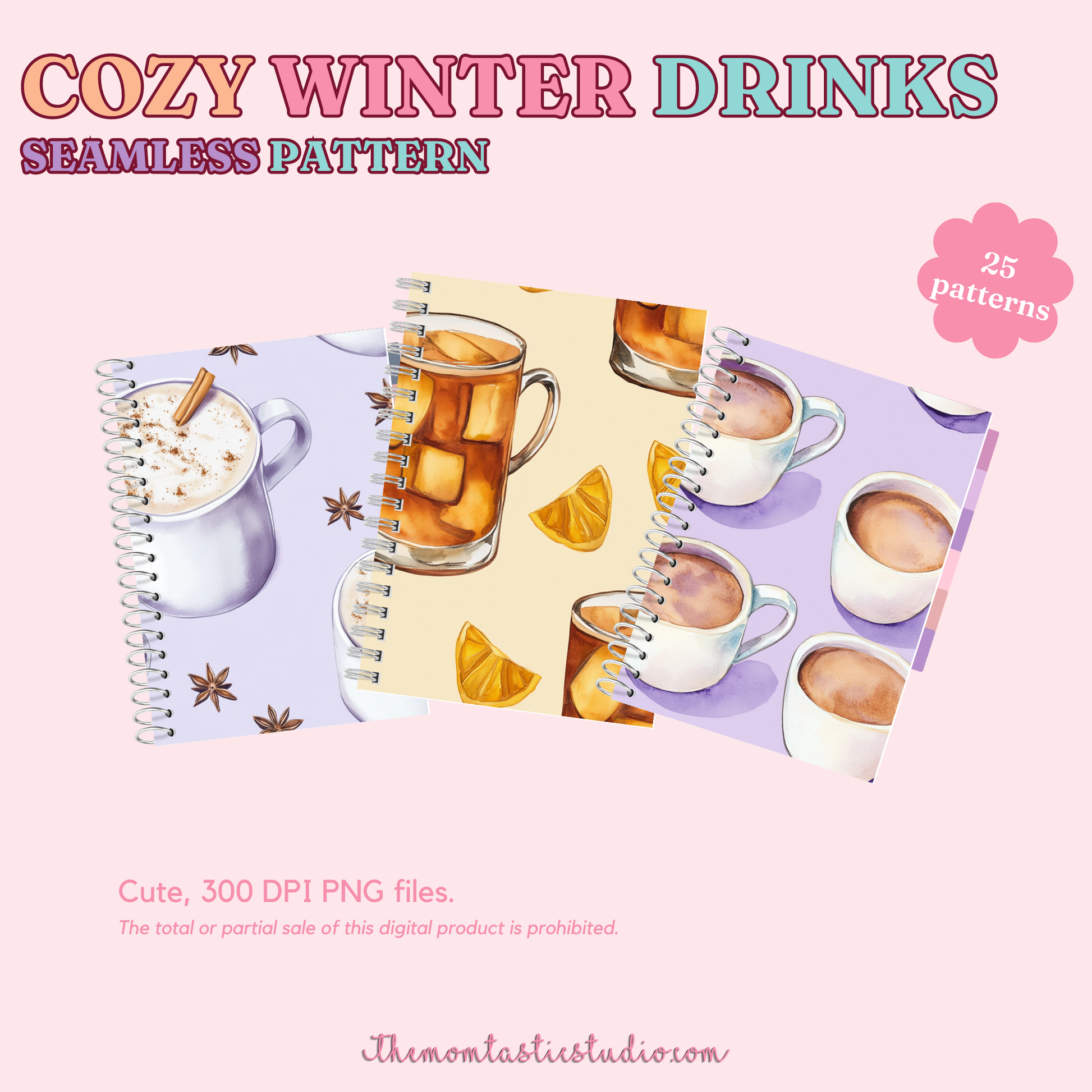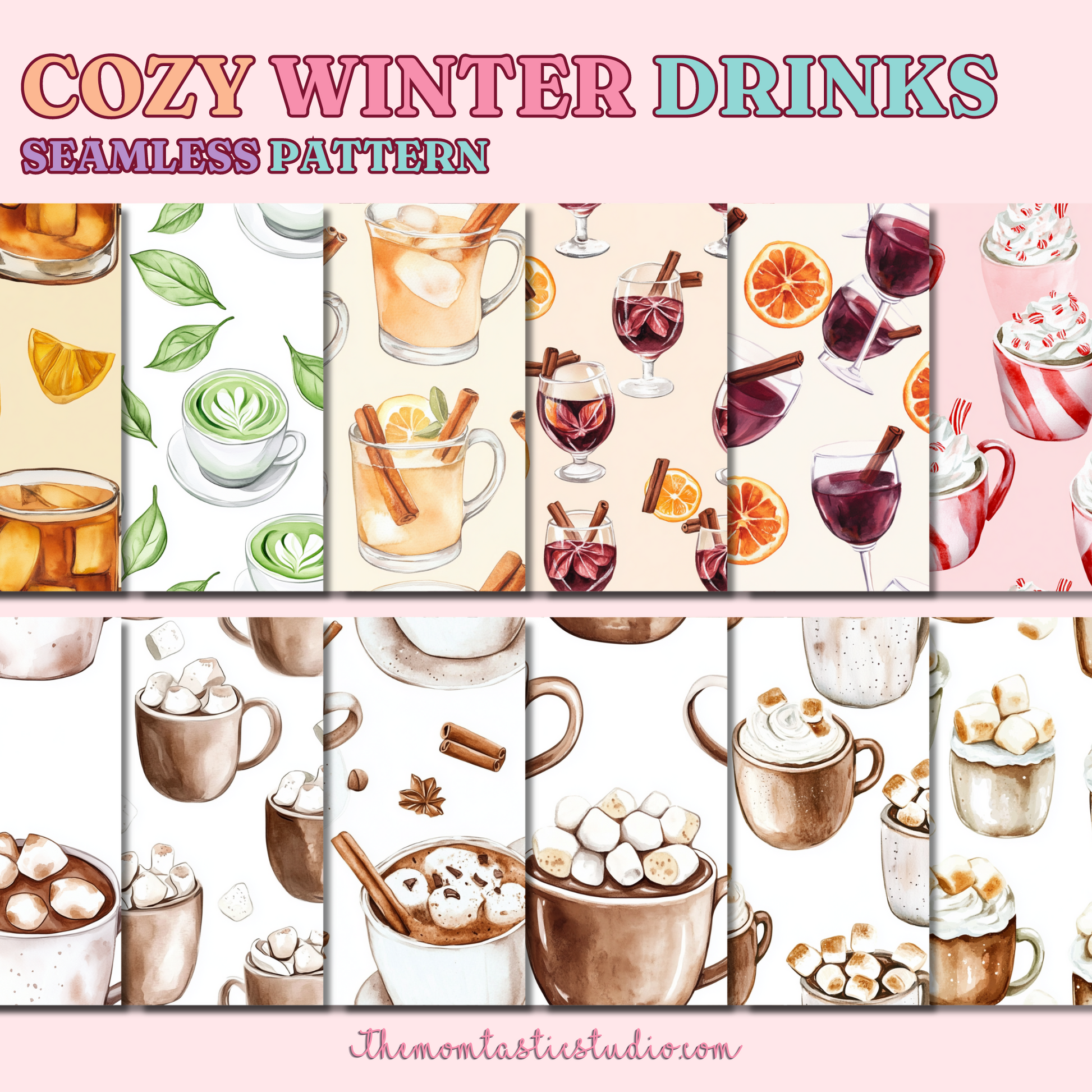 Cozy Winter Drinks Seamless Pattern for Commercial Use, Digital Paper - 300 DPI