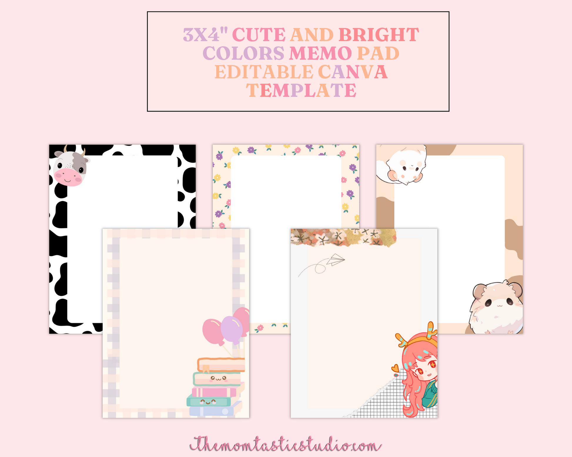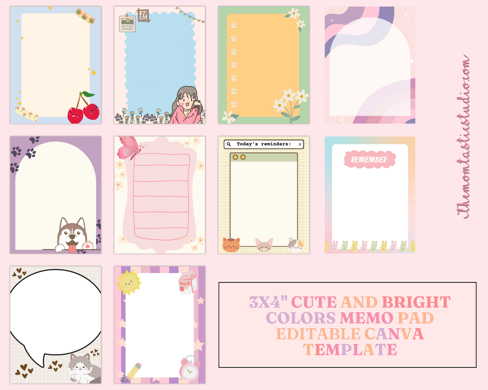 Cute and Bright Colors (3x4") Notepad Canva Template - 30 Pages - Commercial Use