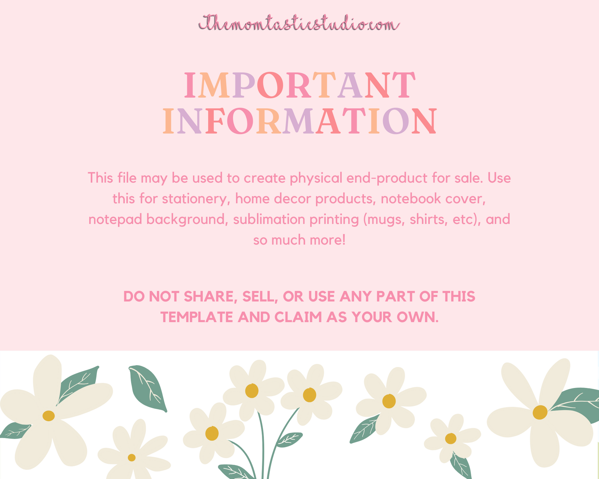 This file may be used to create physical end-product for sale. Use this for stationery, home decor products, notebook cover, notepad background, sublimation printing (mugs, shirts, etc), and so much more! Art must not be claimed as own or the digital file be shared, resold, or altered in any way.