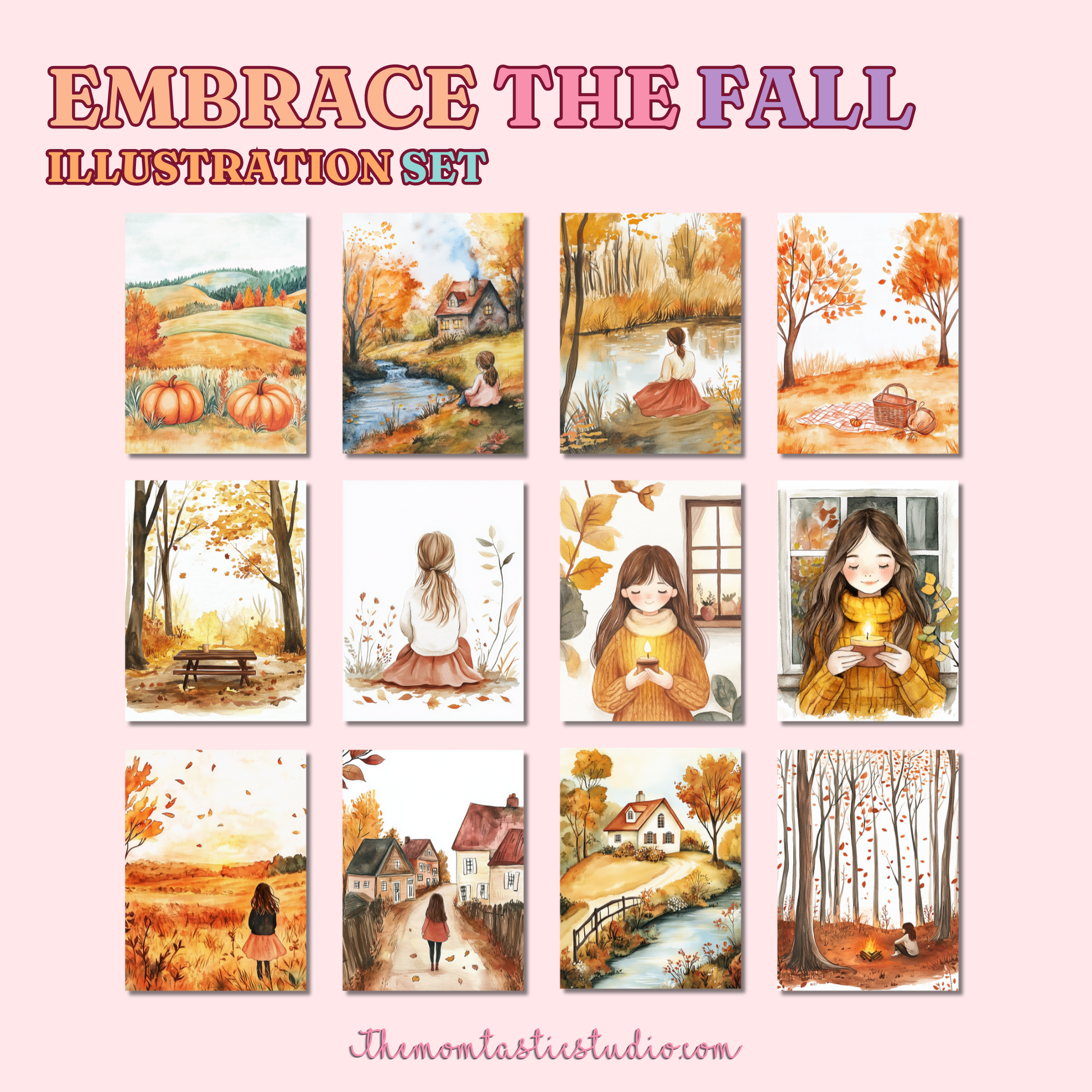 Embrace the Fall Digital Illustration Set - 300 DPI – Instant Download – Commercial Use