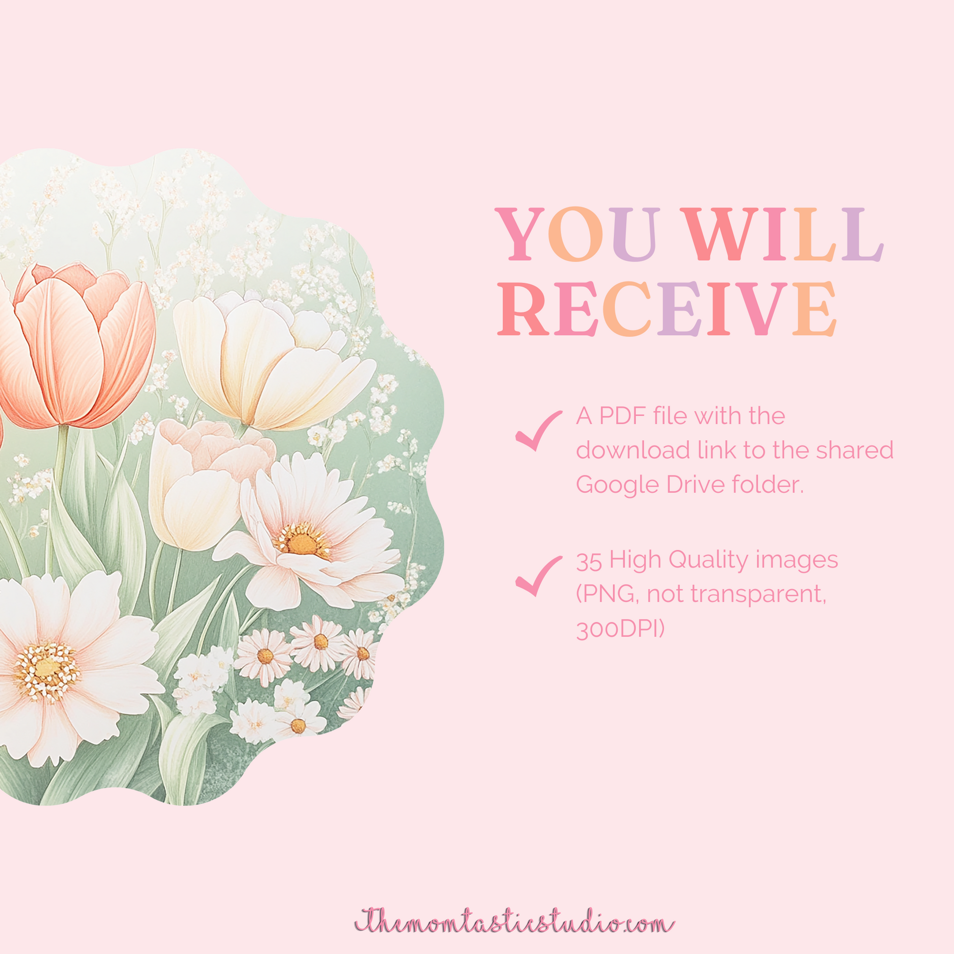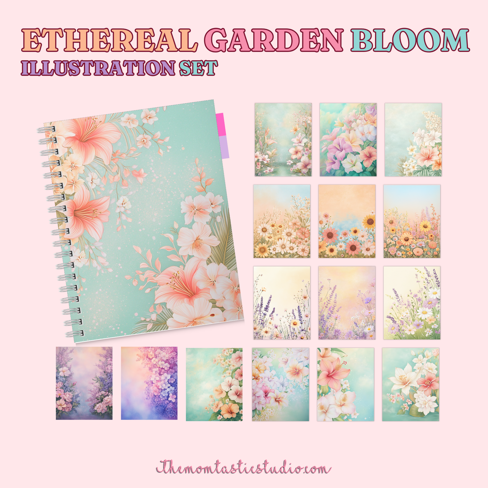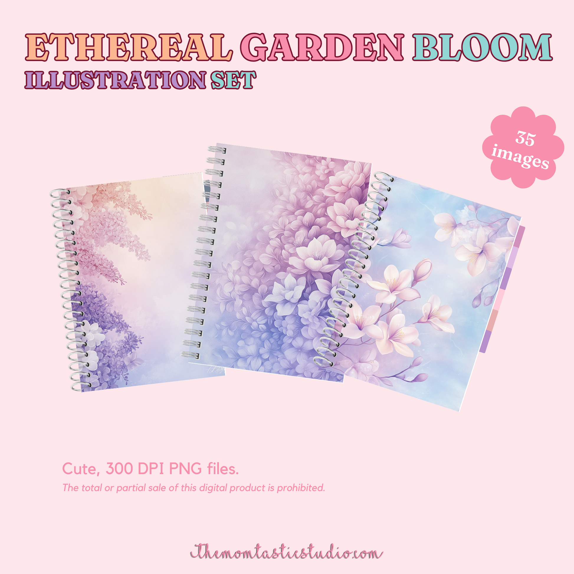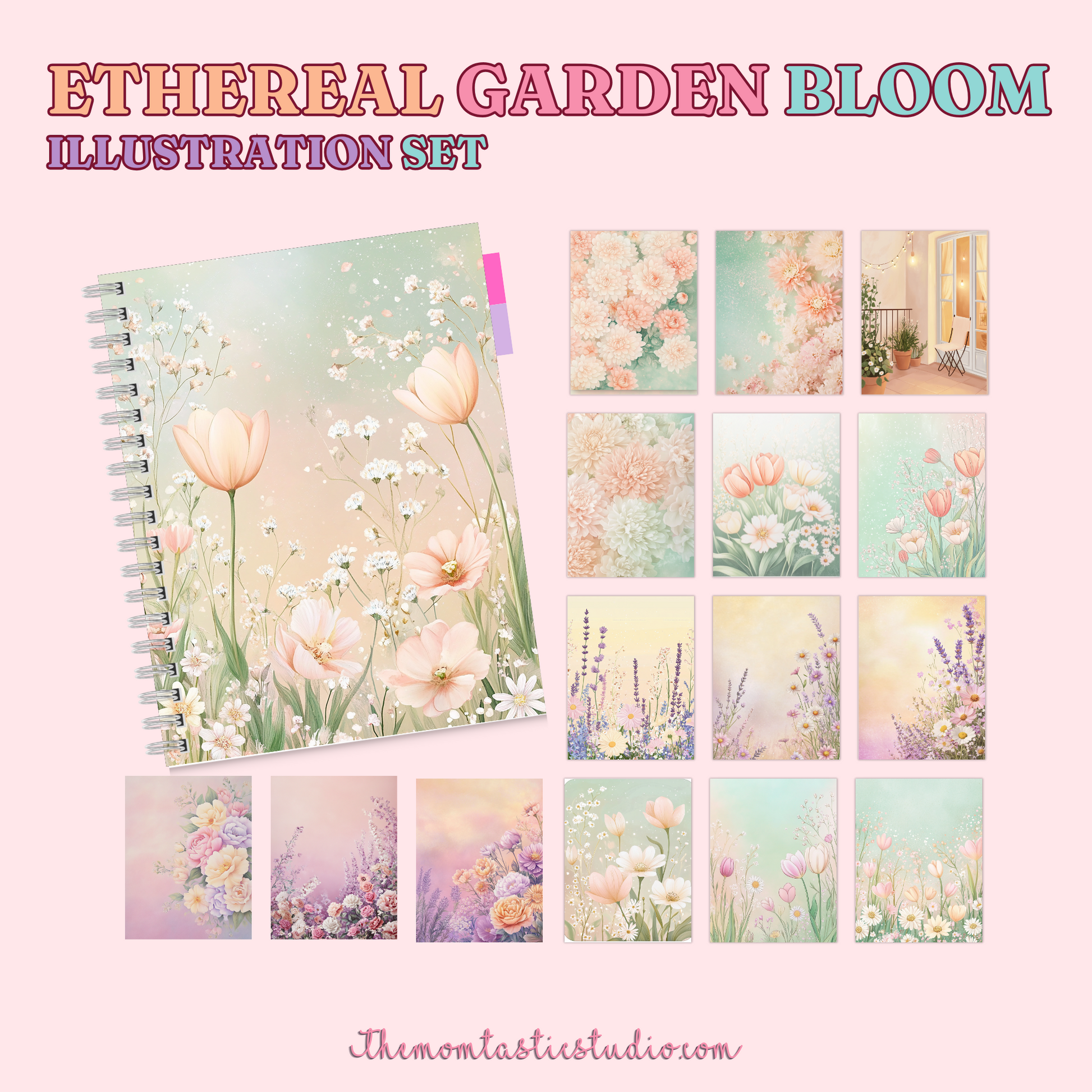 Ethereal Garden Bloom Illustration Set - 300 DPI – Instant Download – Commercial Use