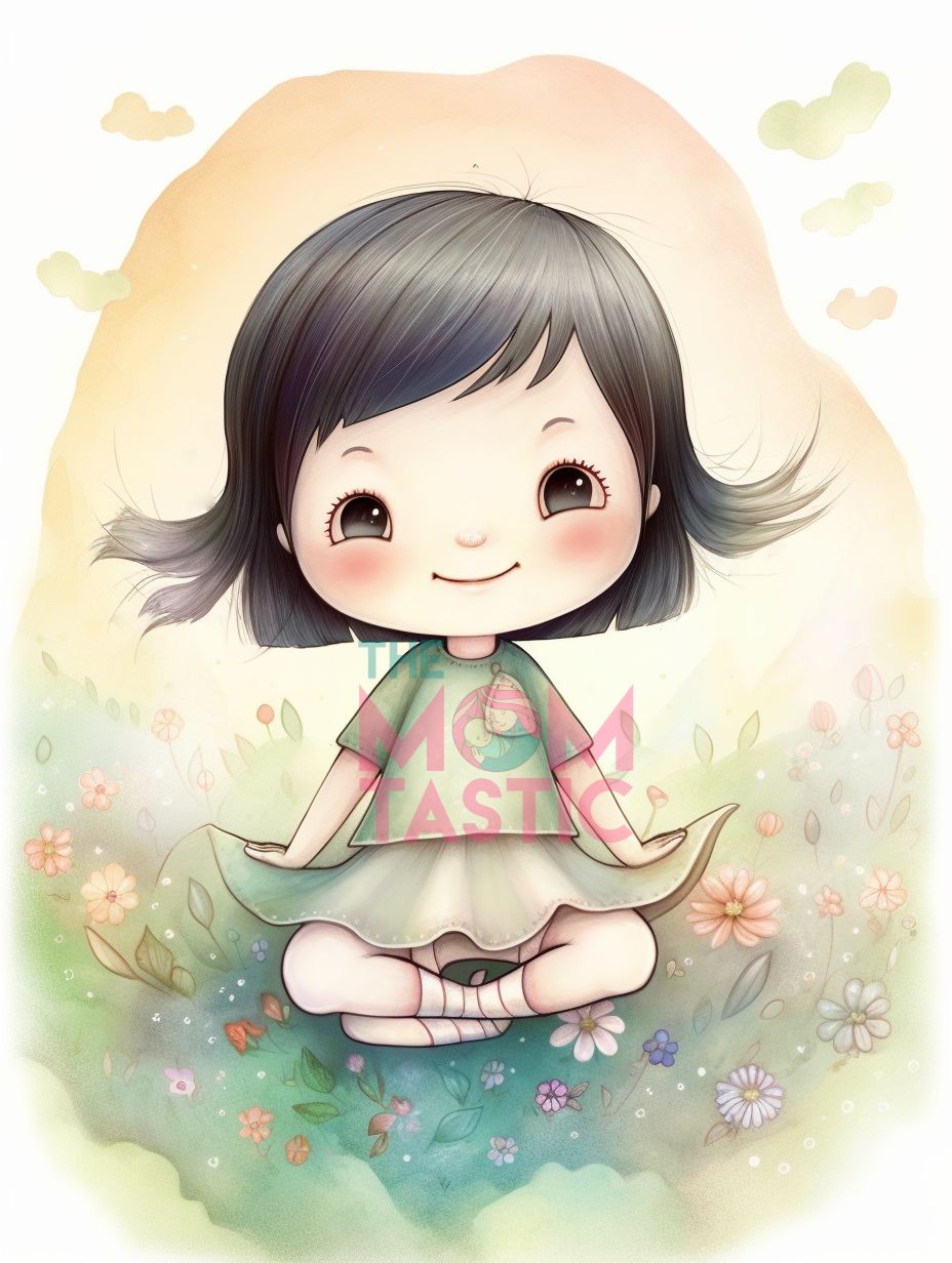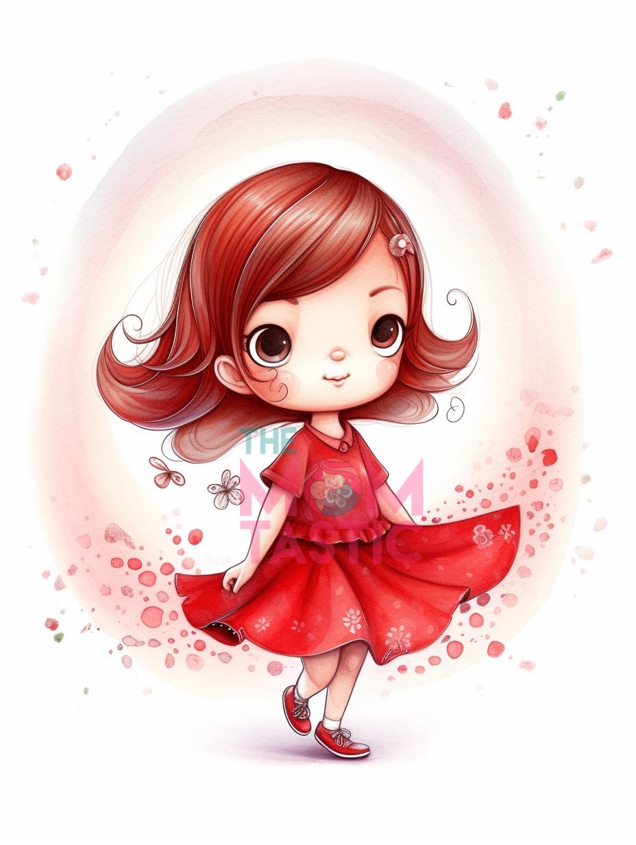 Fairytale Girls Cute Chibi Illustration - Watercolor - Pastel Background - Digital Illustration - for Commercial Use
