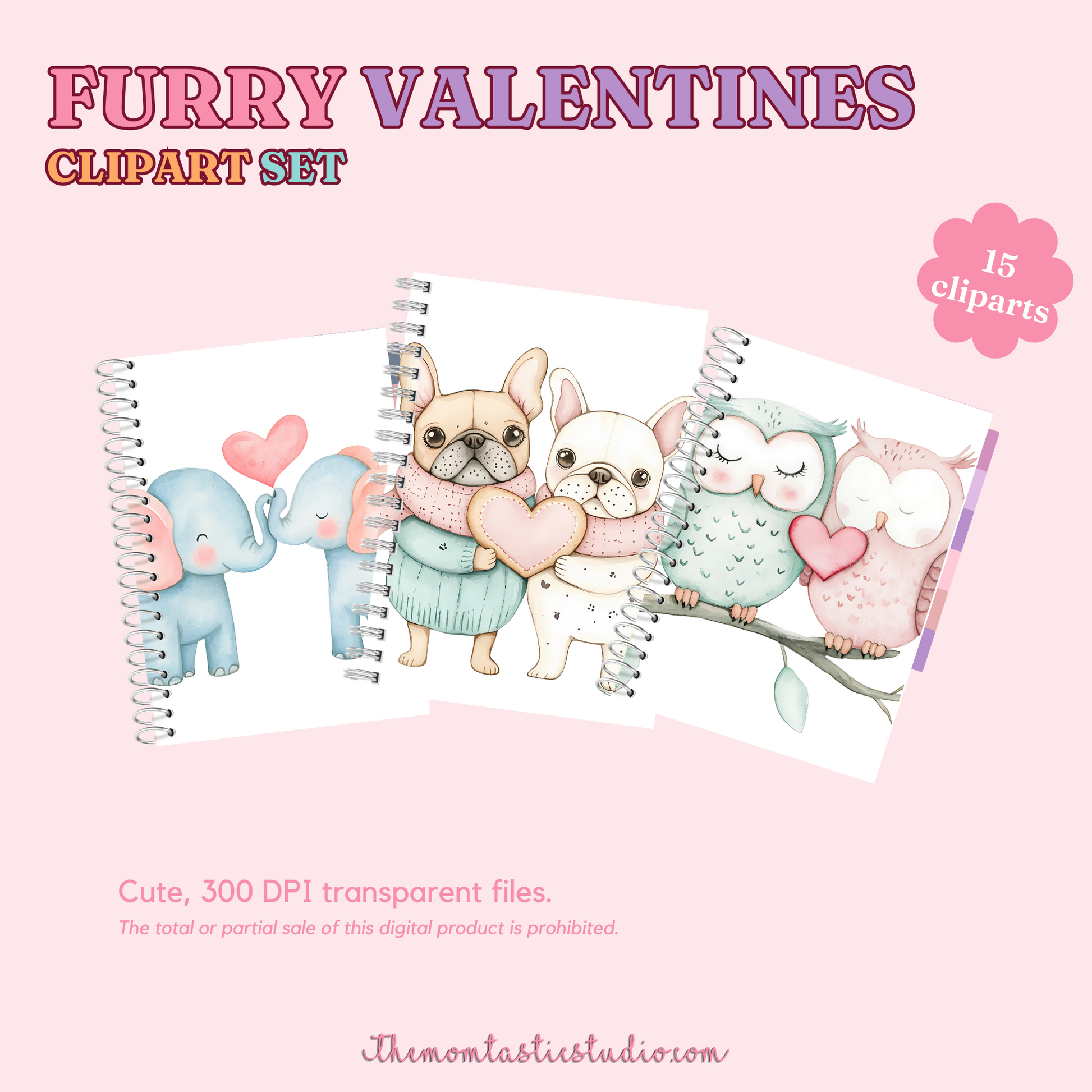 Furry Valentines Clipart Set - 300 DPI – Instant Download – Commercial Use (Transparent Files)