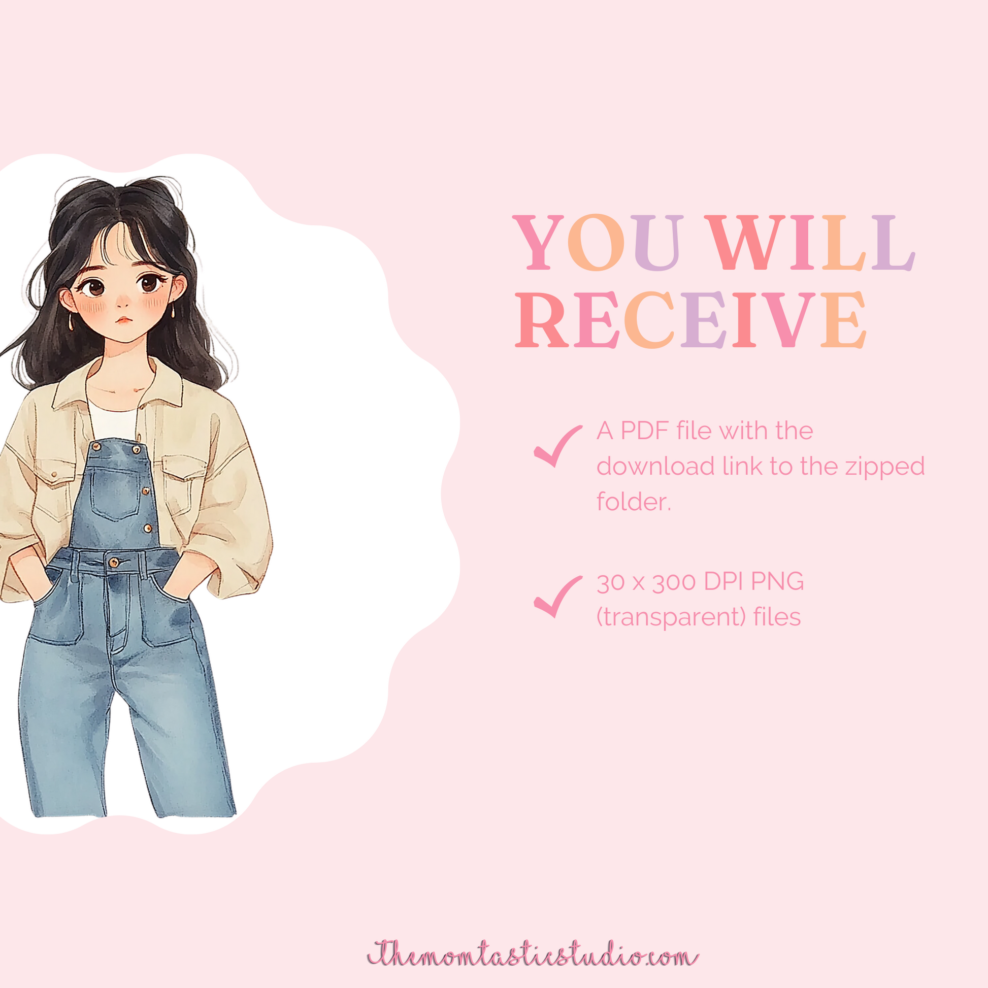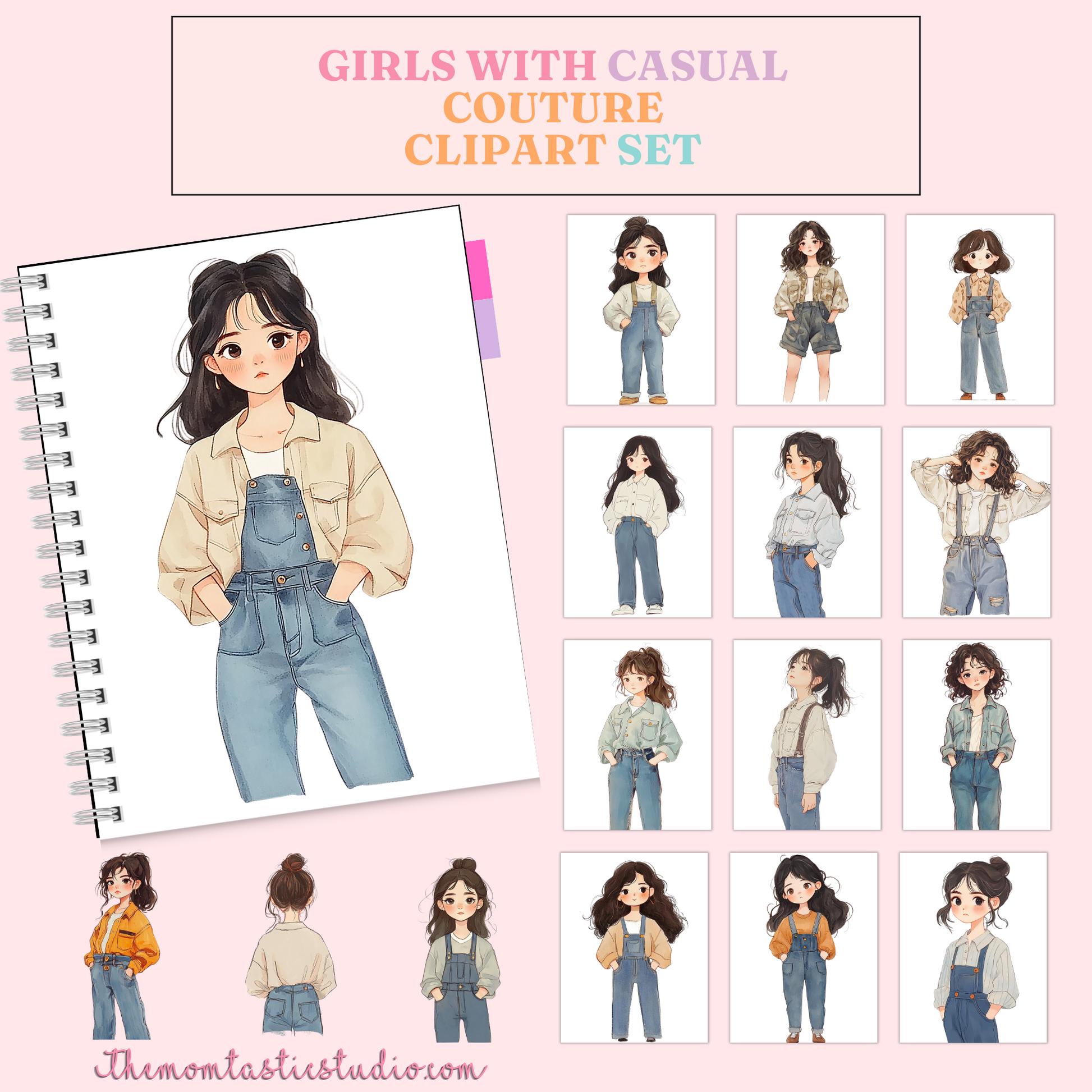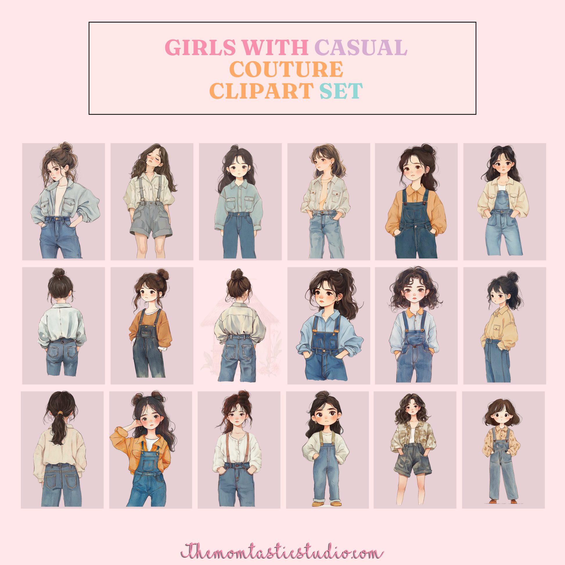 Girls with Casual Couture – Clipart Set - Planner Sticker - High-Quality PNG - Transparent Background - Commercial Use