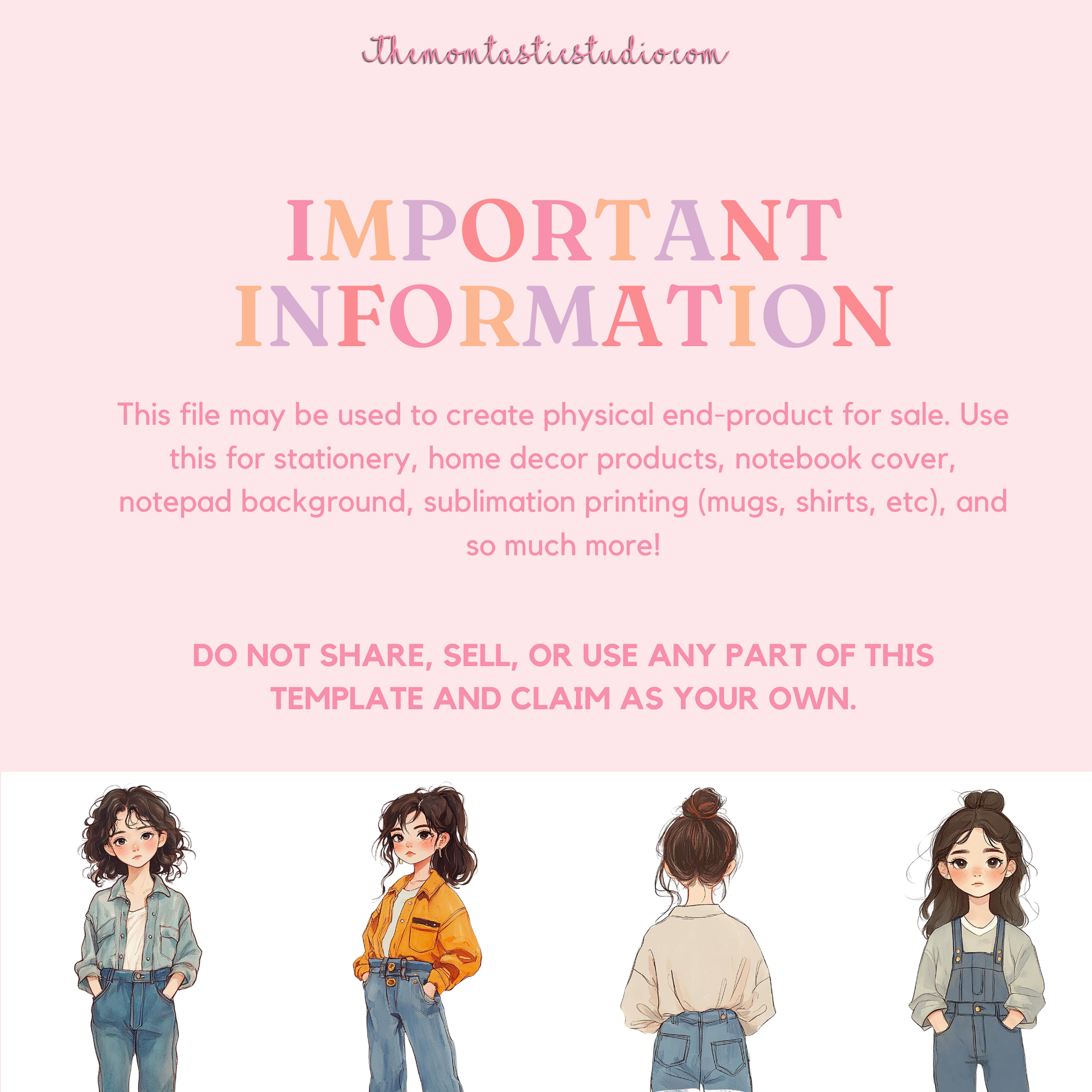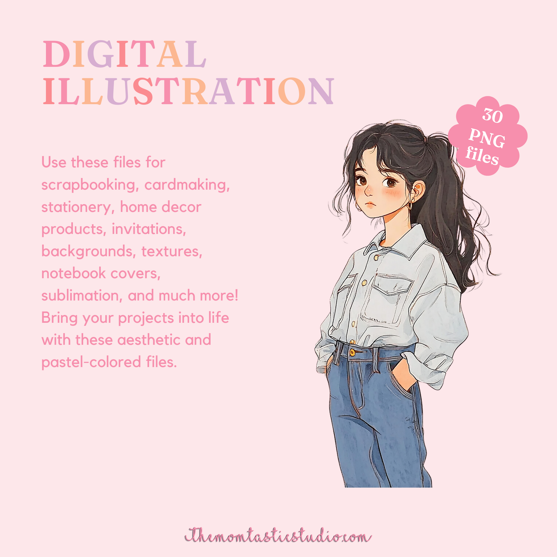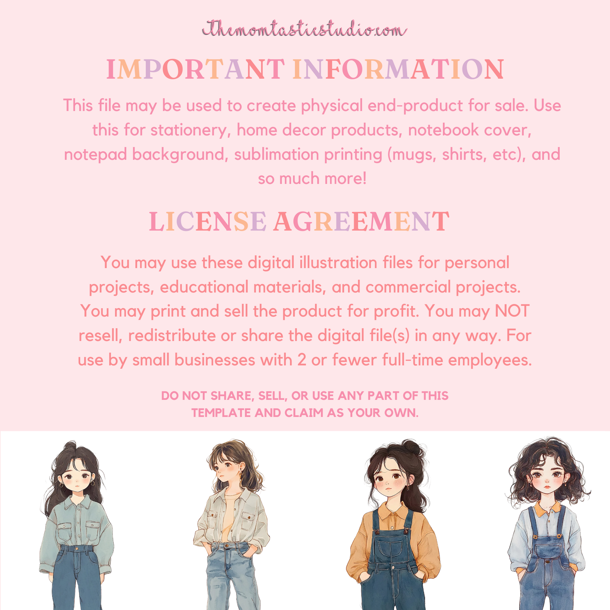Girls with Casual Couture – Clipart Set - Planner Sticker - High-Quality PNG - Transparent Background - Commercial Use