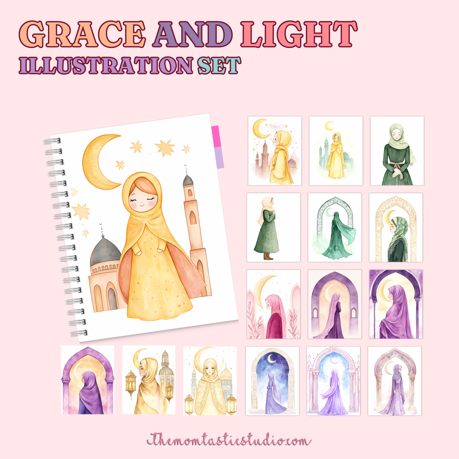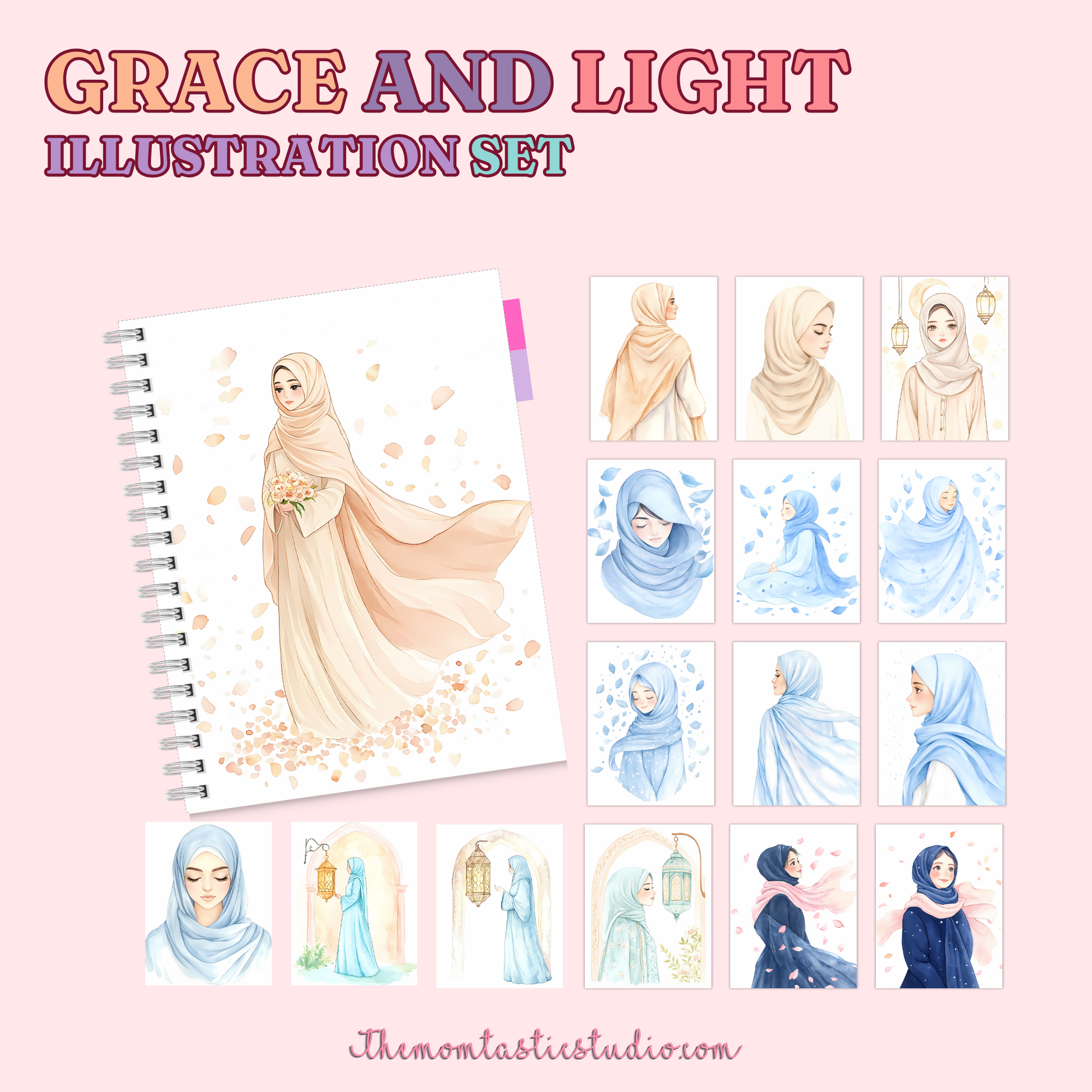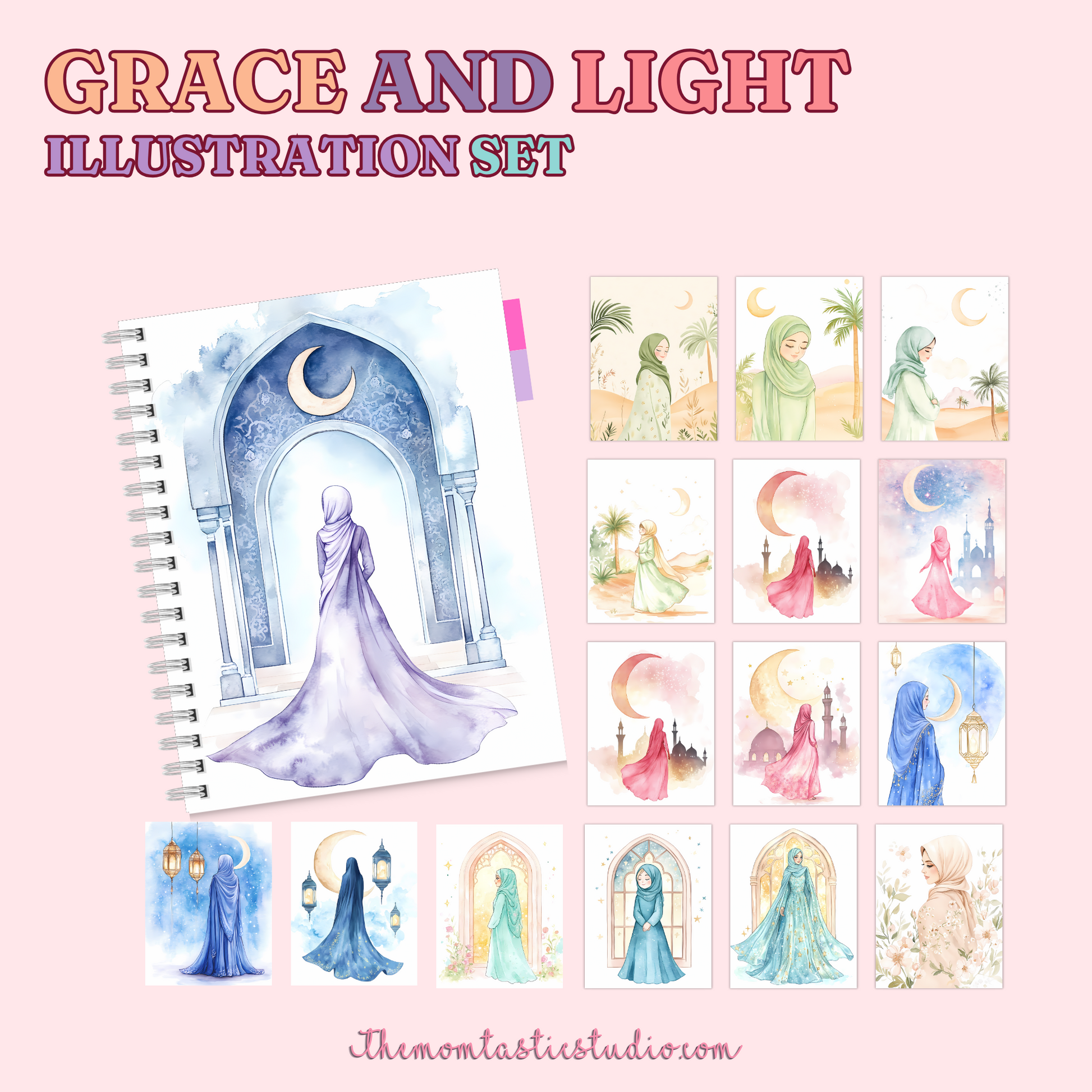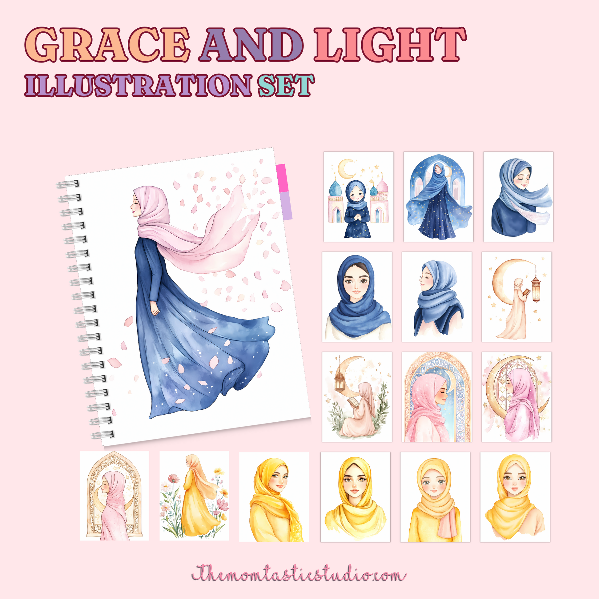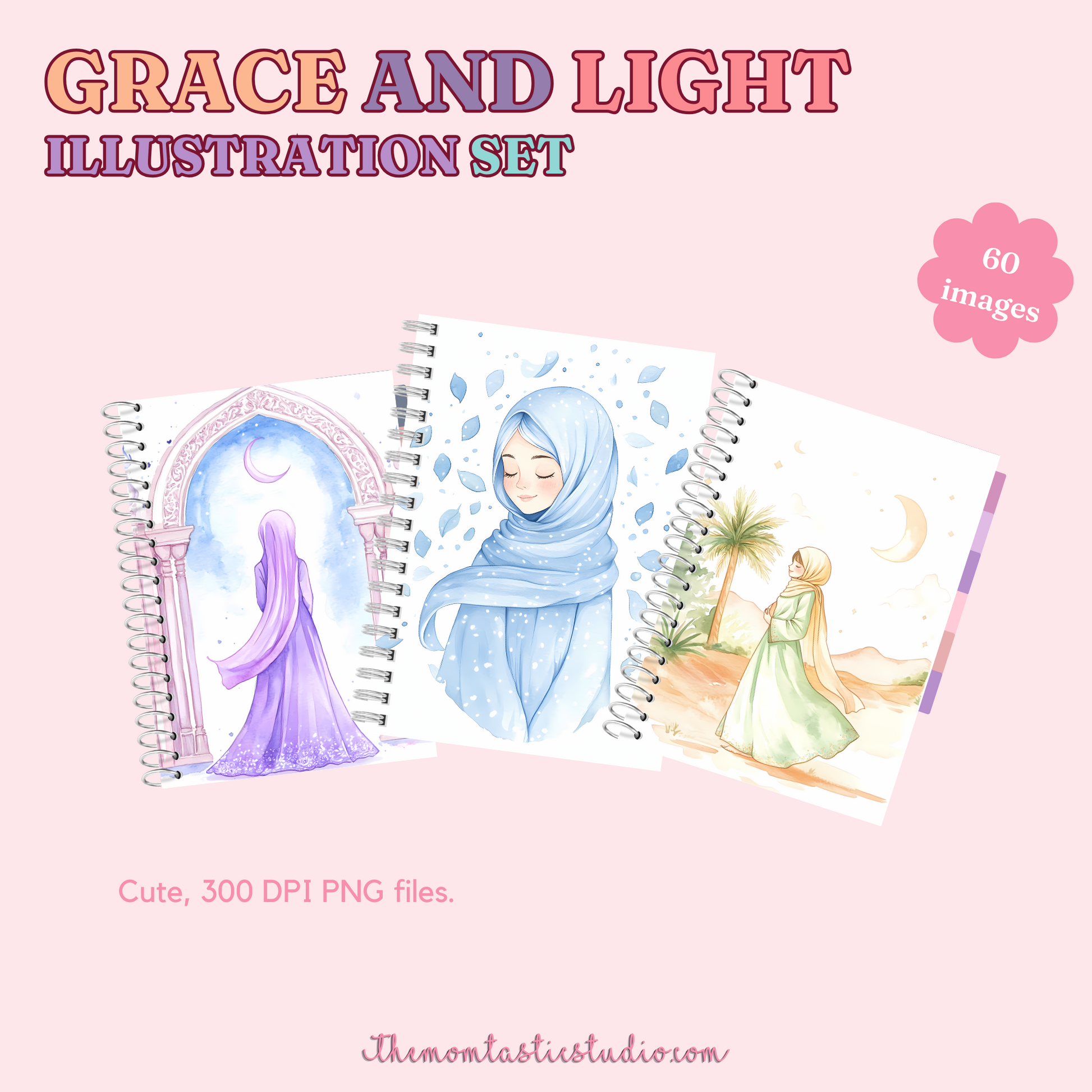 Grace and Light Illustration Set - 300 DPI – Instant Download – Commercial Use