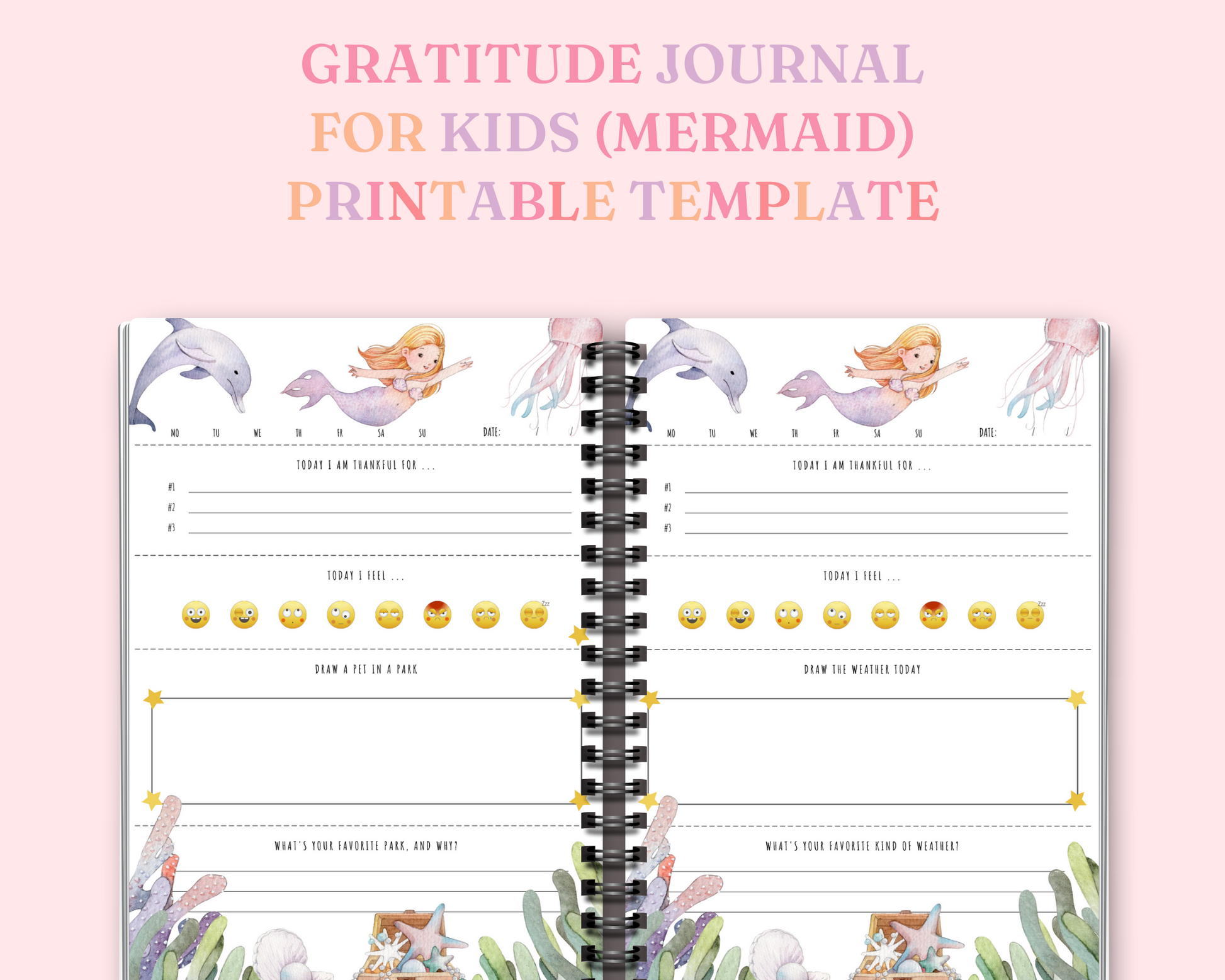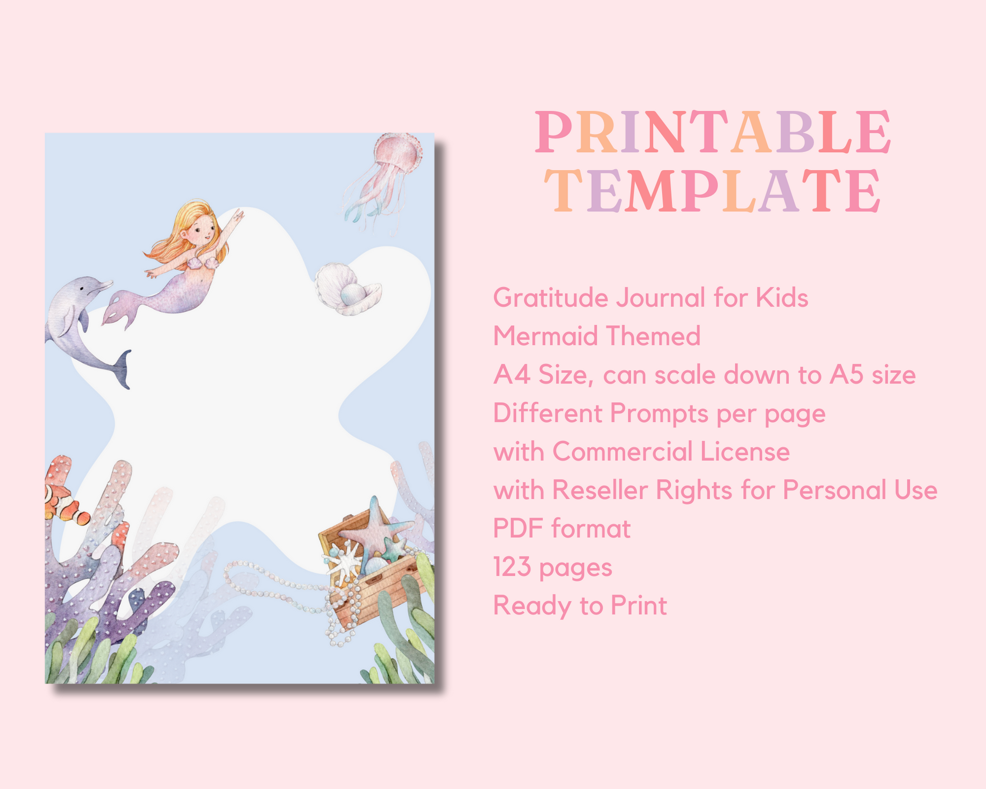 Gratitude Journal for Kids - Mermaid - Printable Template - A4 - PDF File - Commercial License - Reseller Rights