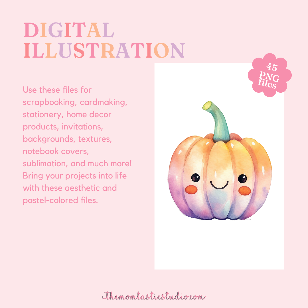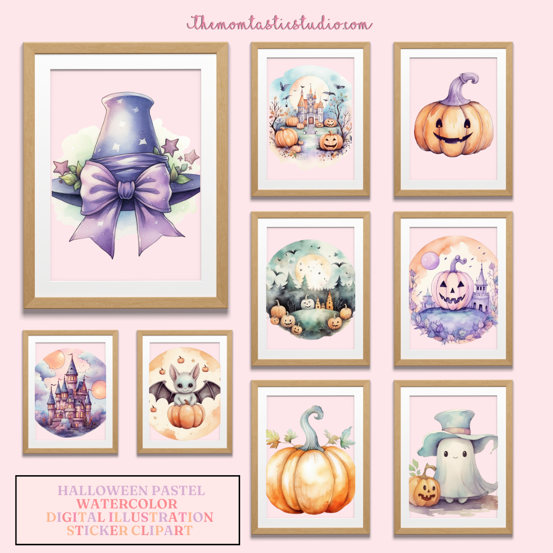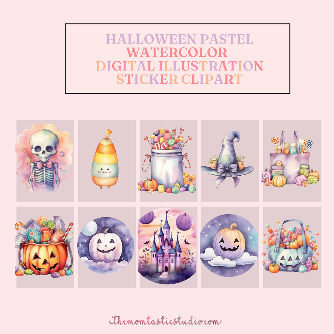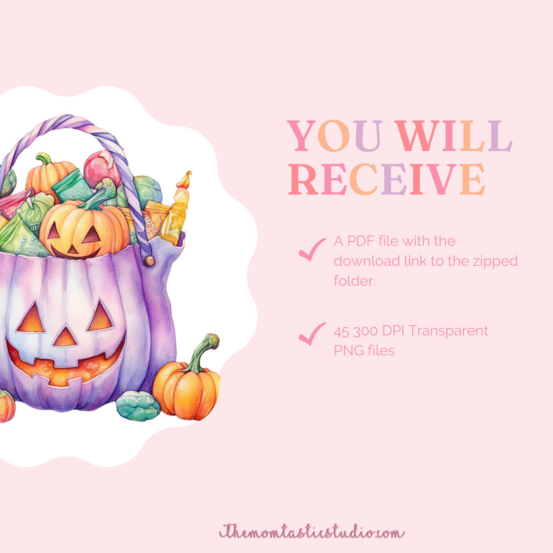 Halloween Pastel Watercolor Cliparts – High-Quality PNG - Transparent Background - Commercial Use