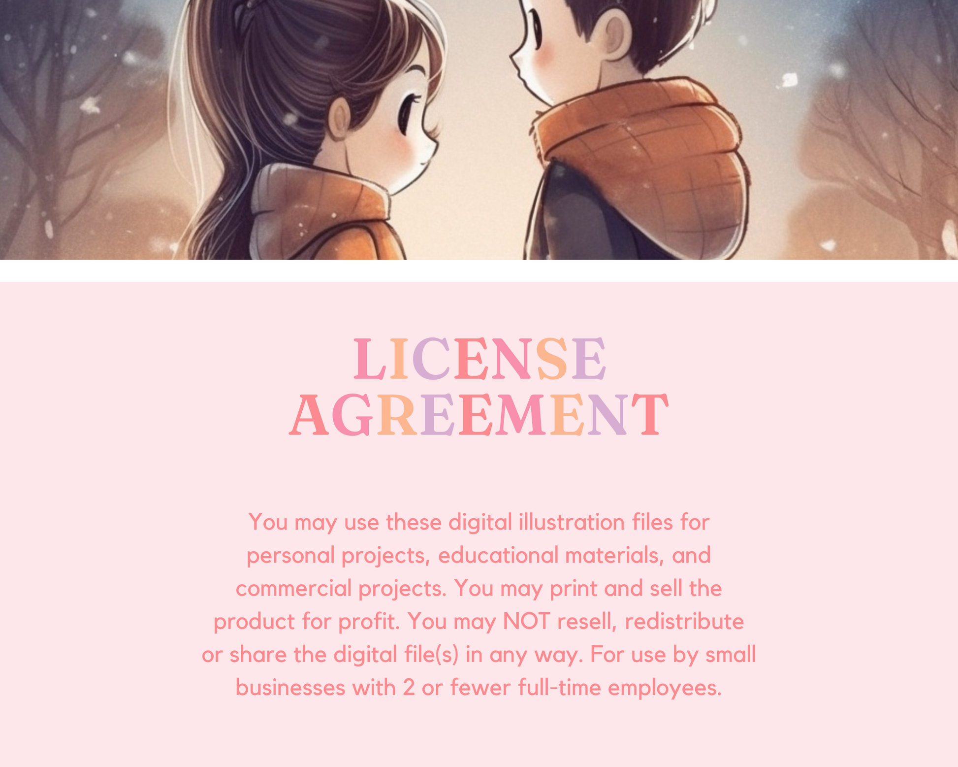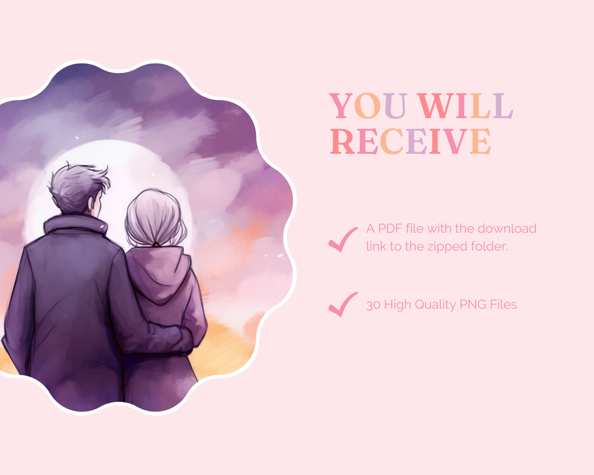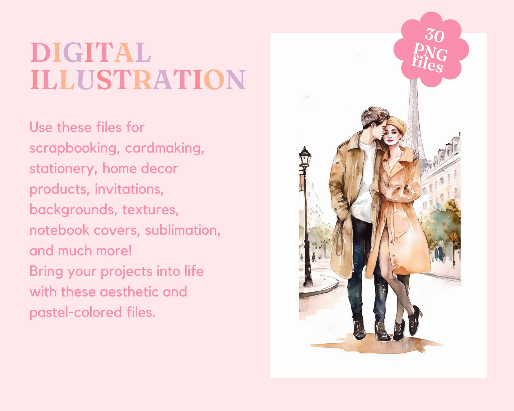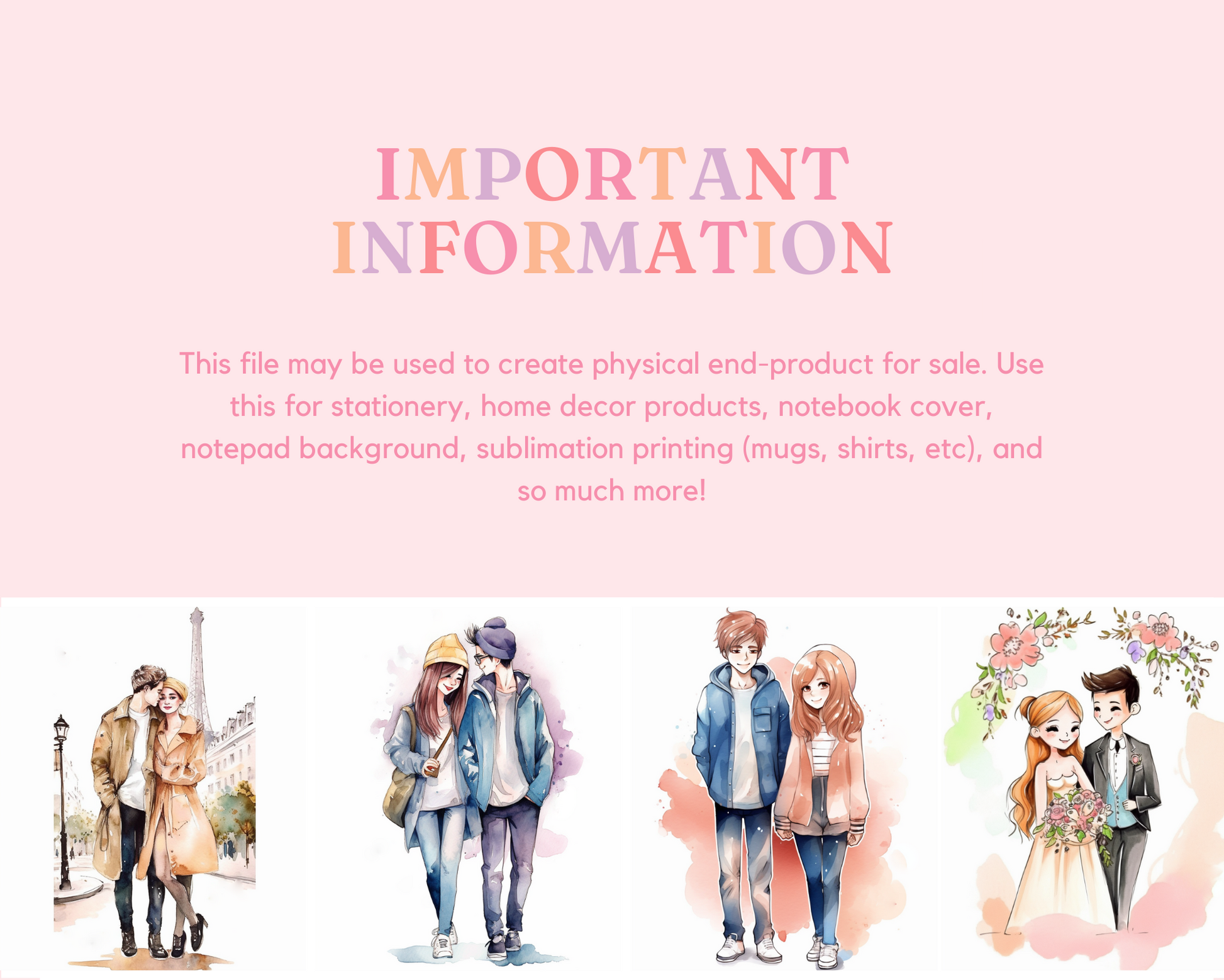 Him and Her Beautiful Watercolor Digital Illustration - Commercial Use - Pretty - Instant Download