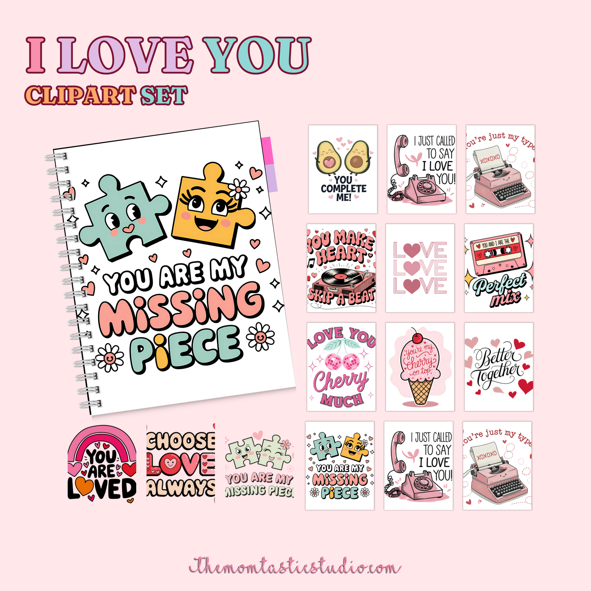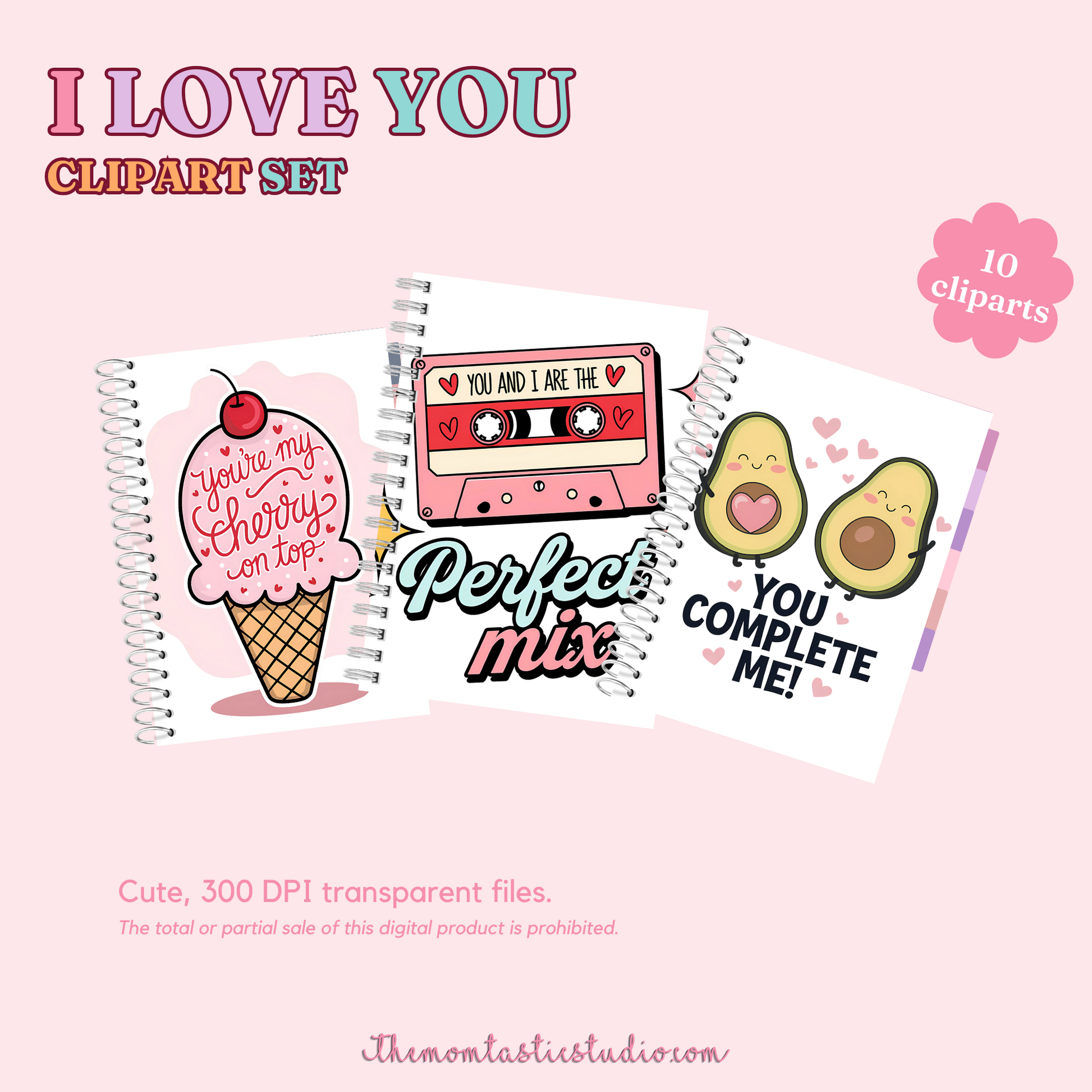 I Love You Clipart Set - 300 DPI – Instant Download – Commercial Use (Transparent Files)