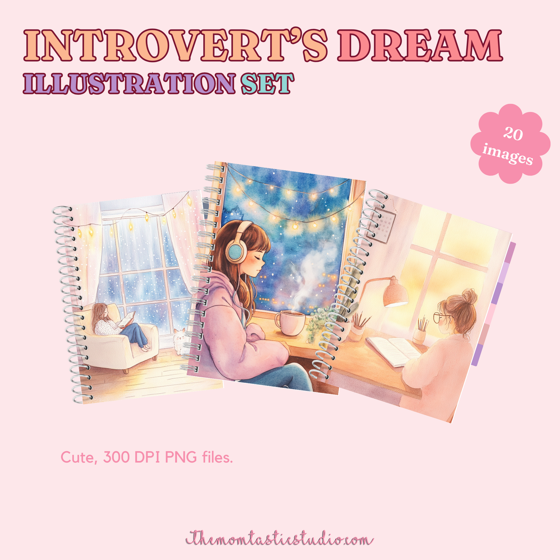 Introvert's Dream Illustration Set - 300 DPI – Instant Download – Commercial Use