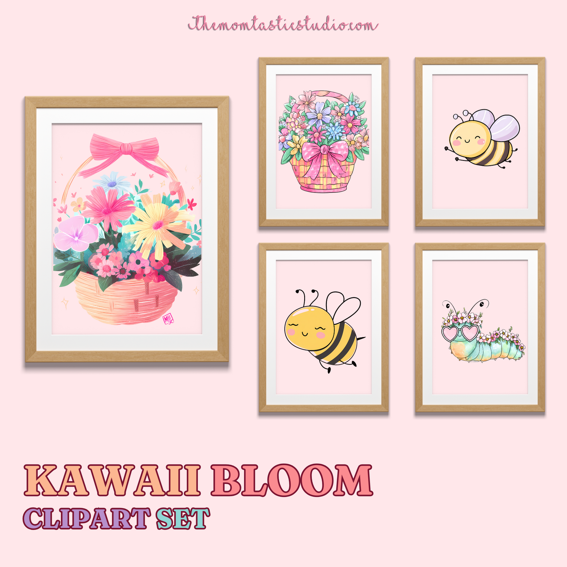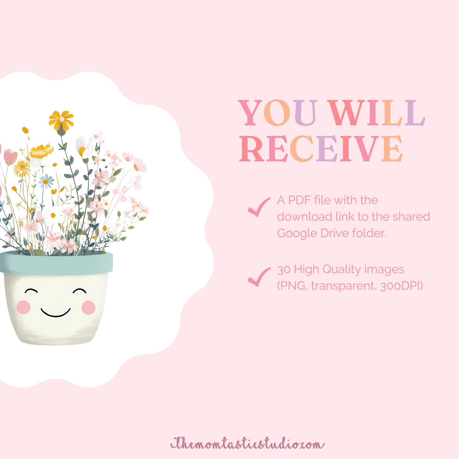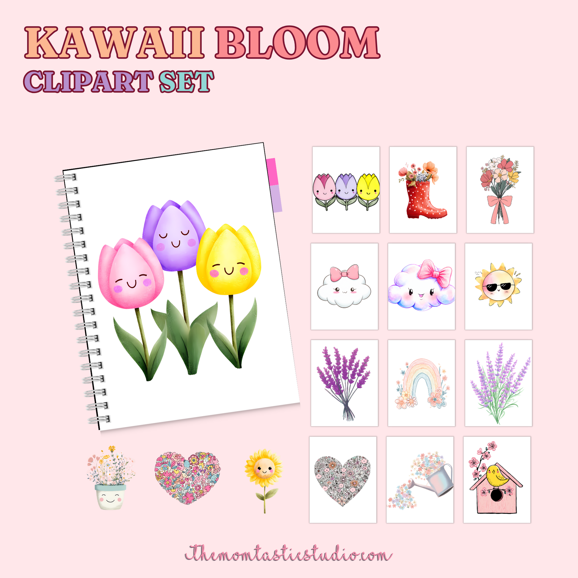 Kawaii Bloom Clipart Set – Instant Download – 300 DPI - Commercial Use (Transparent PNG)