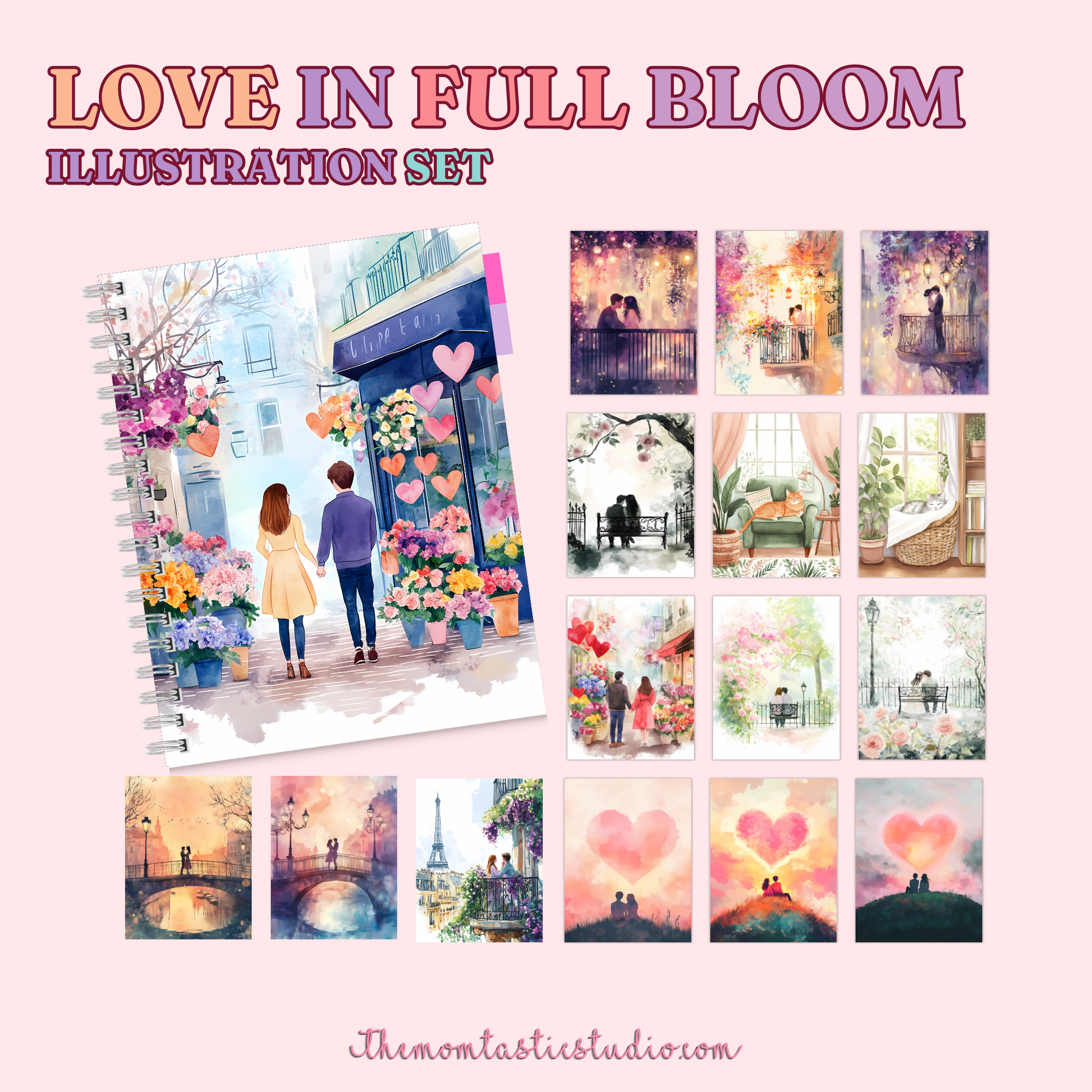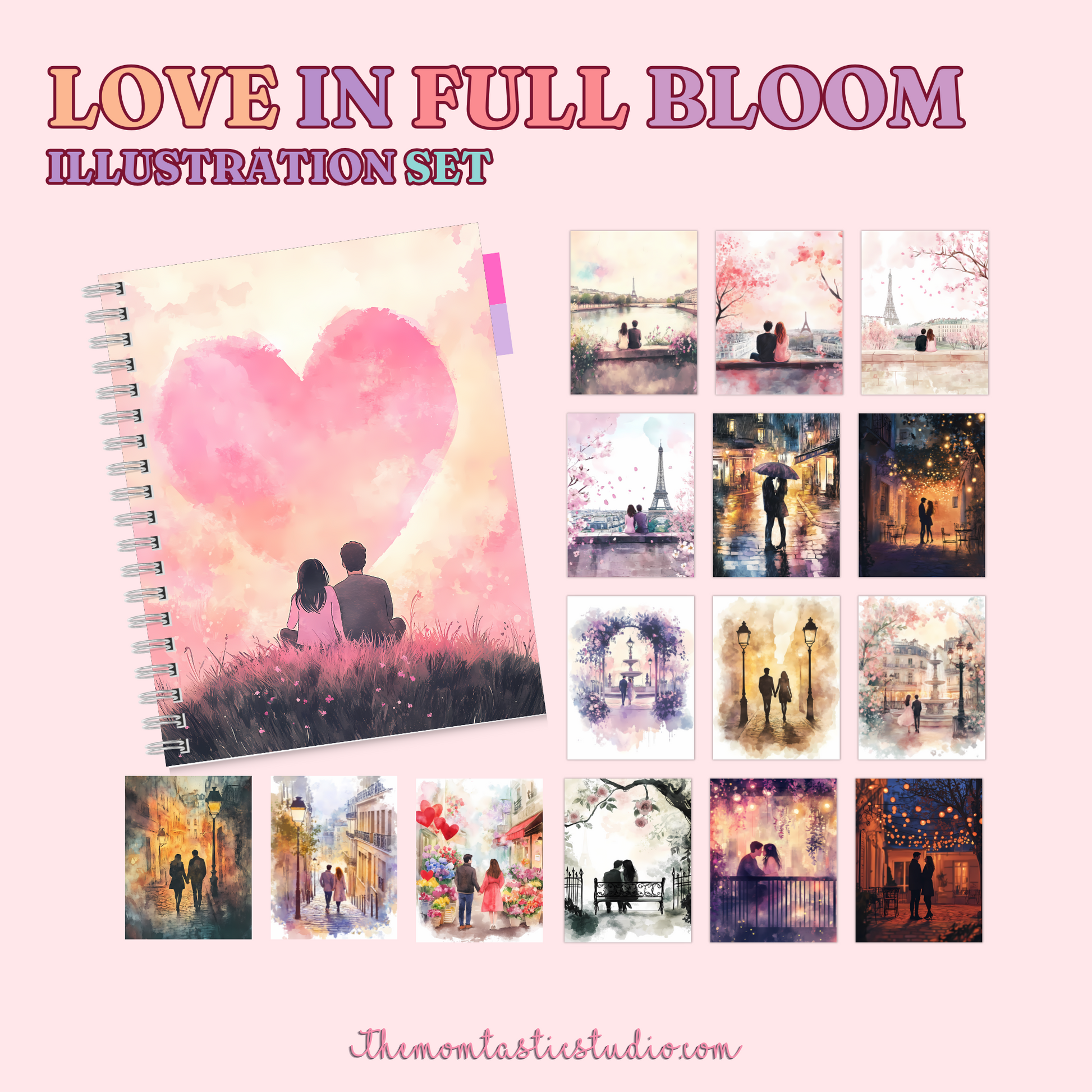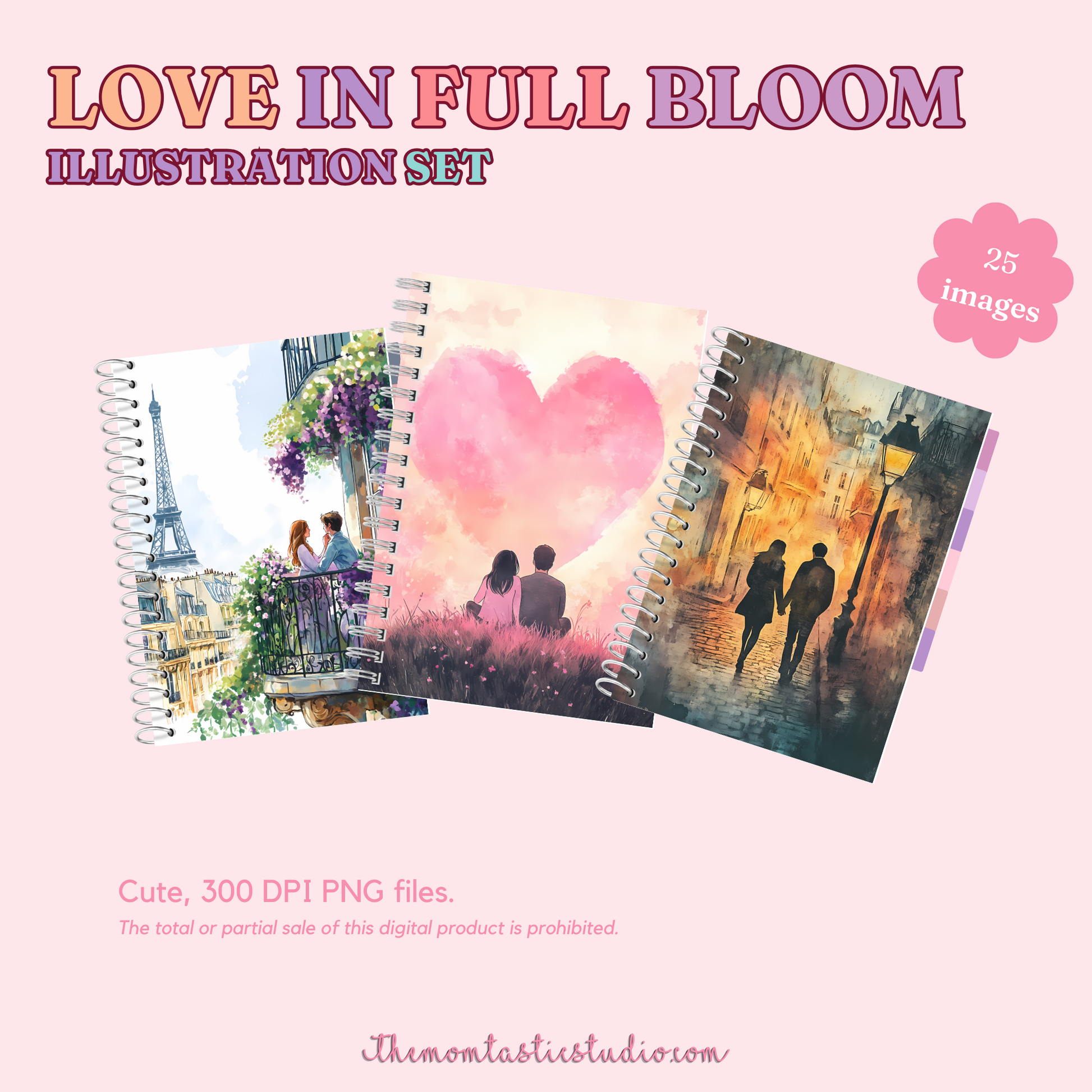Love in Full Bloom Illustration Set - 300 DPI – Instant Download – Commercial Use