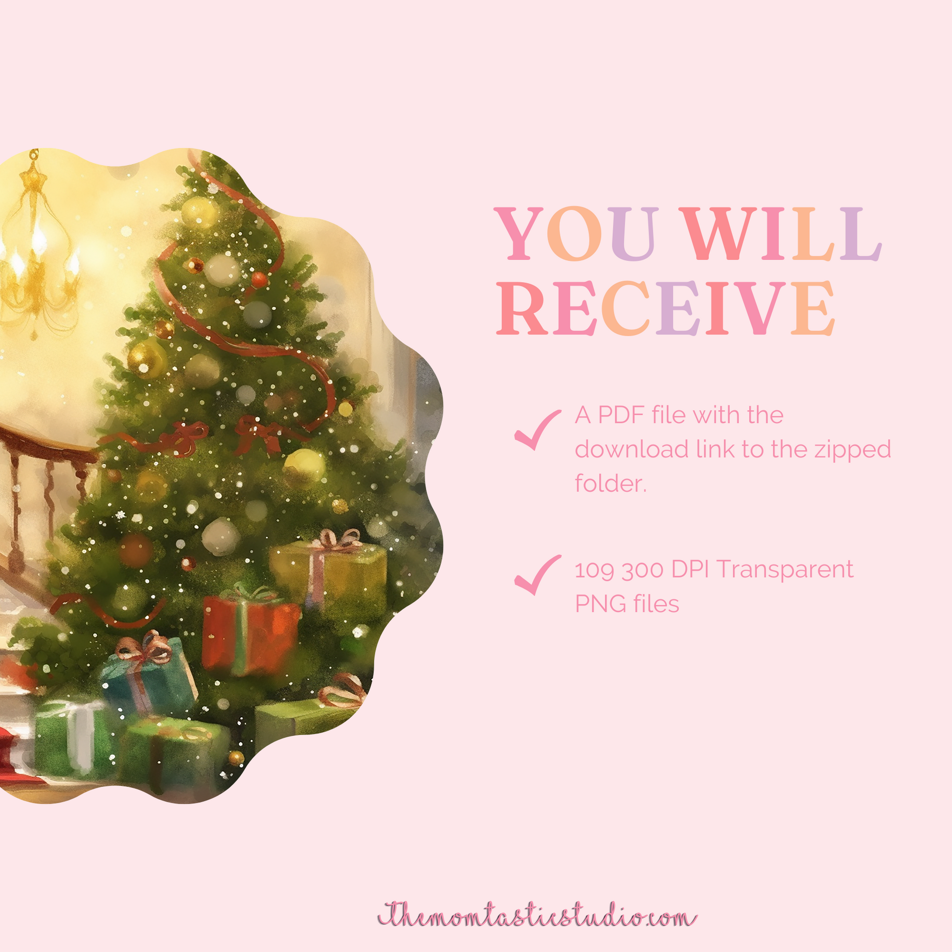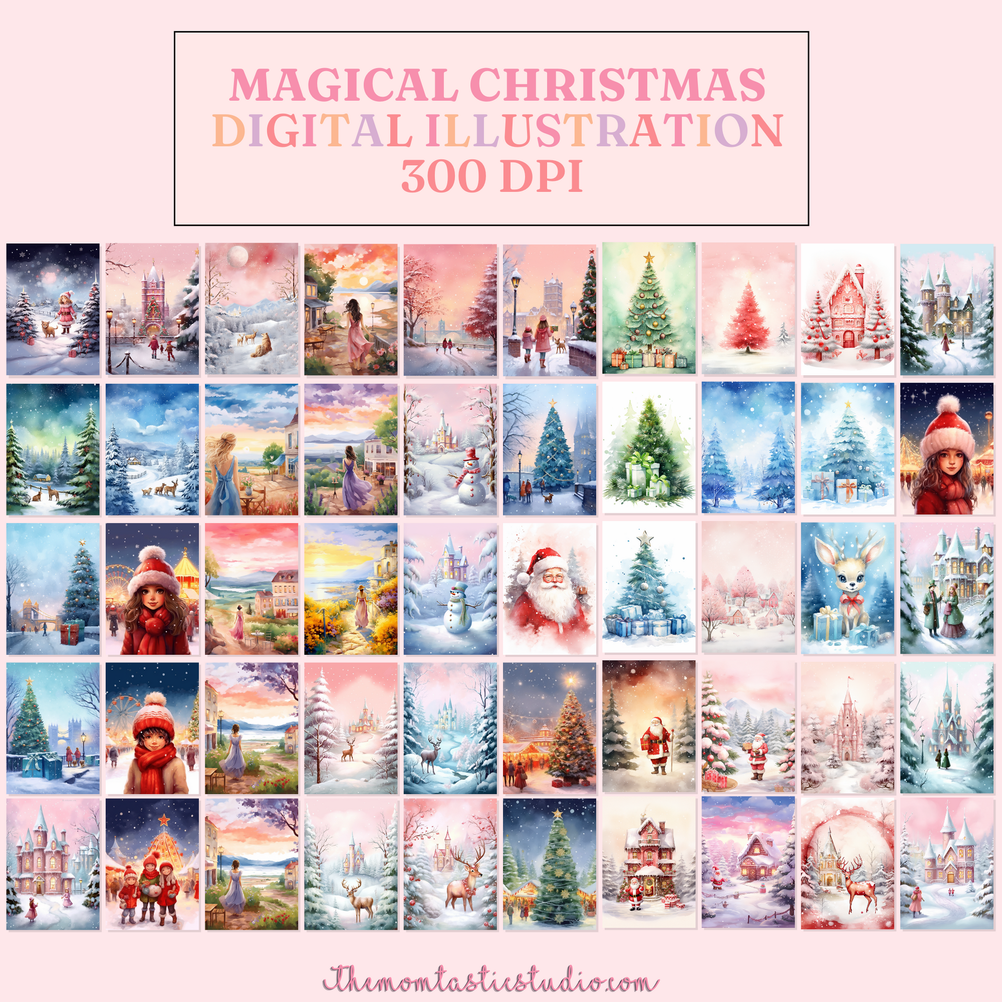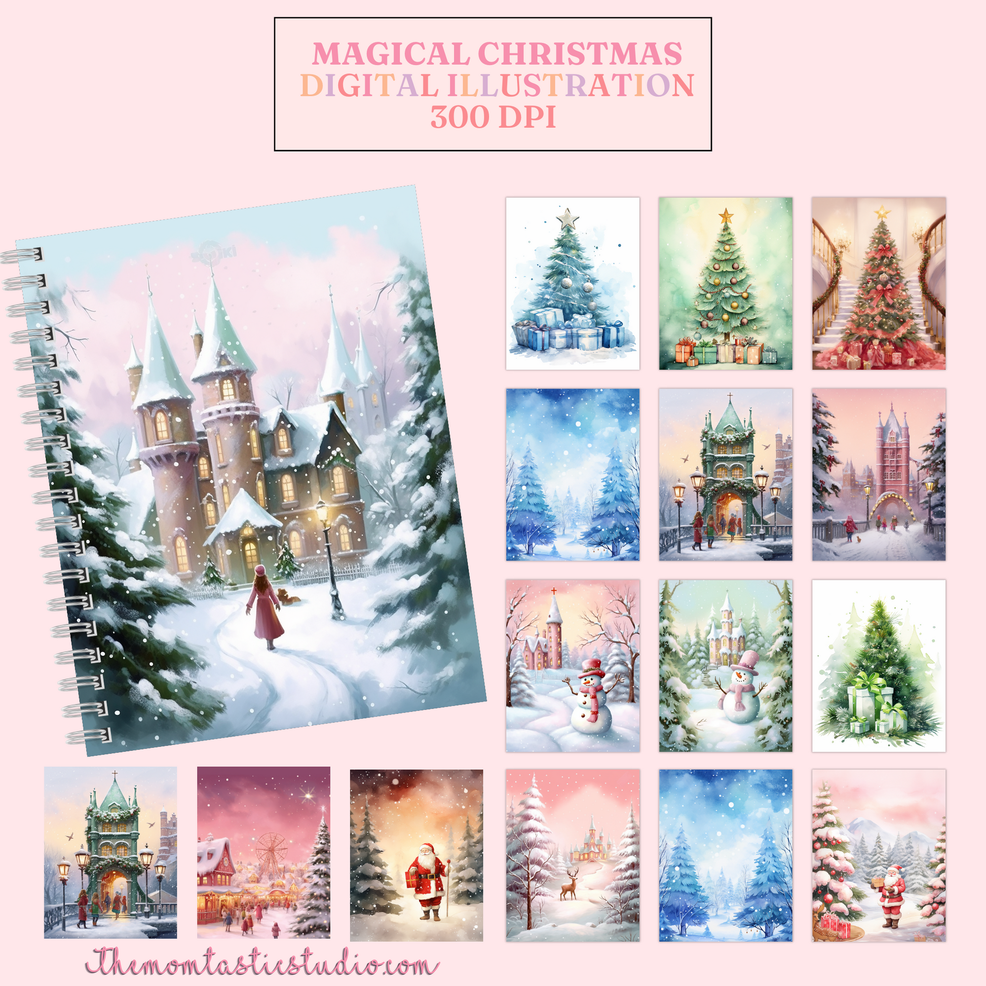 Magical Christmas - Watercolor Digital Illustration - 300 DPI - Commercial Use - Instant Download