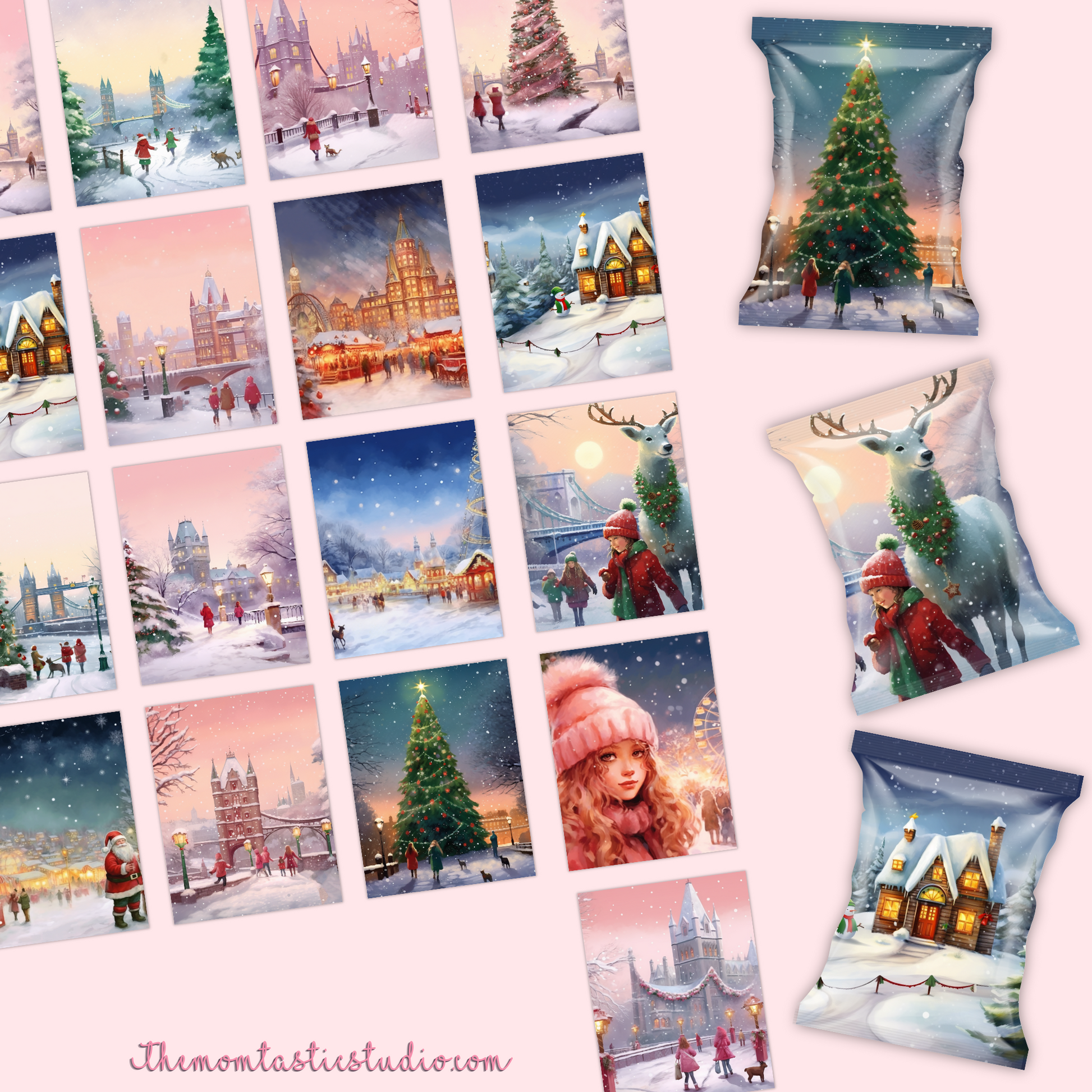 Another beautiful watercolor digital illustration, featuring a winter wonderland filled with sparkling lights and festive decorations. This illustration captures the magic and joy of the holiday season, making it perfect for greeting cards, gift tags, chip bags, gift wrappers, or even as a backdrop for your social media posts.