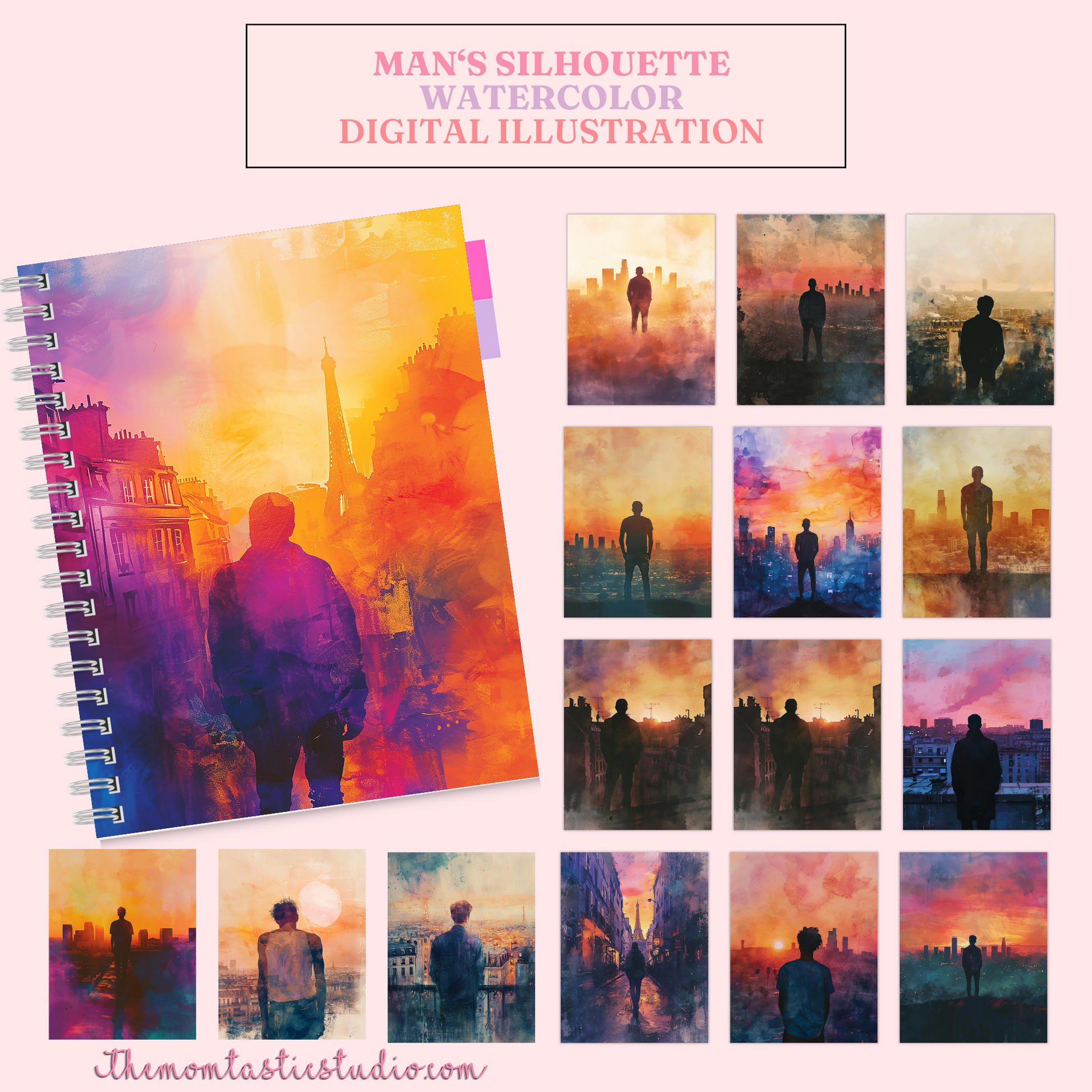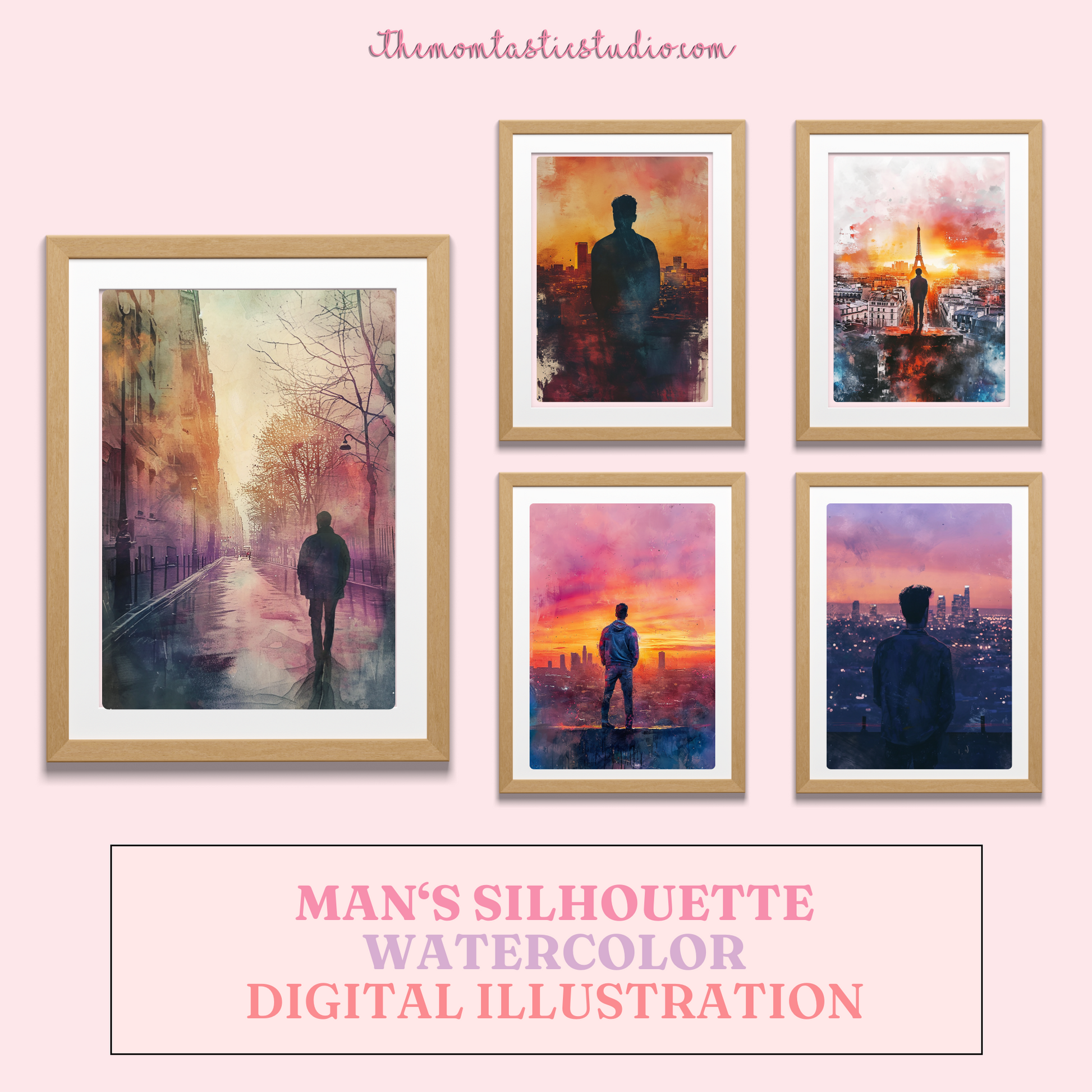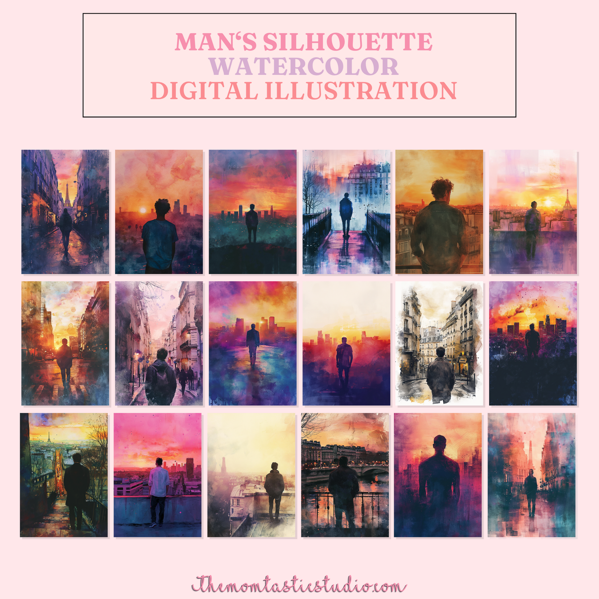 Man Silhouette - Watercolor Digital Illustration 300DPI – Instant Download – Commercial Use