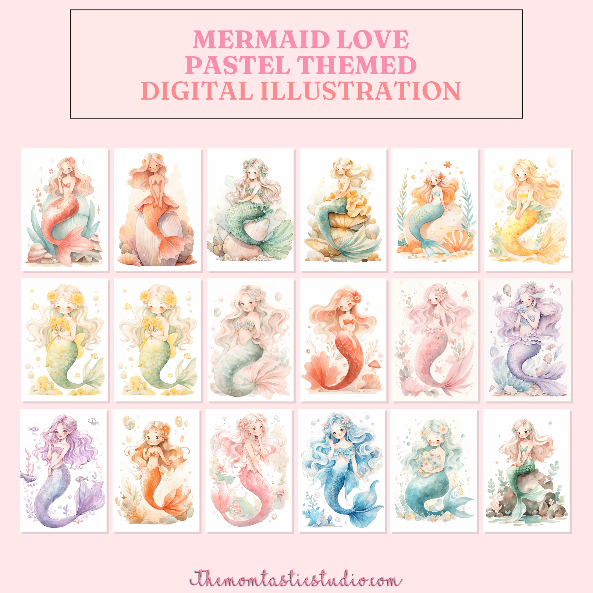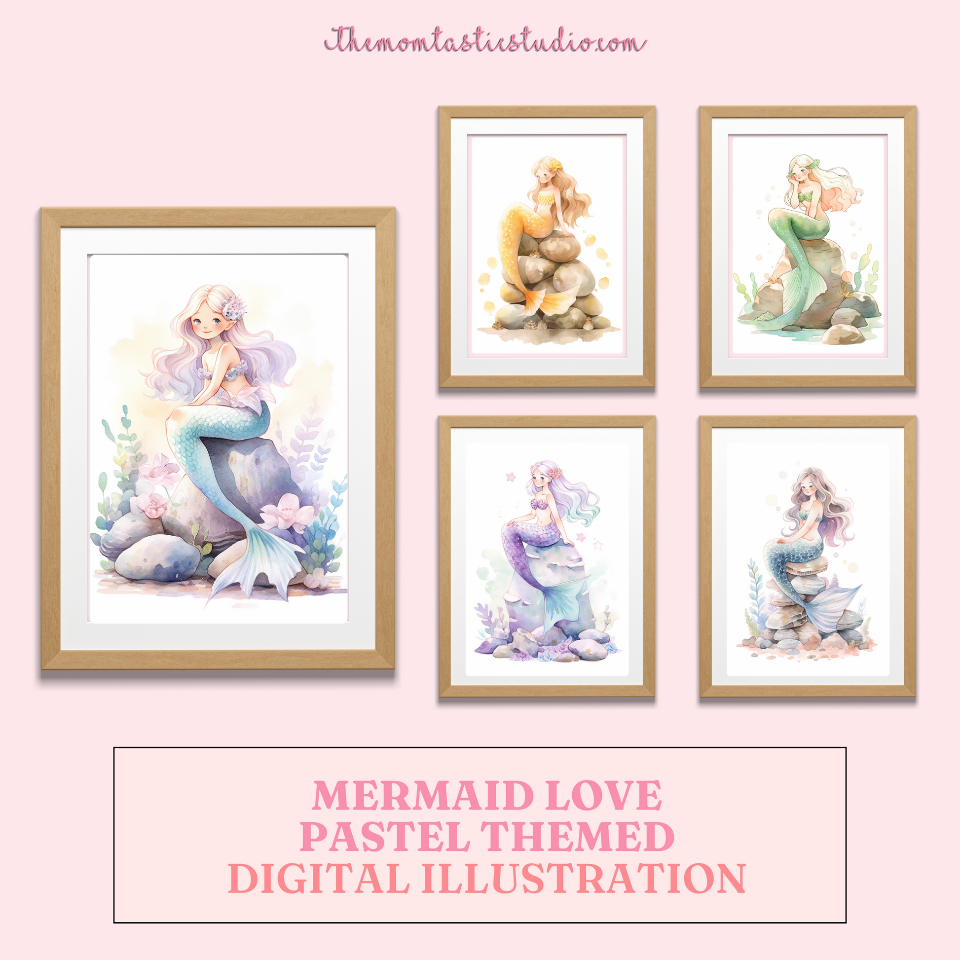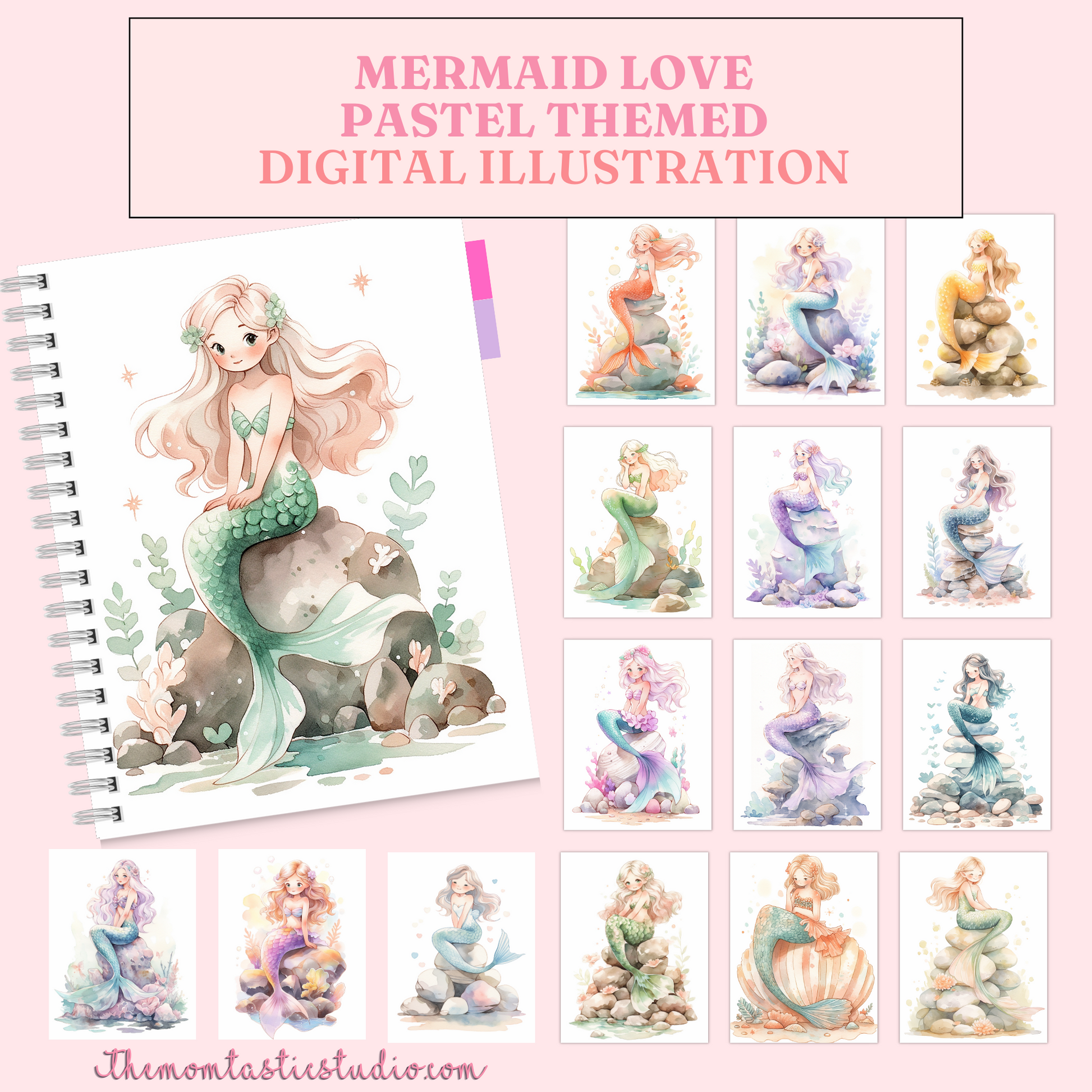 Mermaid Love Digital Illustration 300DPI – Instant Download – Commercial Use