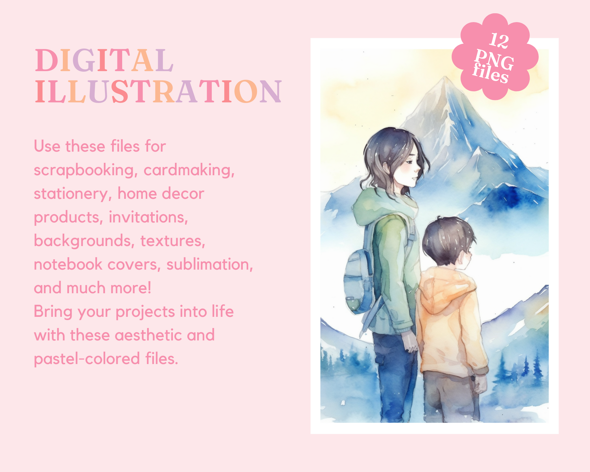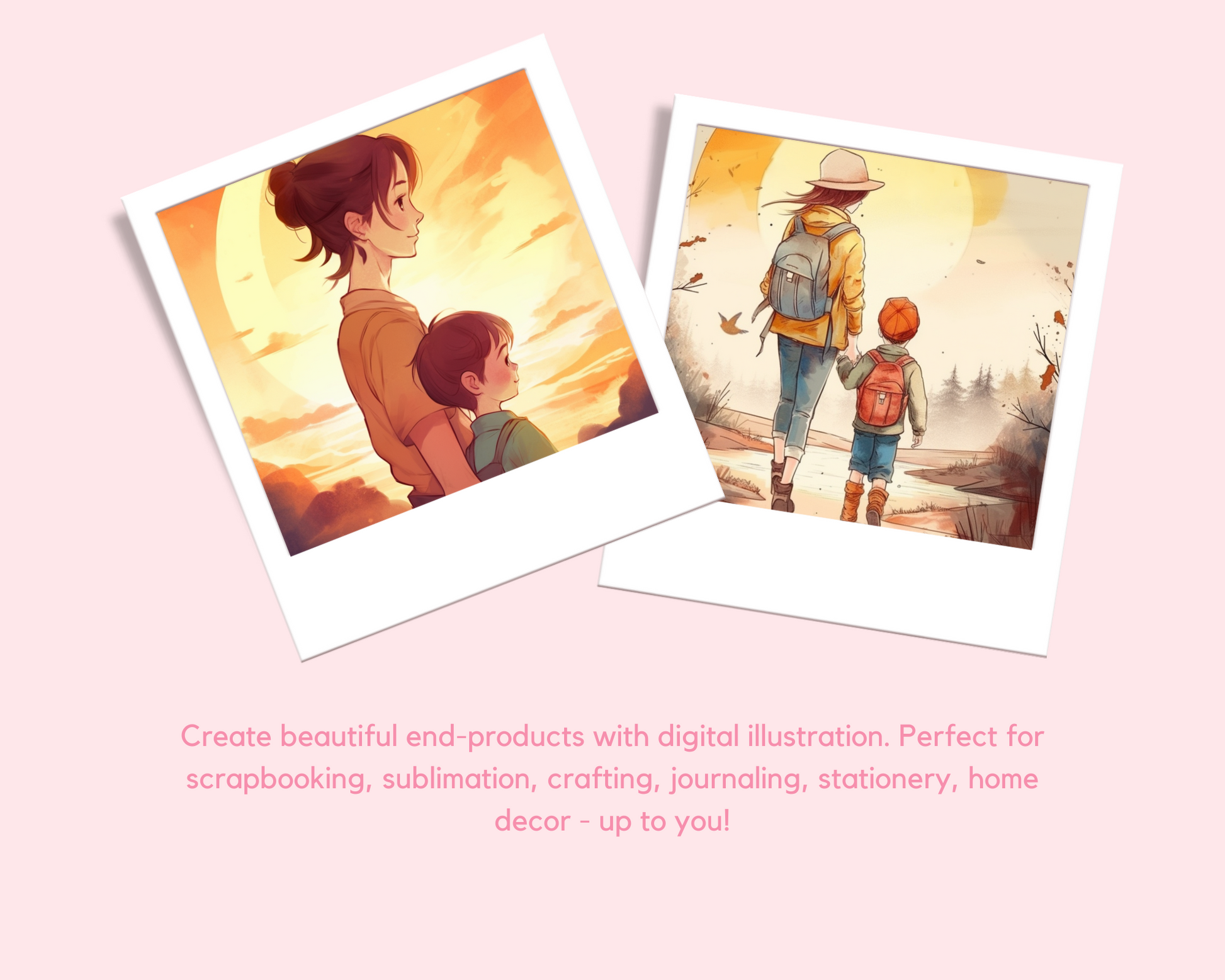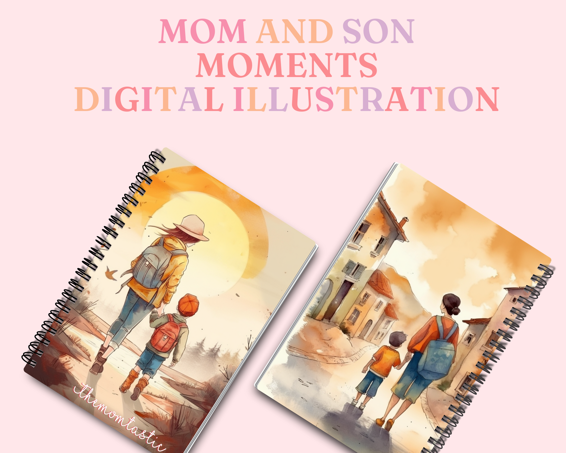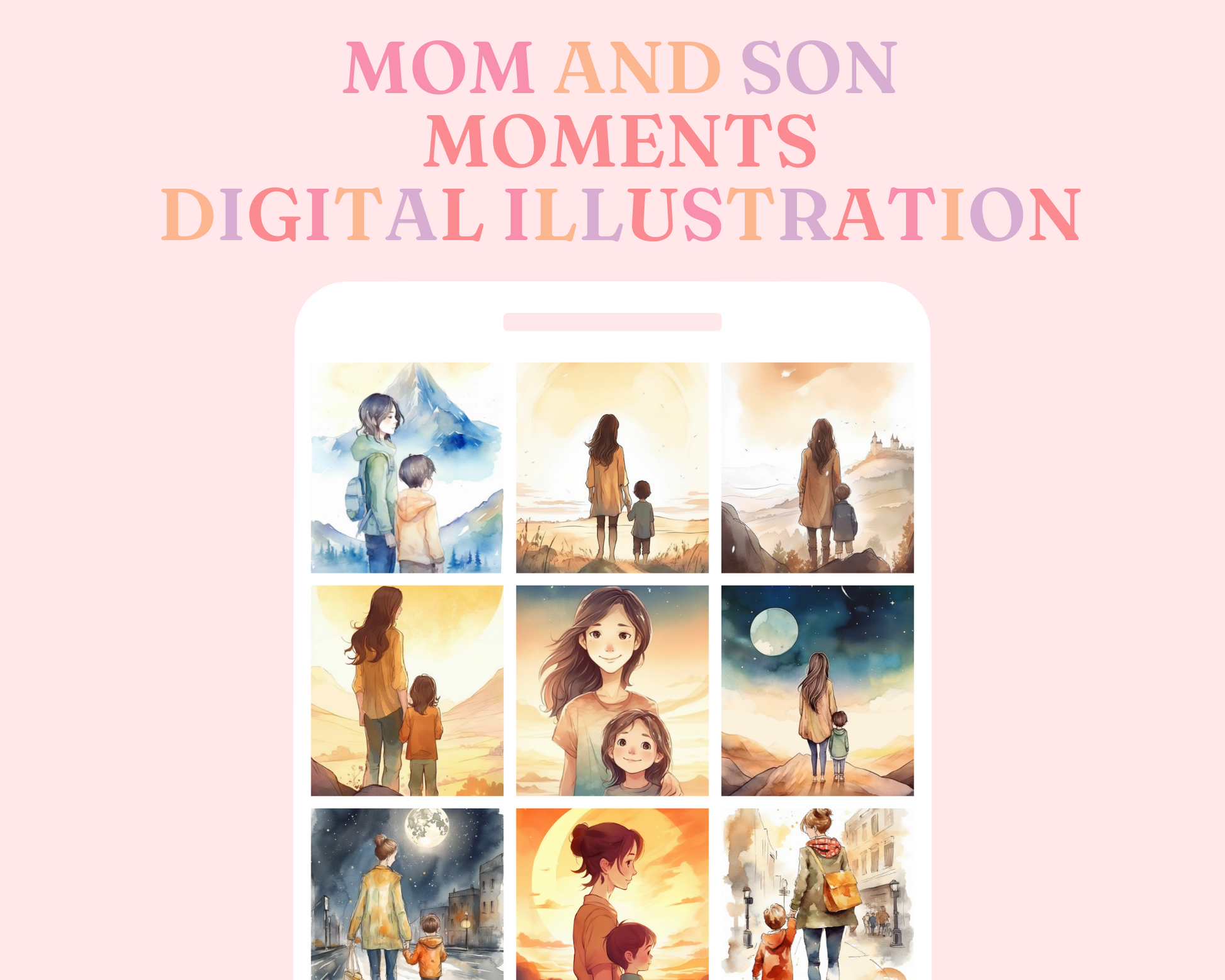 Mom and Son Moments - Digital Illustration - Commercial Use - Watercolor Wall Art