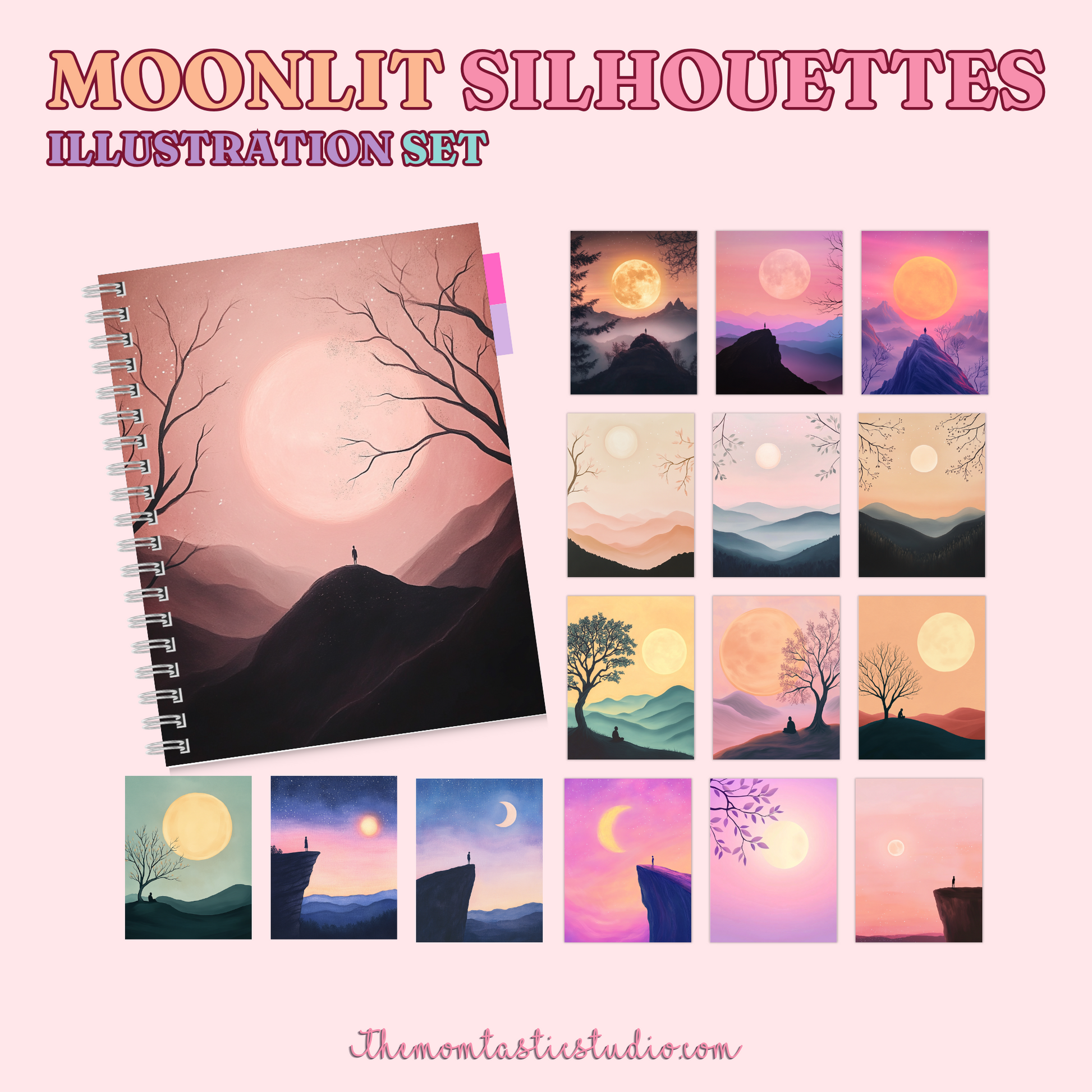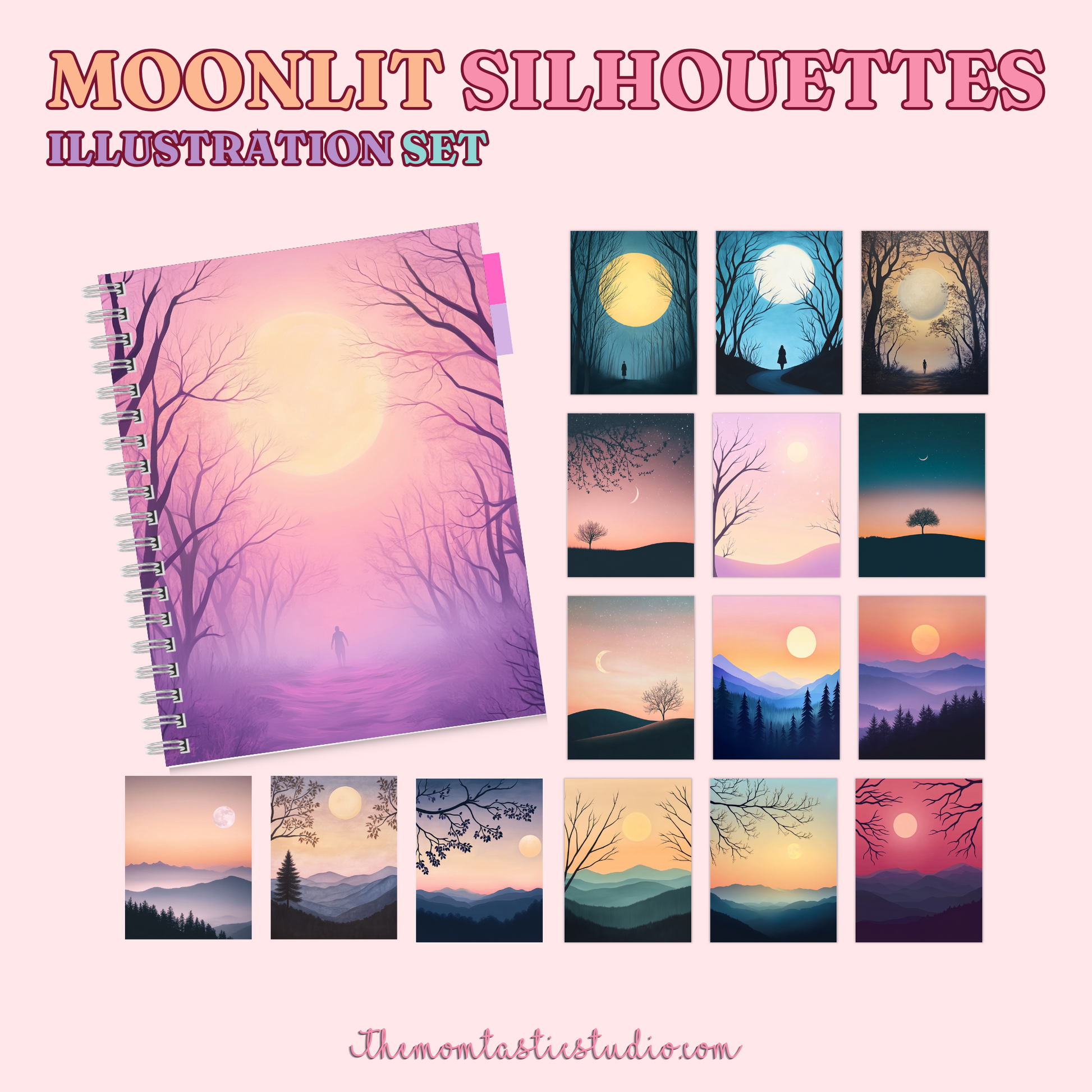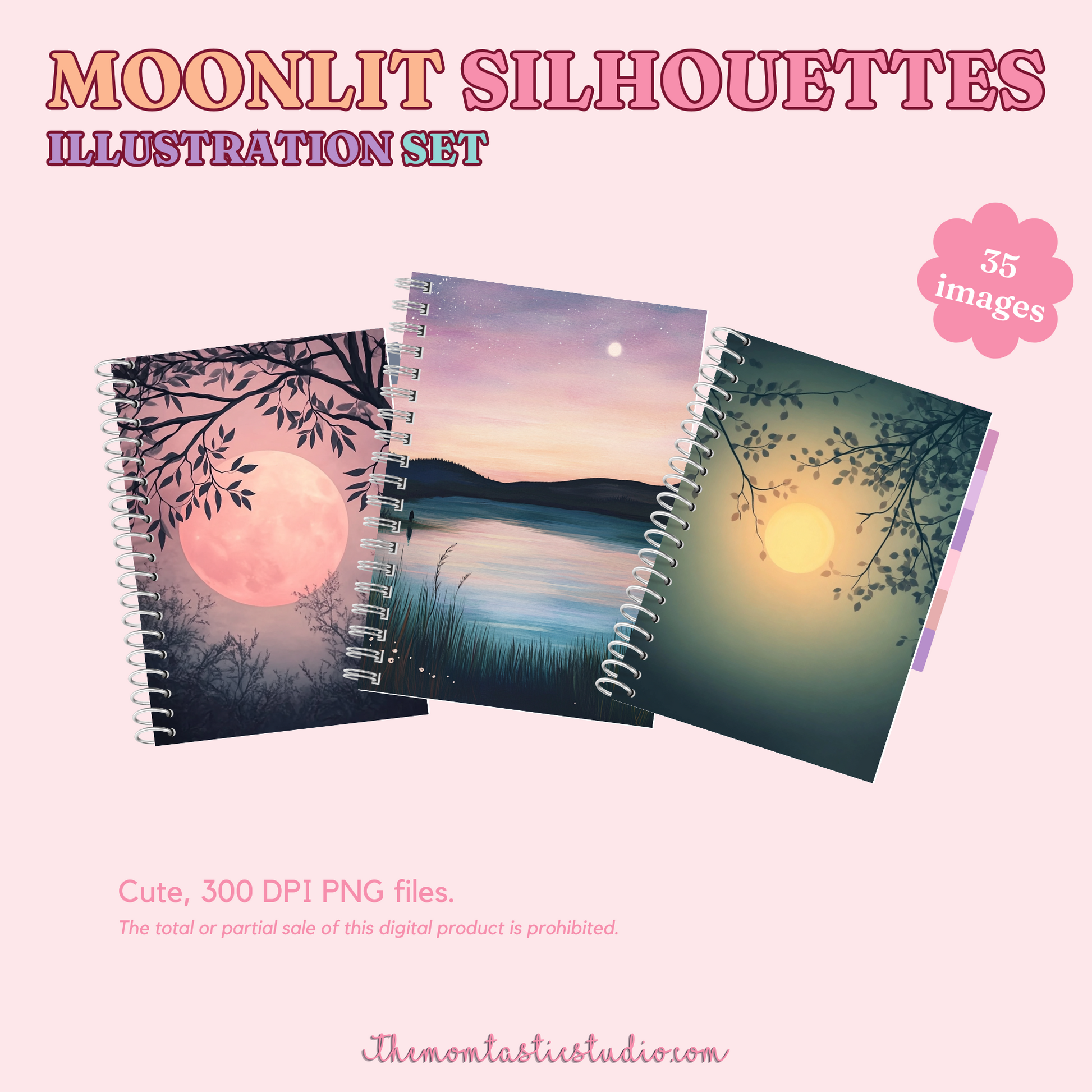 Moonlit Silhouettes Illustration Set - 300 DPI – Instant Download – Commercial Use