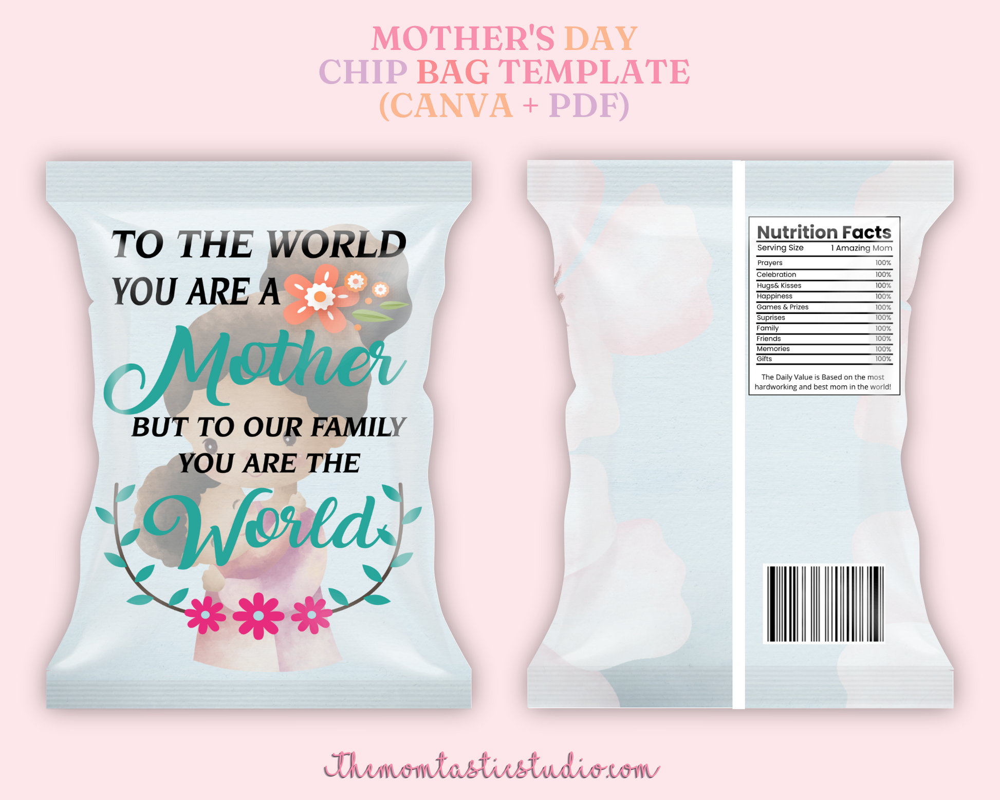 With our digital templates in PDF, PNG, and Canva formats, you can easily customize your chip bags to suit your preferences and create a truly personal gift. Adjust fonts, colors, and images, or add your own heartfelt message to make your Mother's Day celebration even more special.