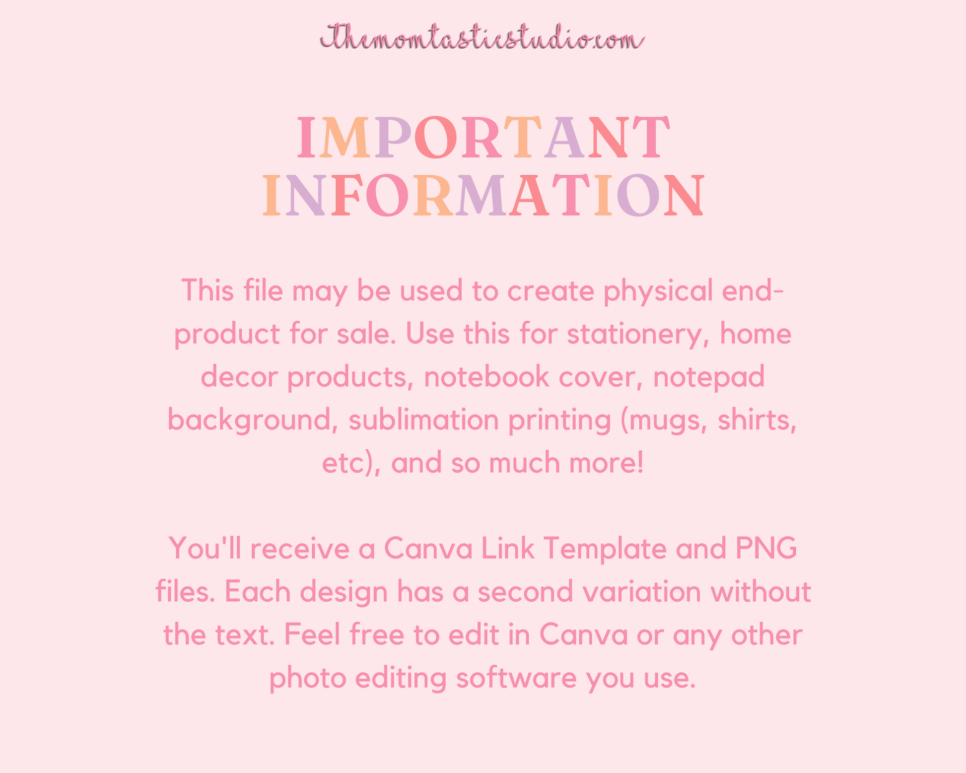 This file may be used to create physical end-product for sale. Use this for stationery, home decor products, notebook cover, notepad background, sublimation printing (mugs, shirts, etc), and so much more! Art must not be claimed as own or the digital file be shared, resold, or altered in any way.