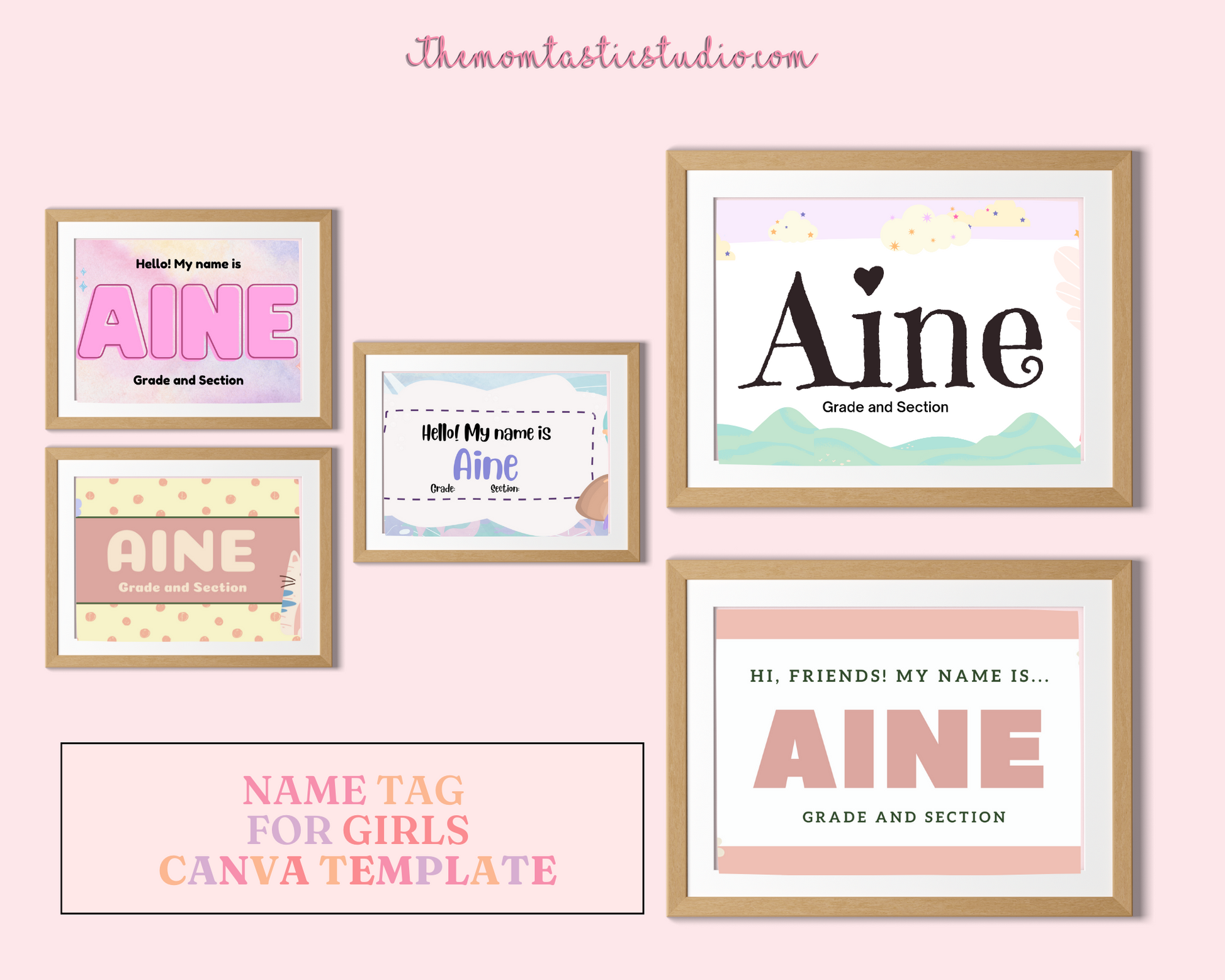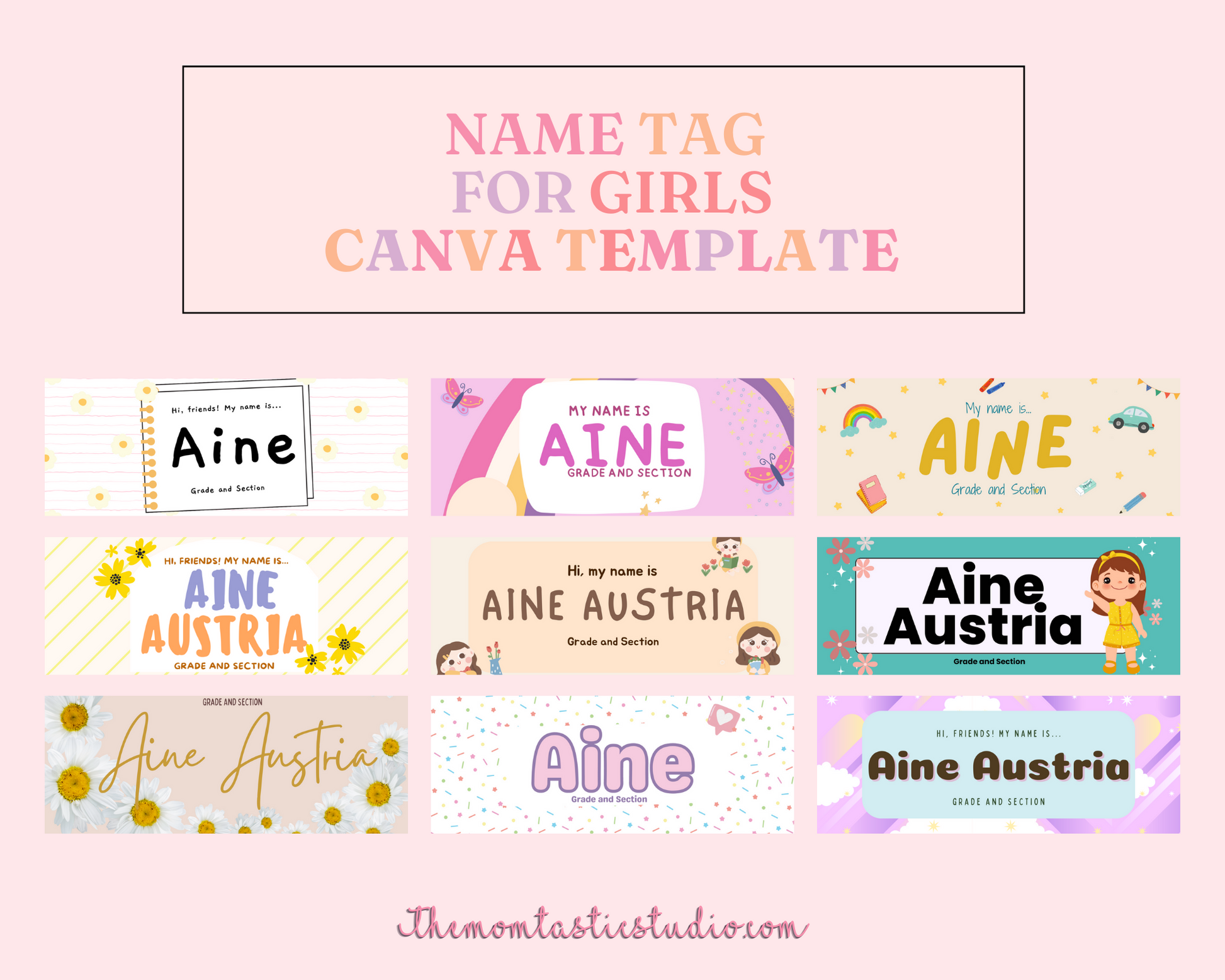 Name Tag for Girls – Instant Download – Canva Editable - Commercial Use