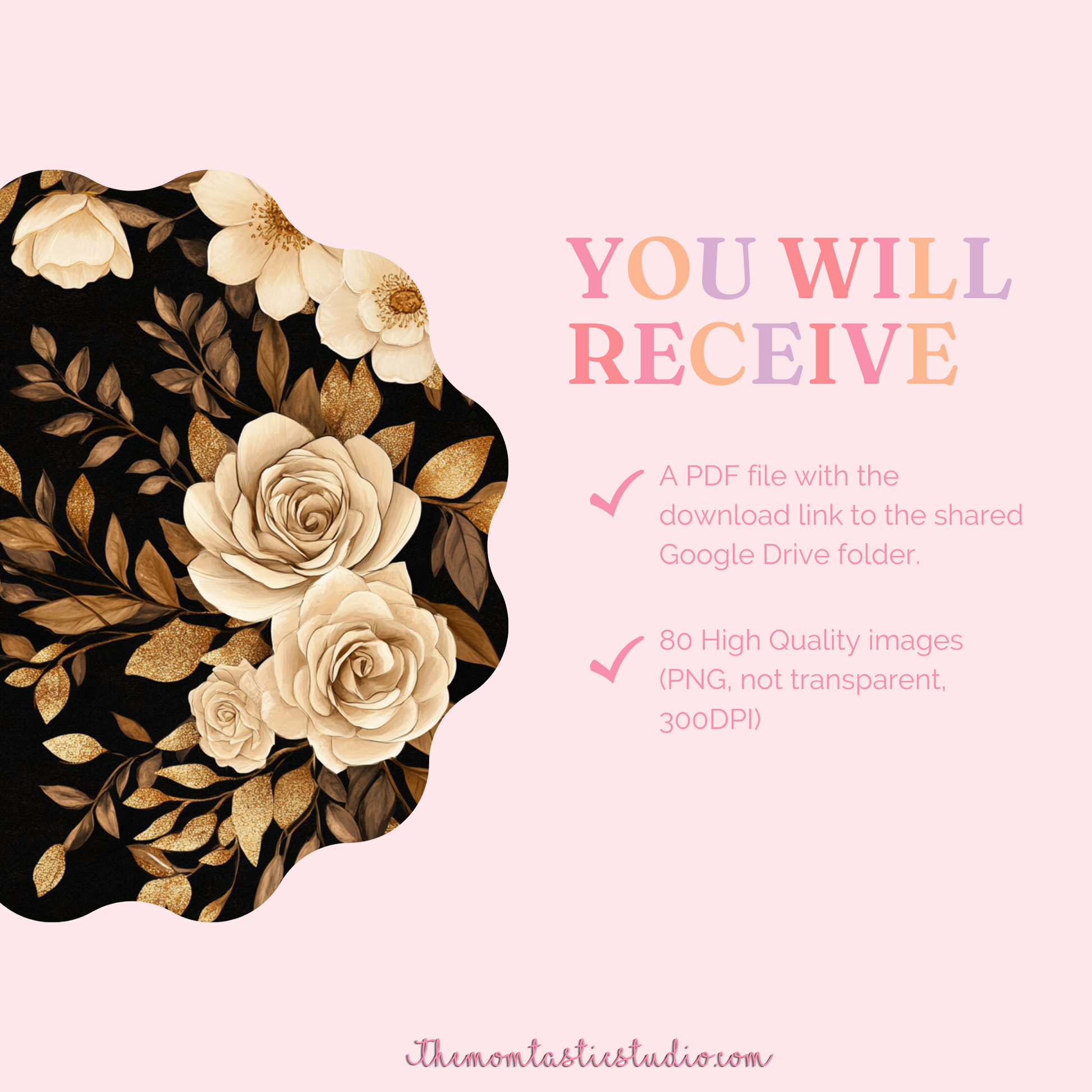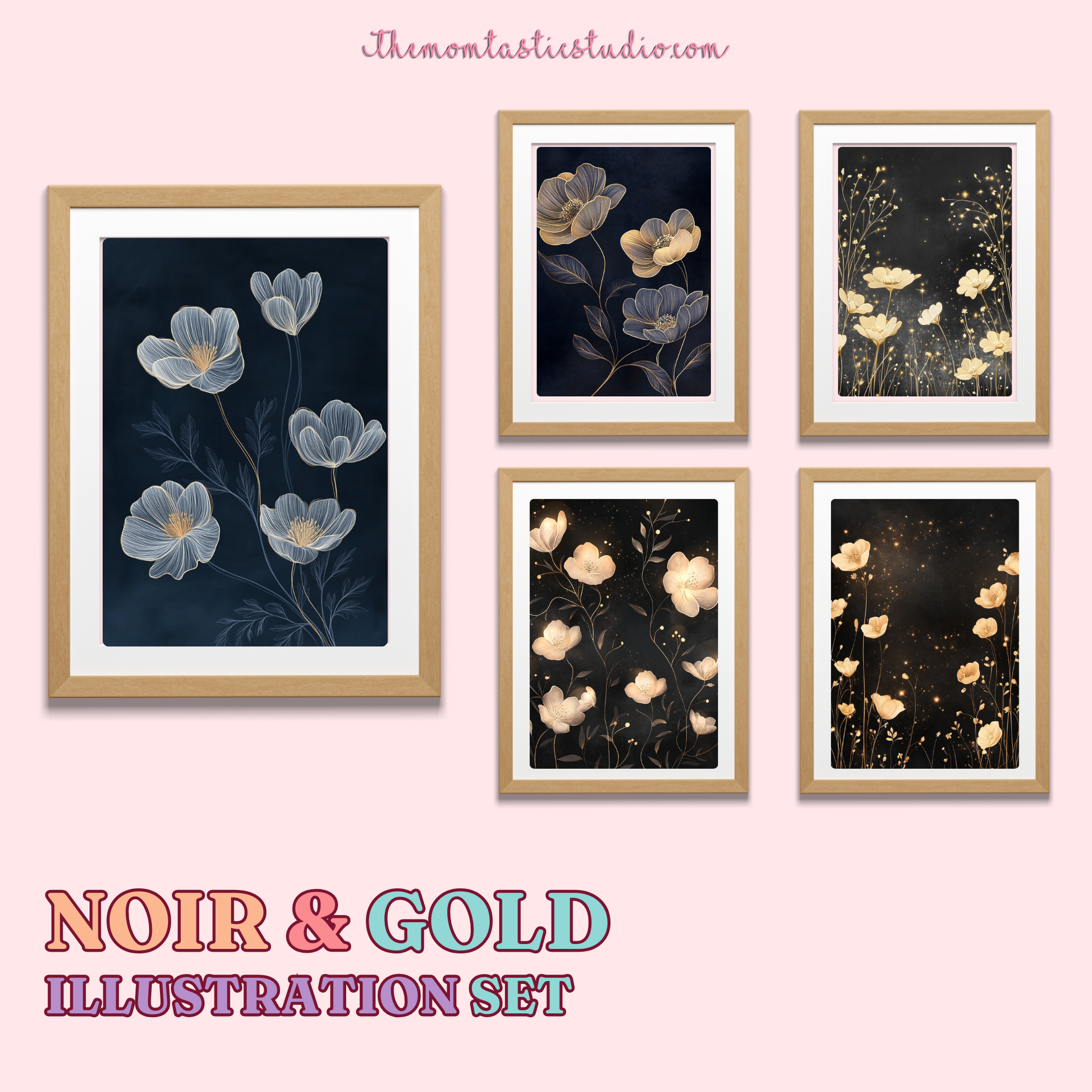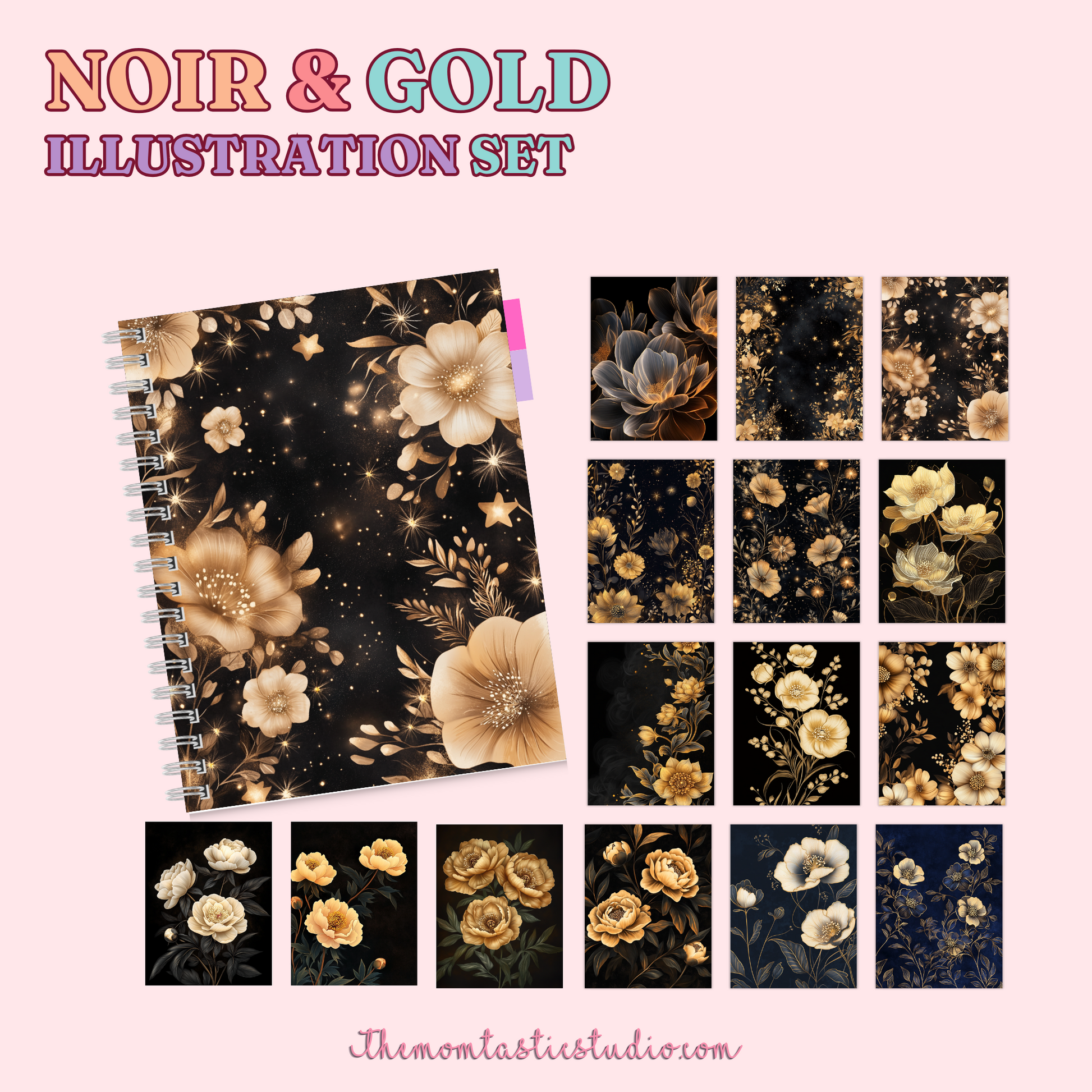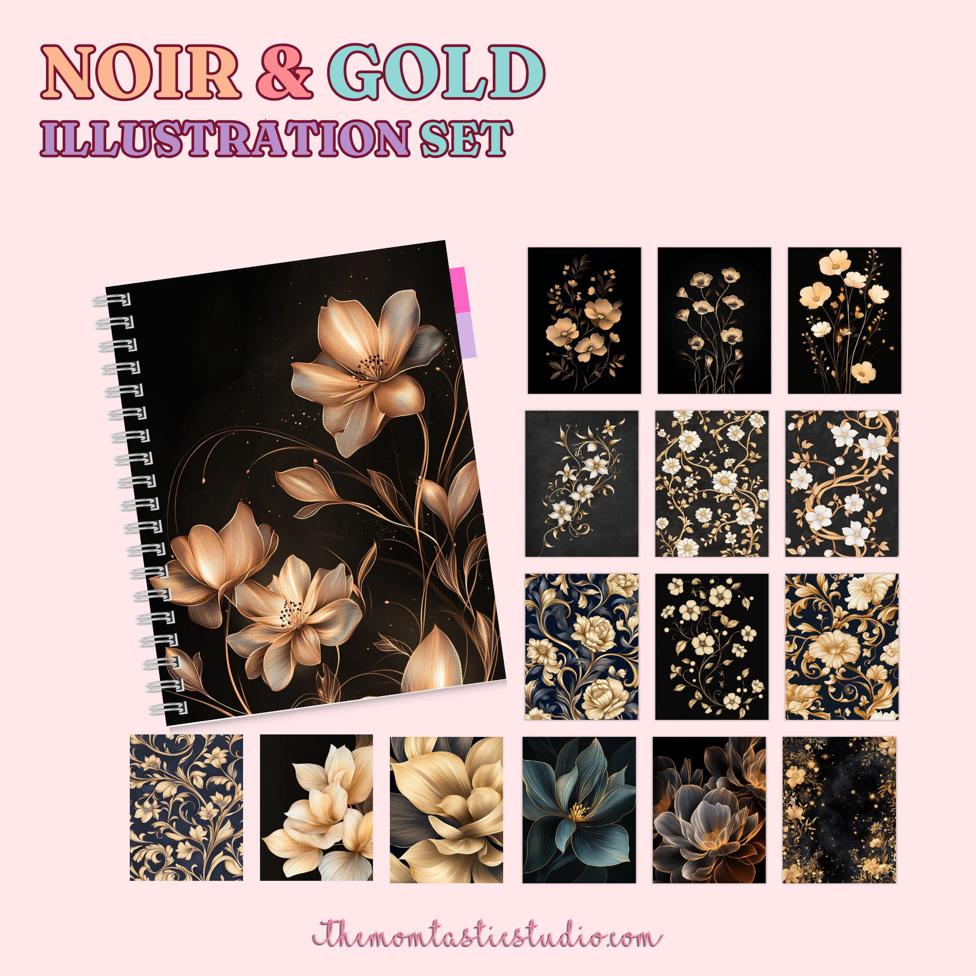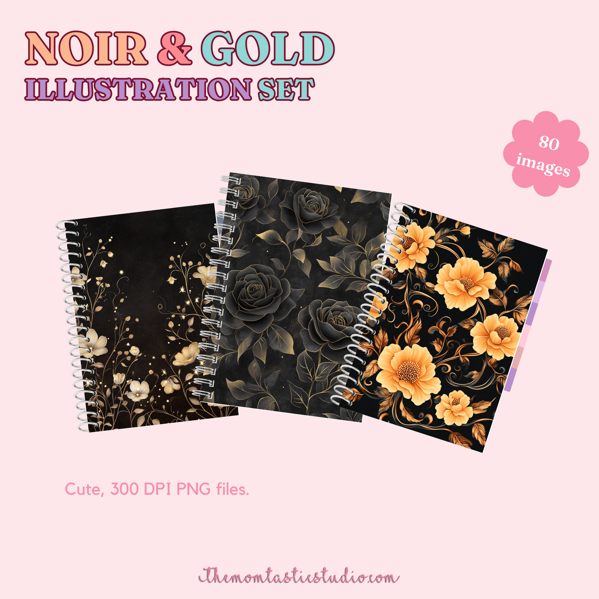 Noir & Gold Illustration Set - 300 DPI – Instant Download – Commercial Use