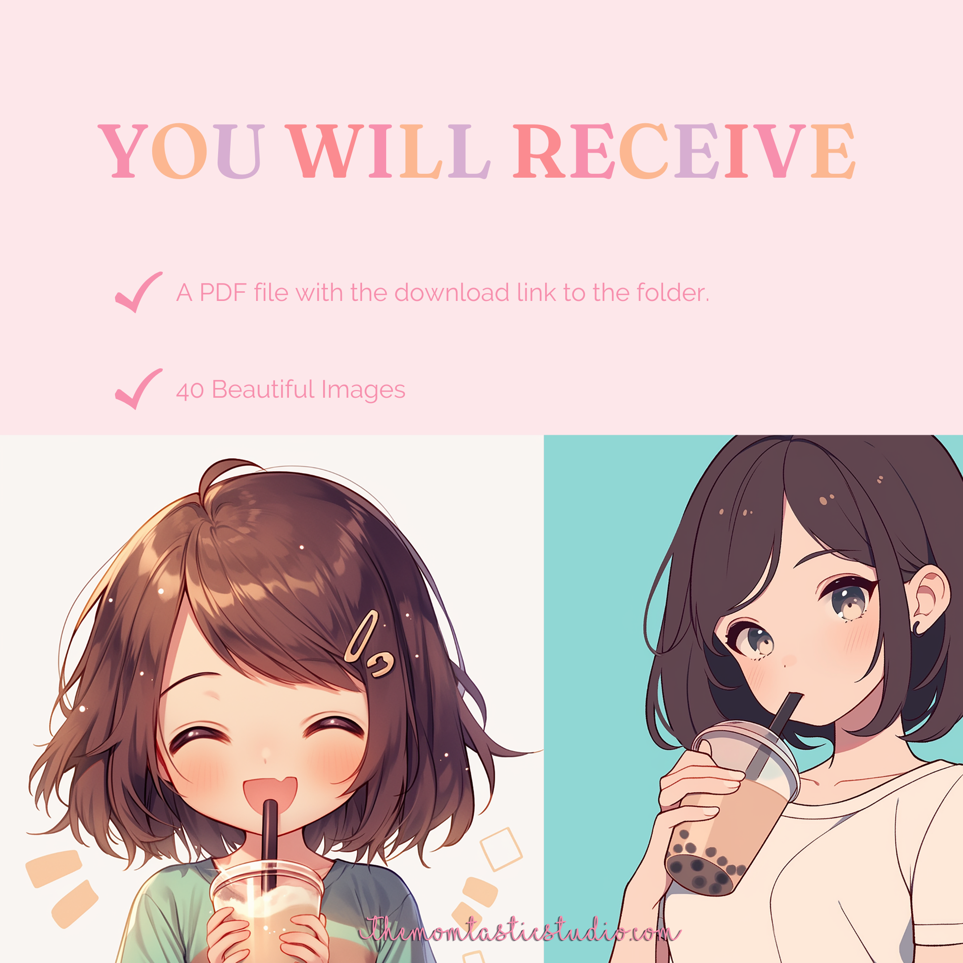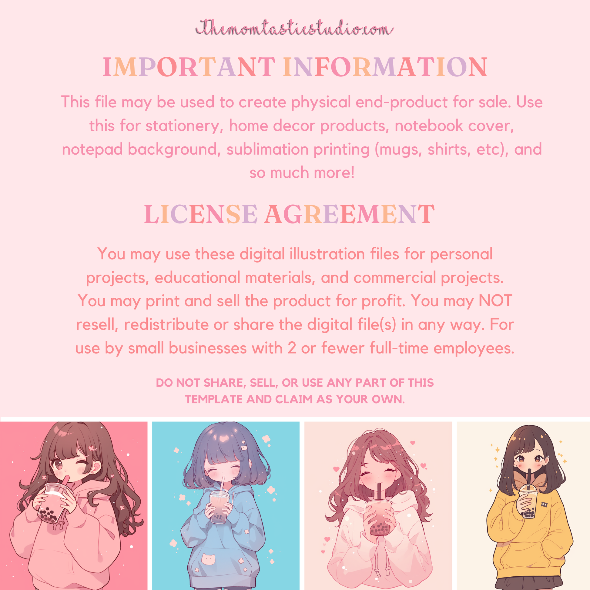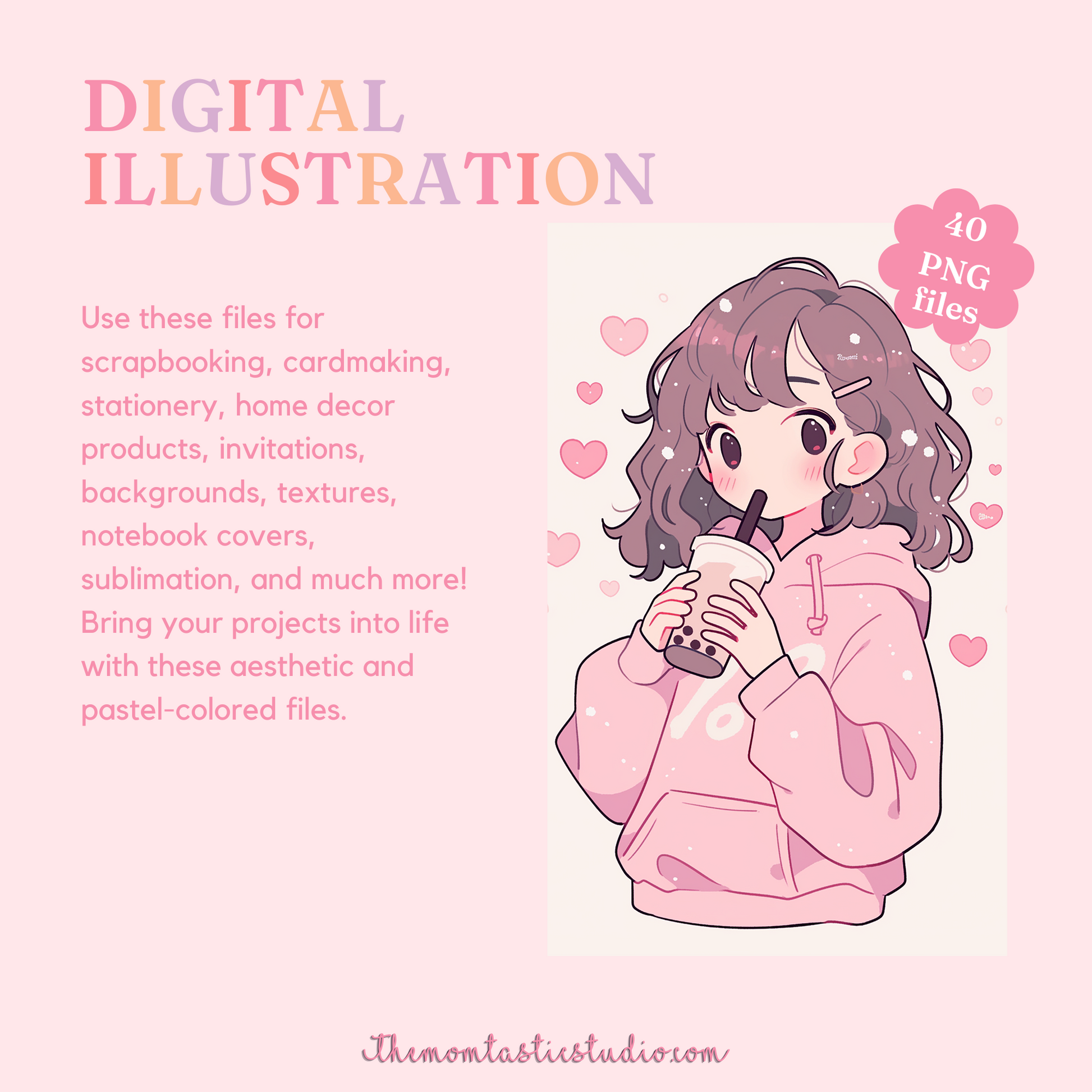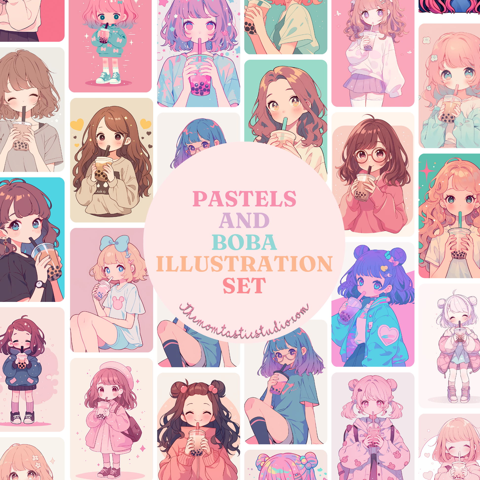 Pastels and Boba Digital Illustration - 300 DPI – Instant Download – Commercial Use