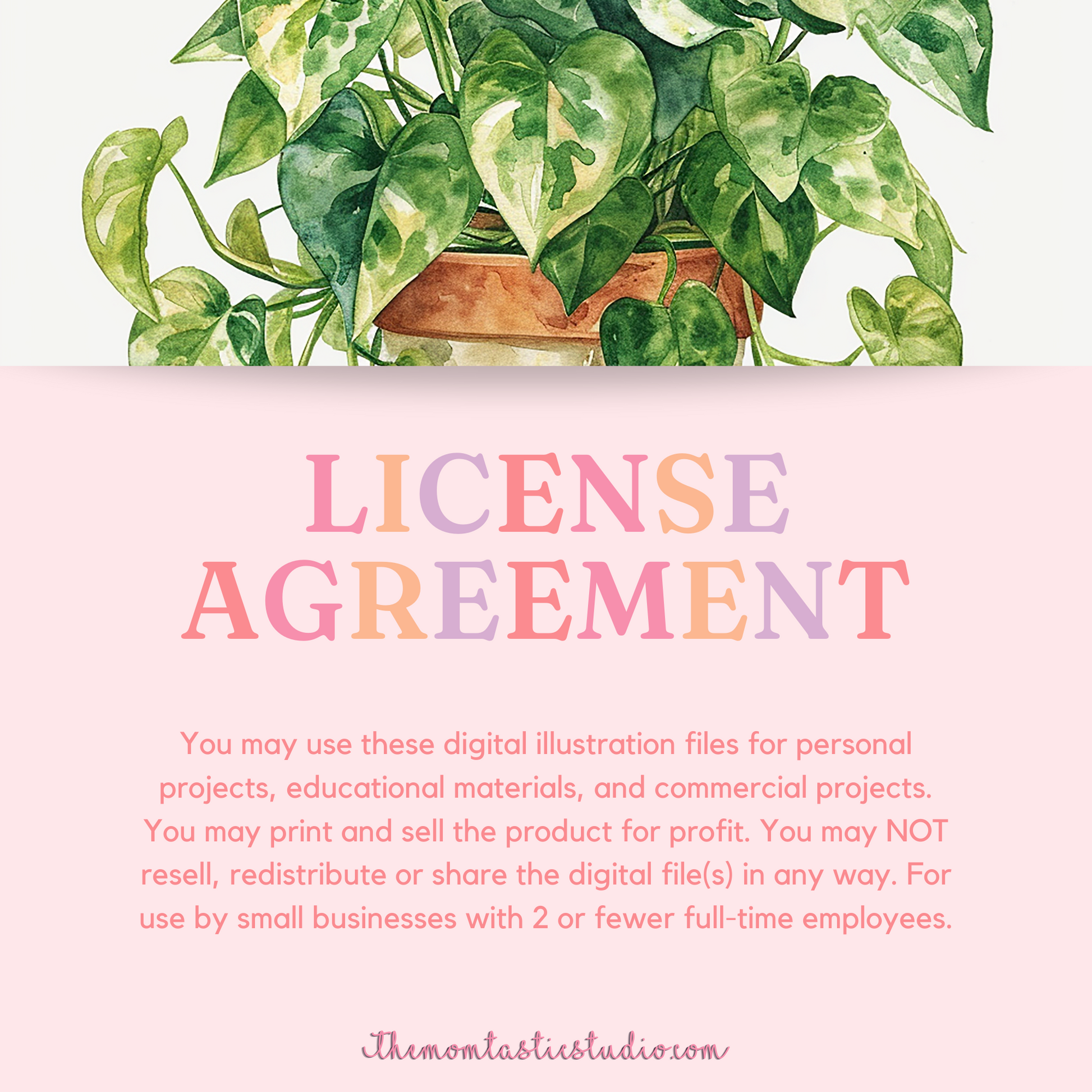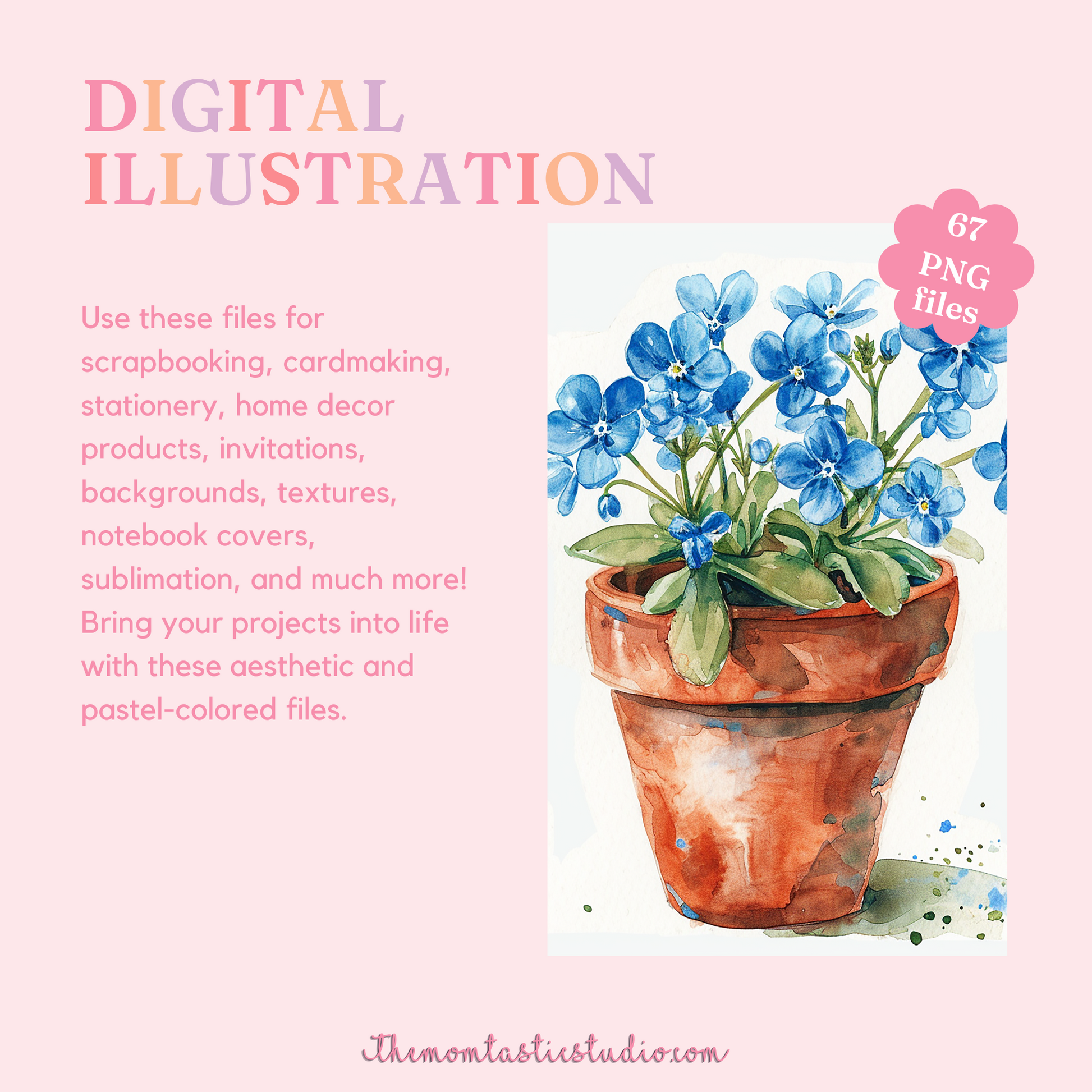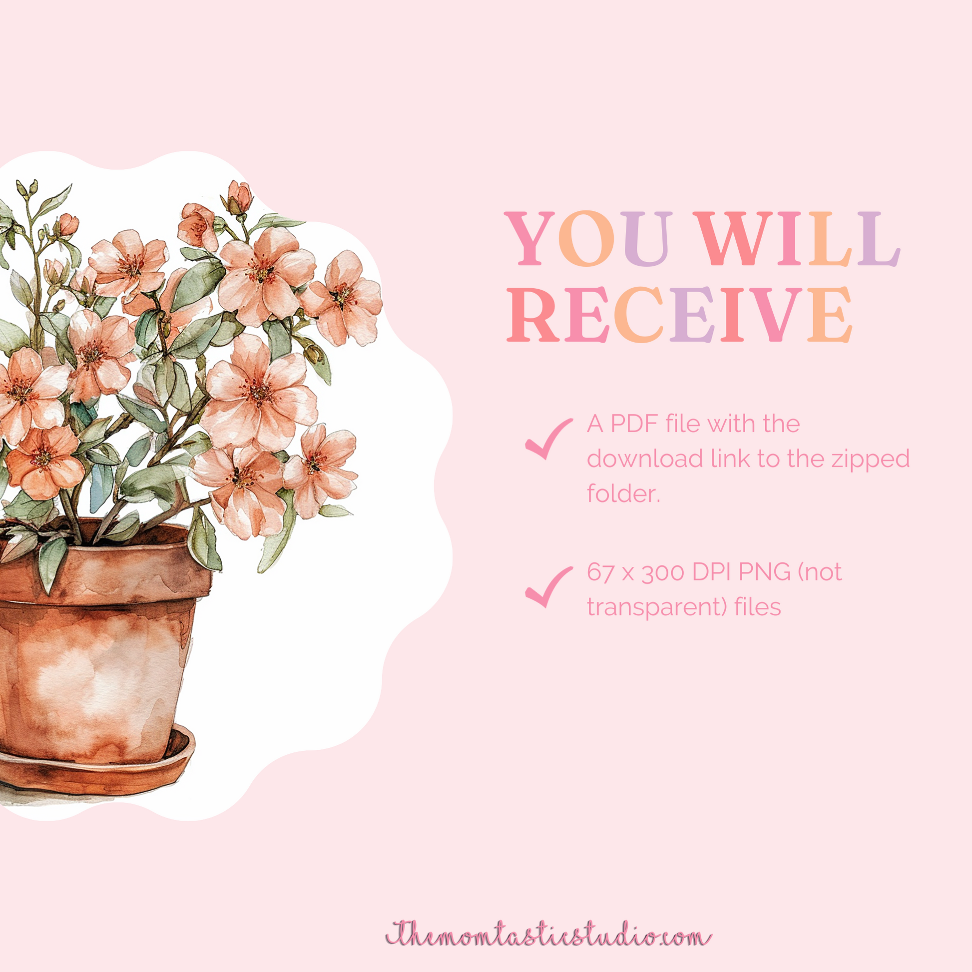 Pots and Plants Watercolor Digital Illustration 300DPI – Instant Download – Commercial Use
